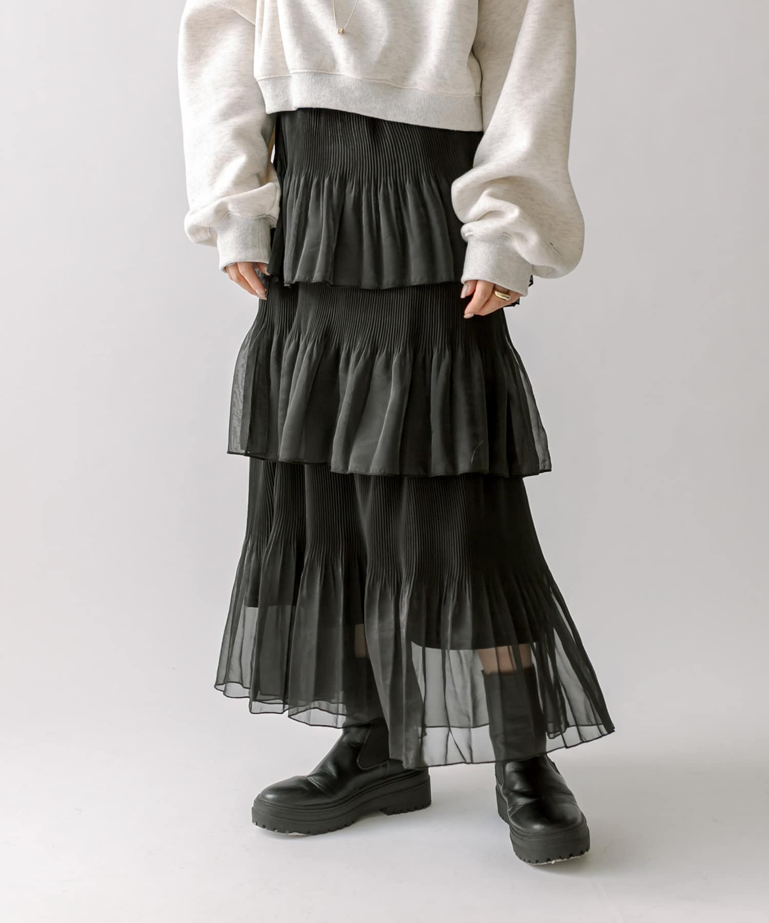 [mline] プリーツティアードスカート