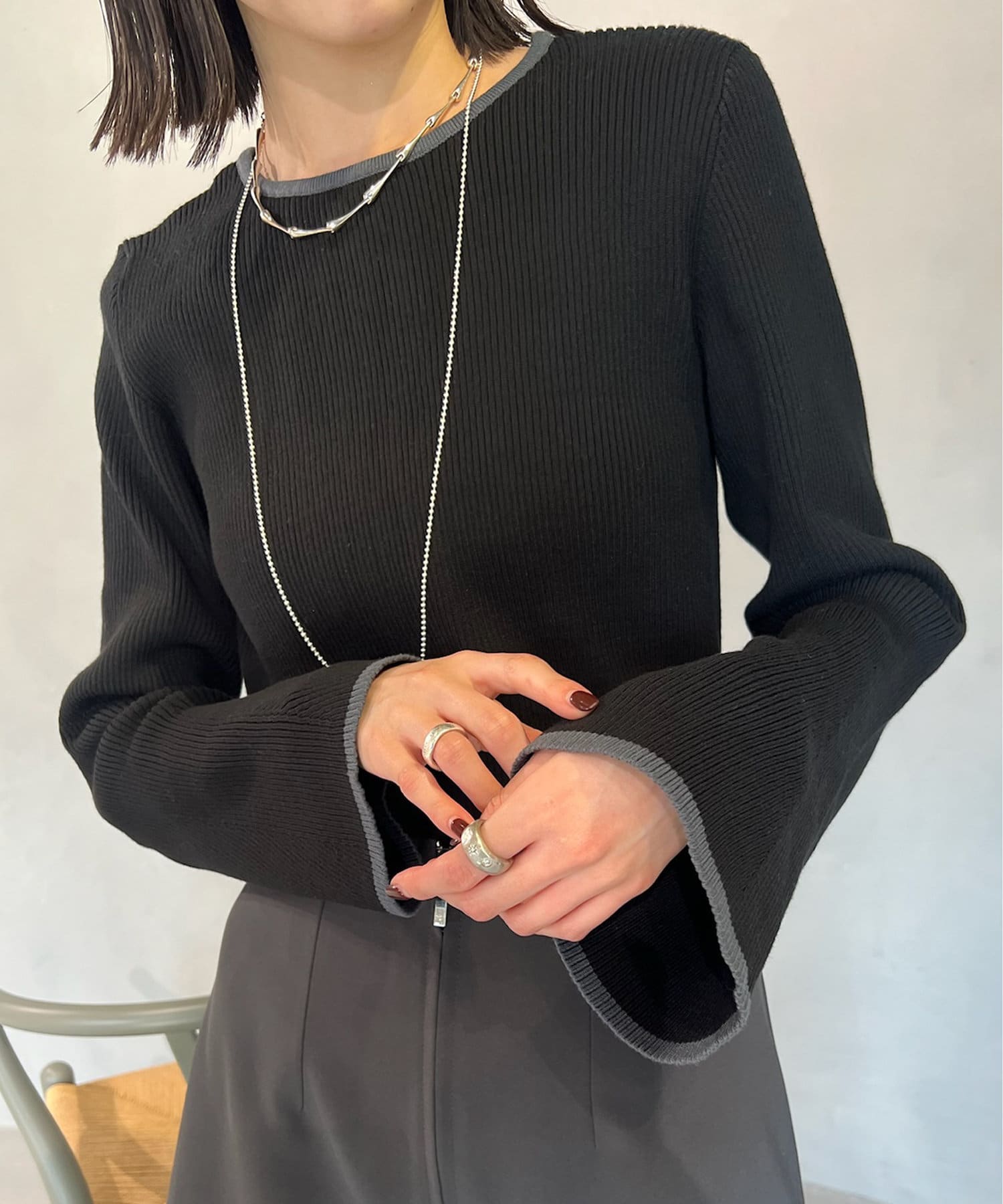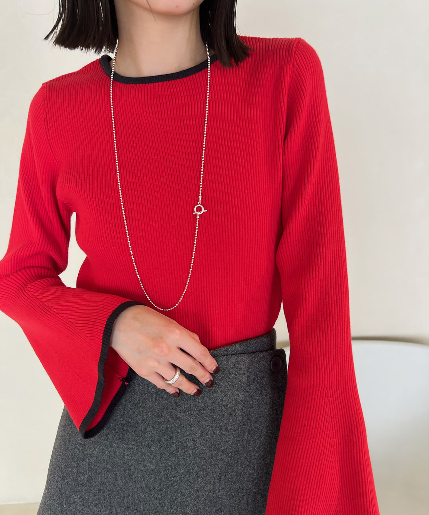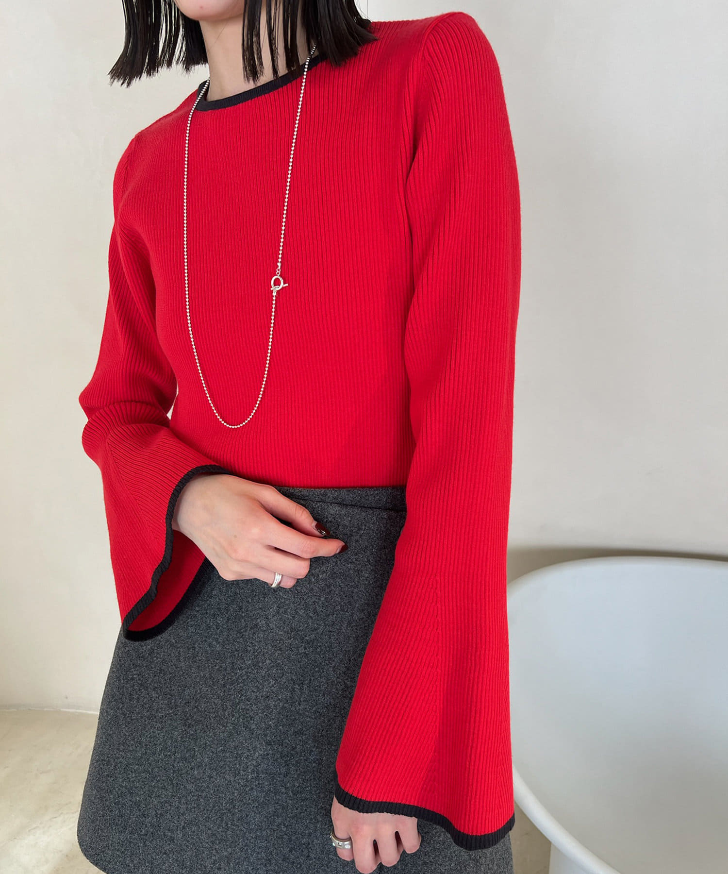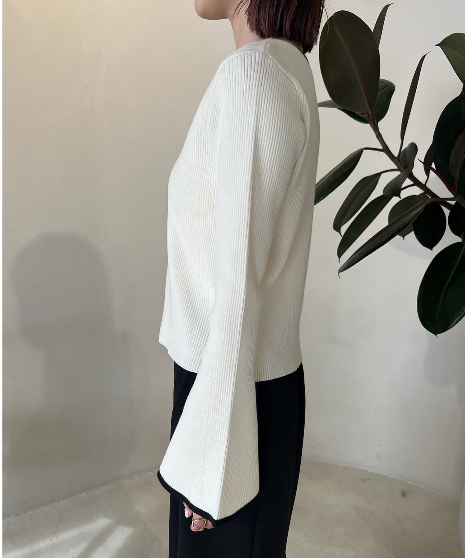 大人気の配色トップスに新しく袖フレアのニットが新登場!