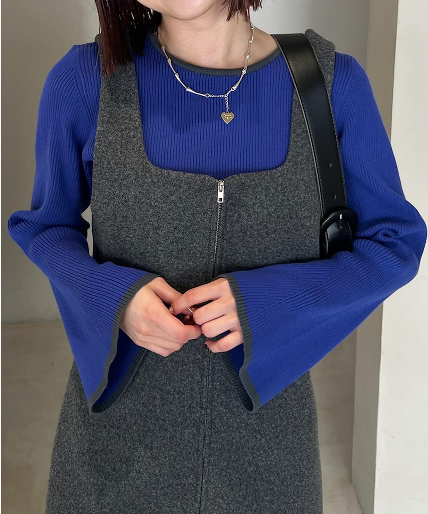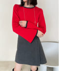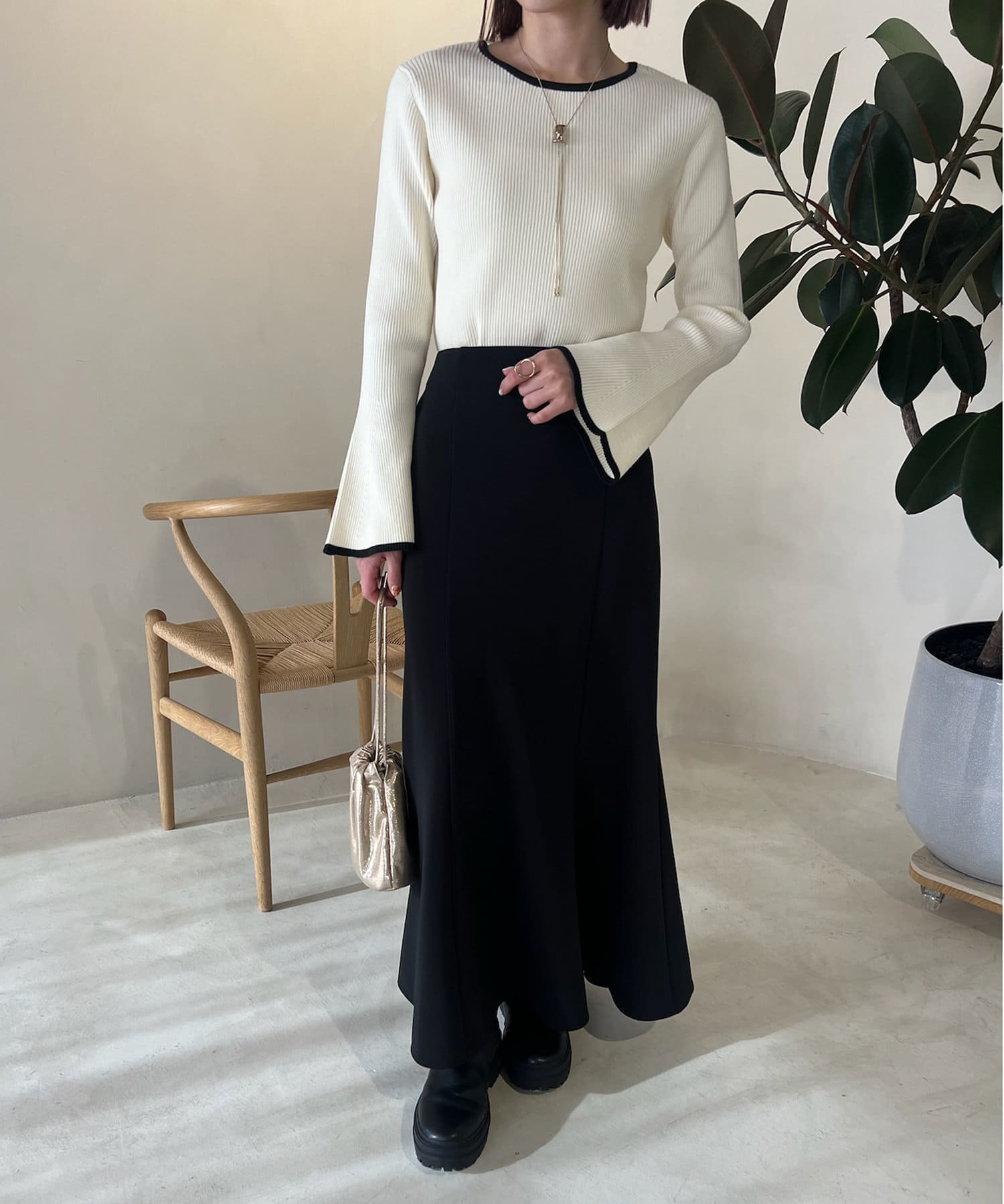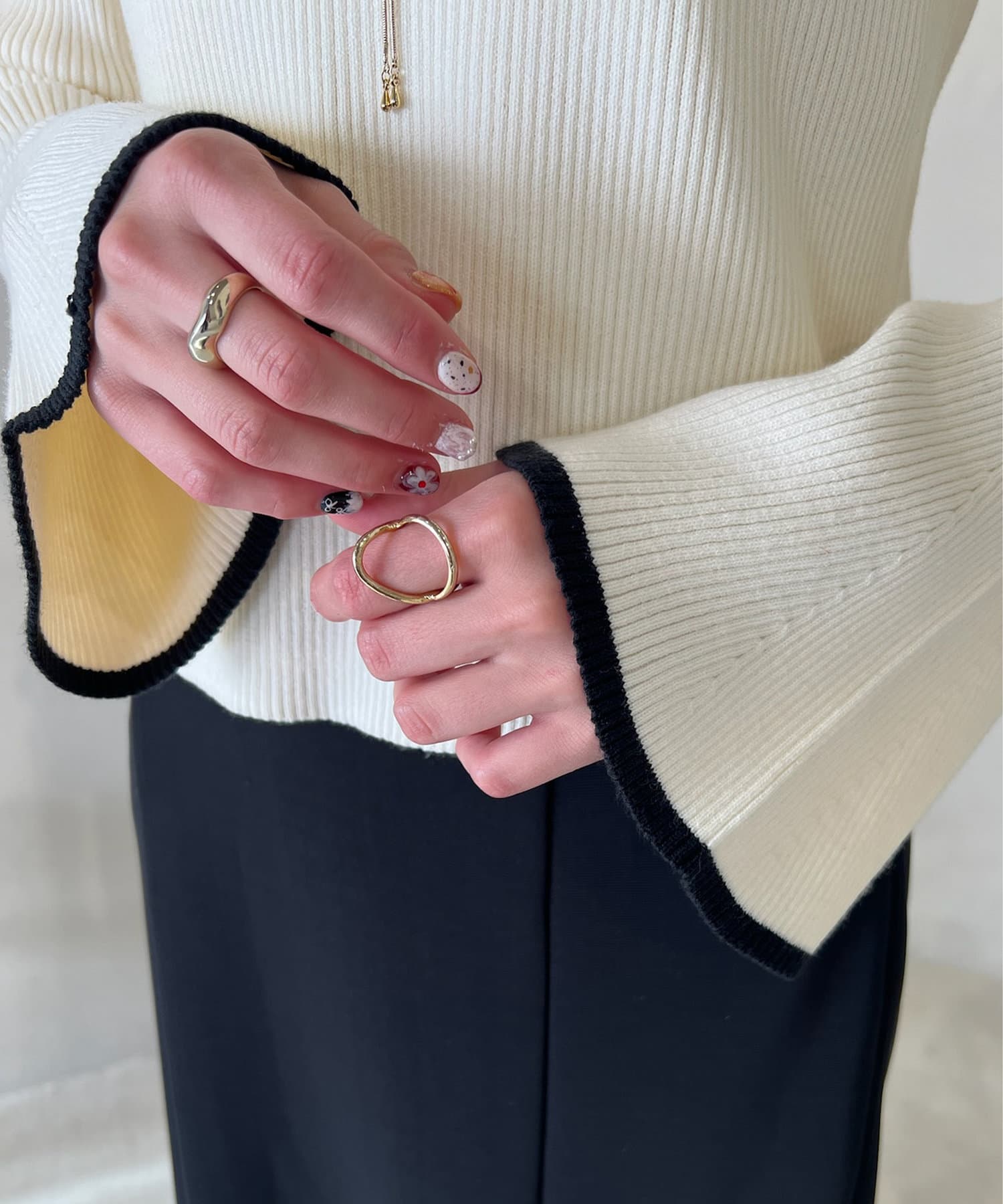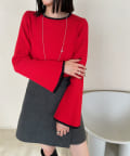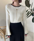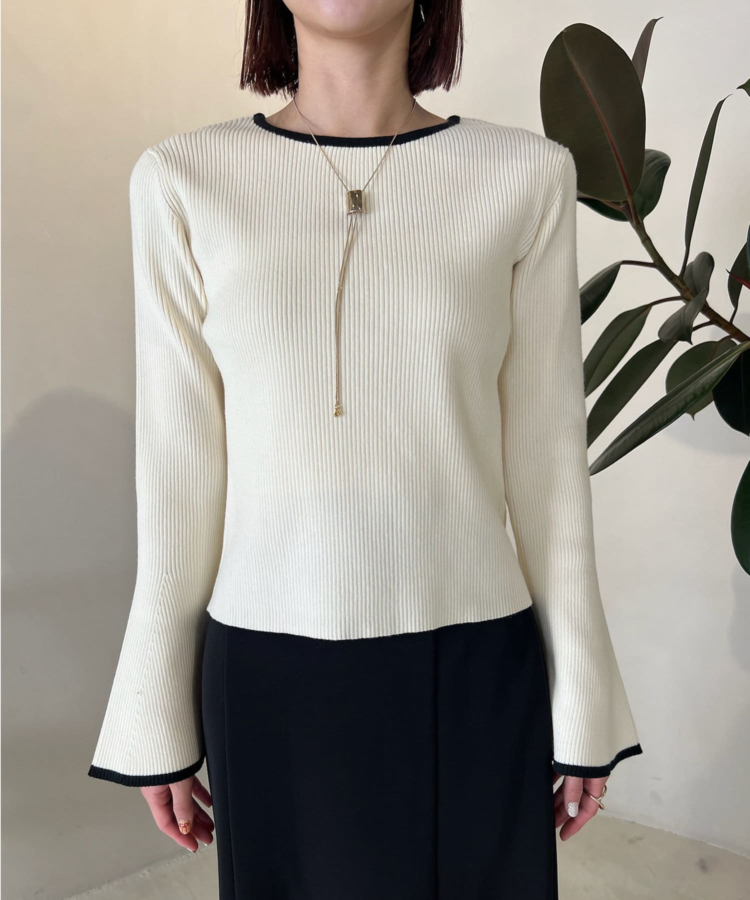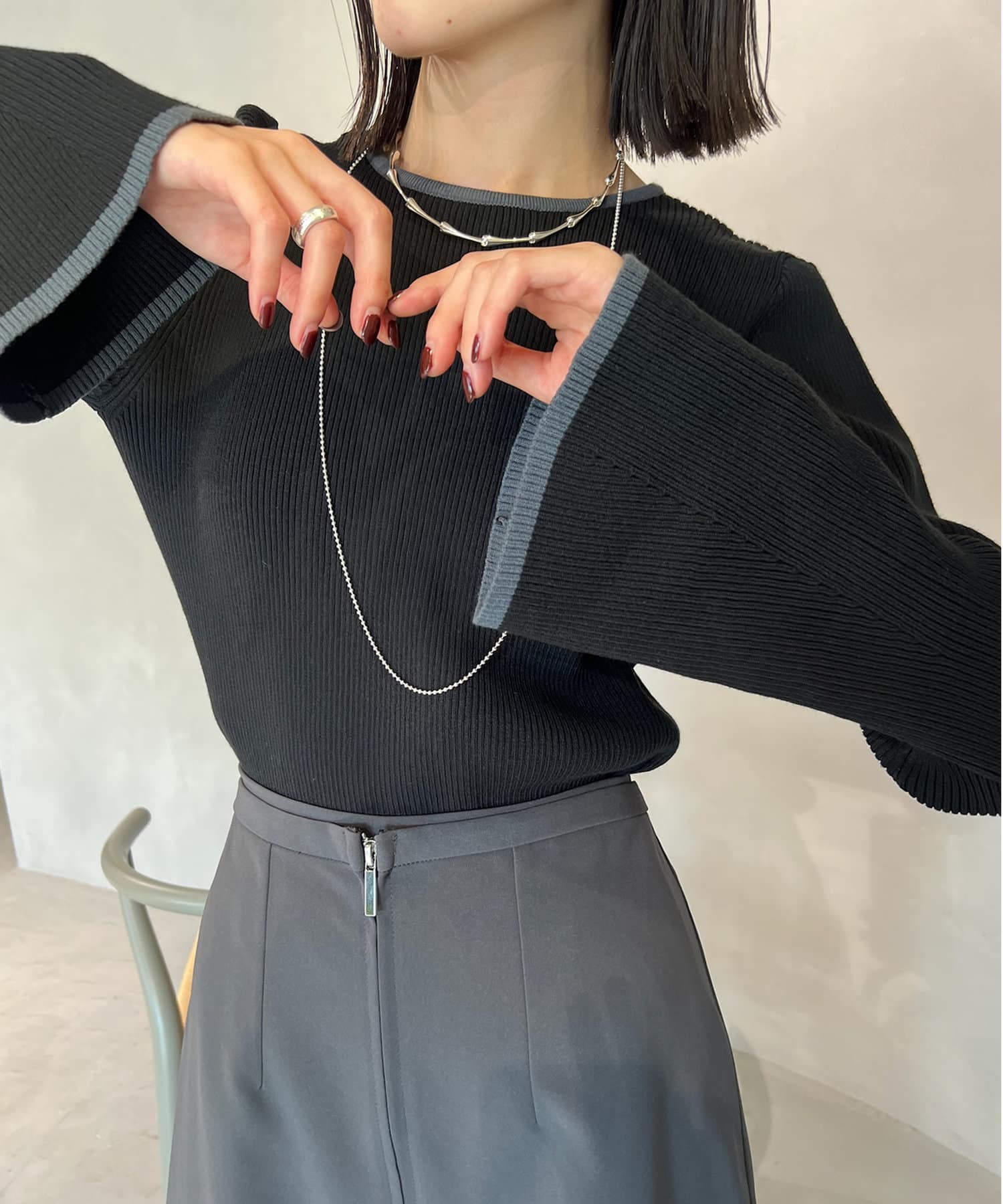 大人気の配色トップスに新しく袖フレアのニットが新登場!