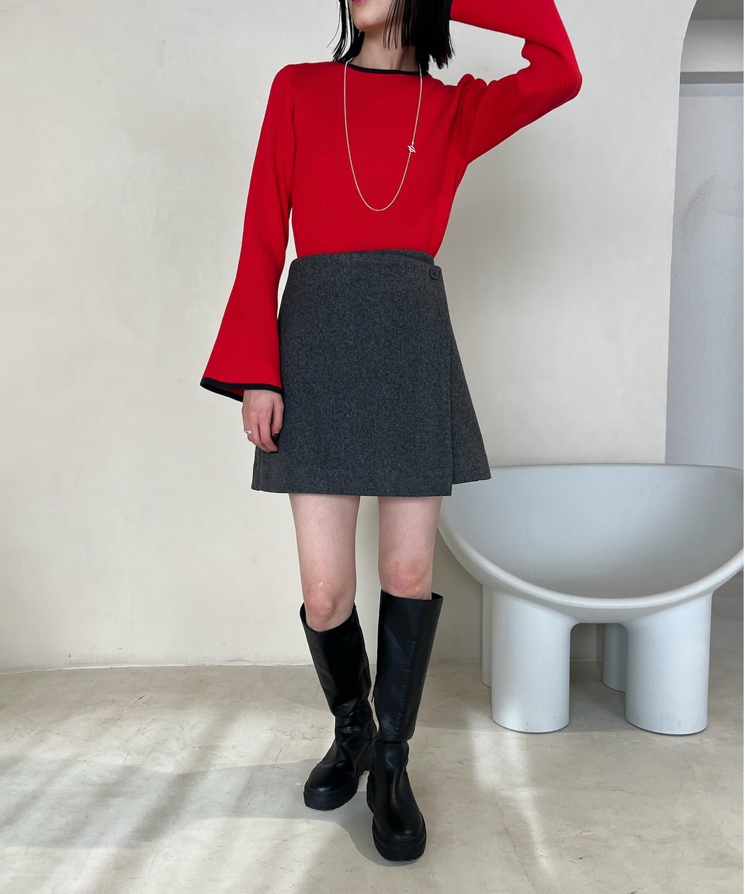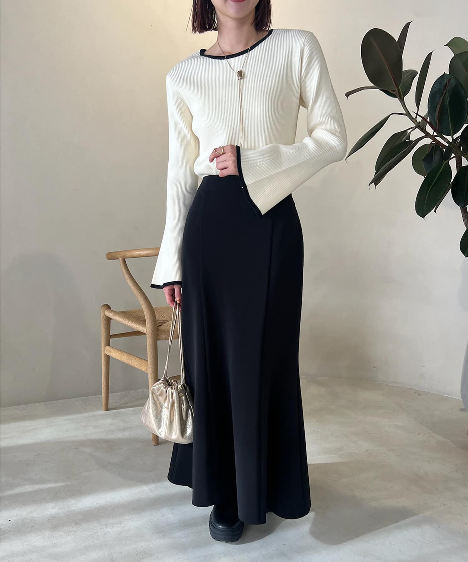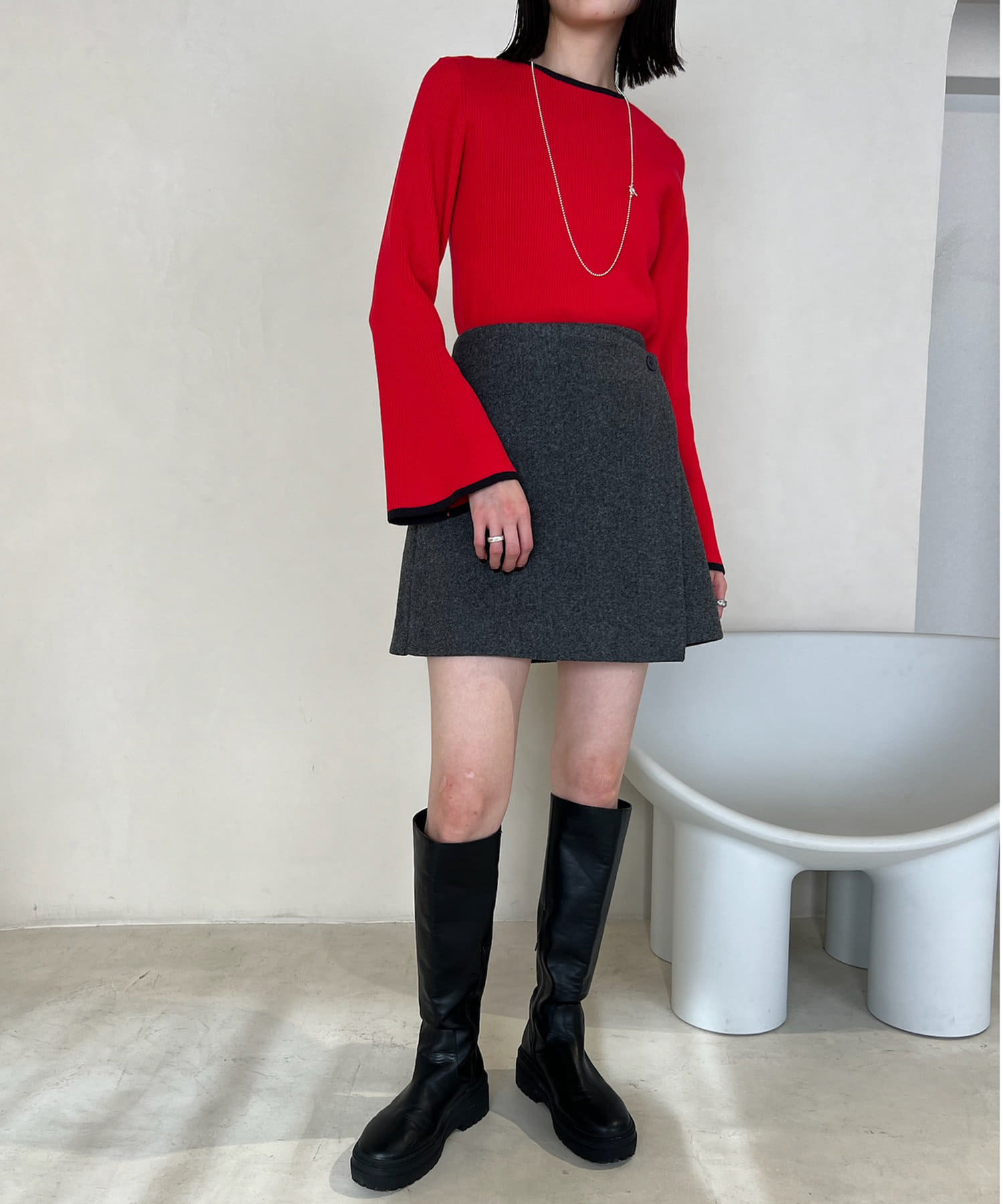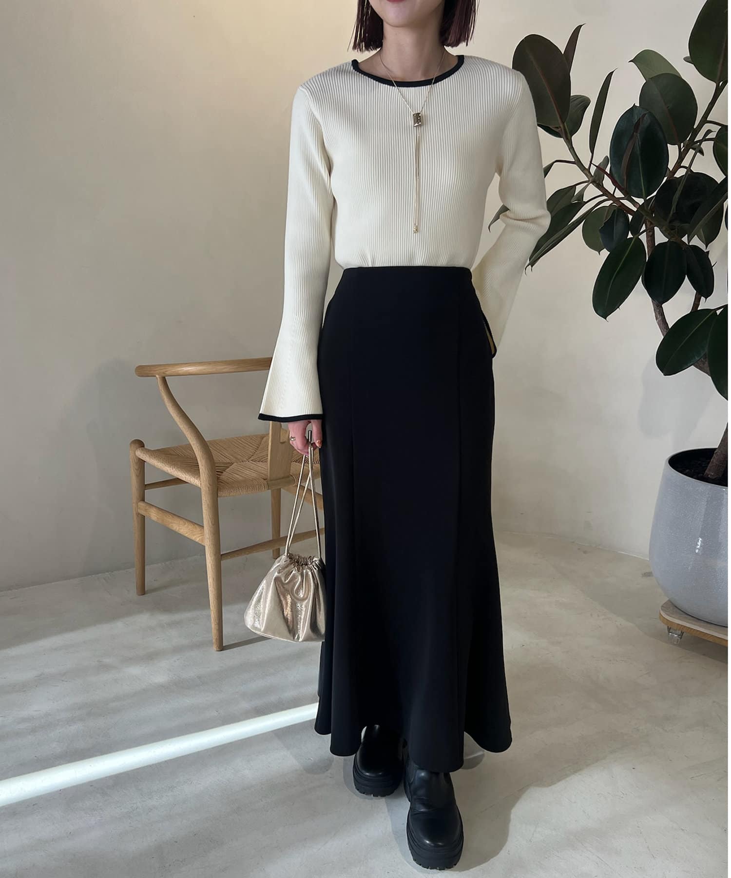 大人気の配色トップスに新しく袖フレアのニットが新登場!