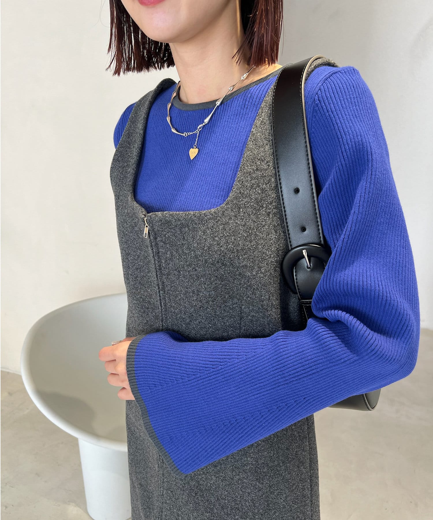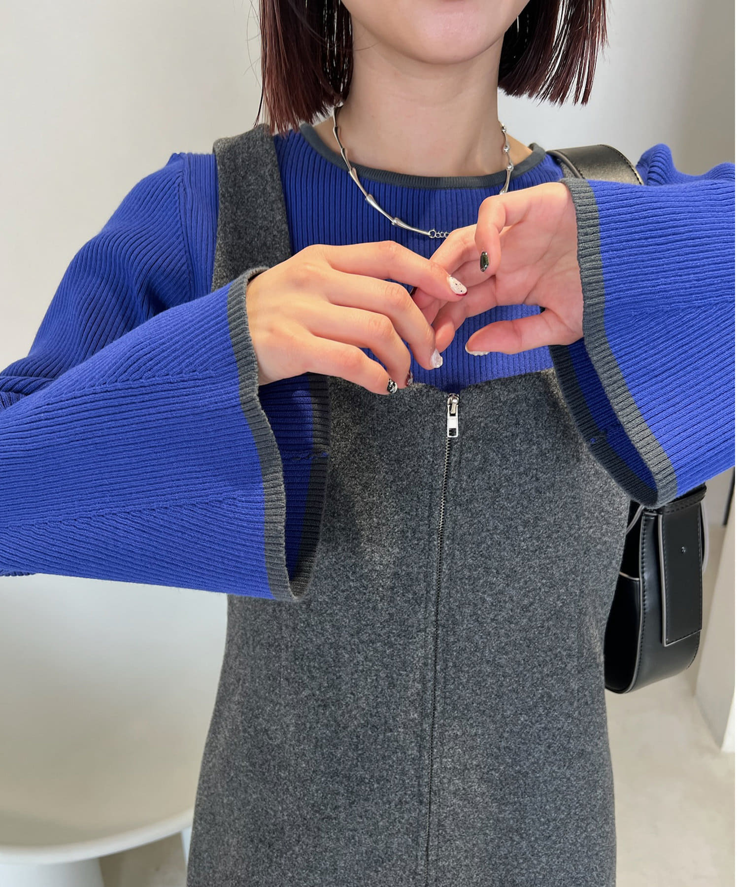 ・配色がアクセントながら、シンプルなデザインなので重ね着も楽しんでいただけます。