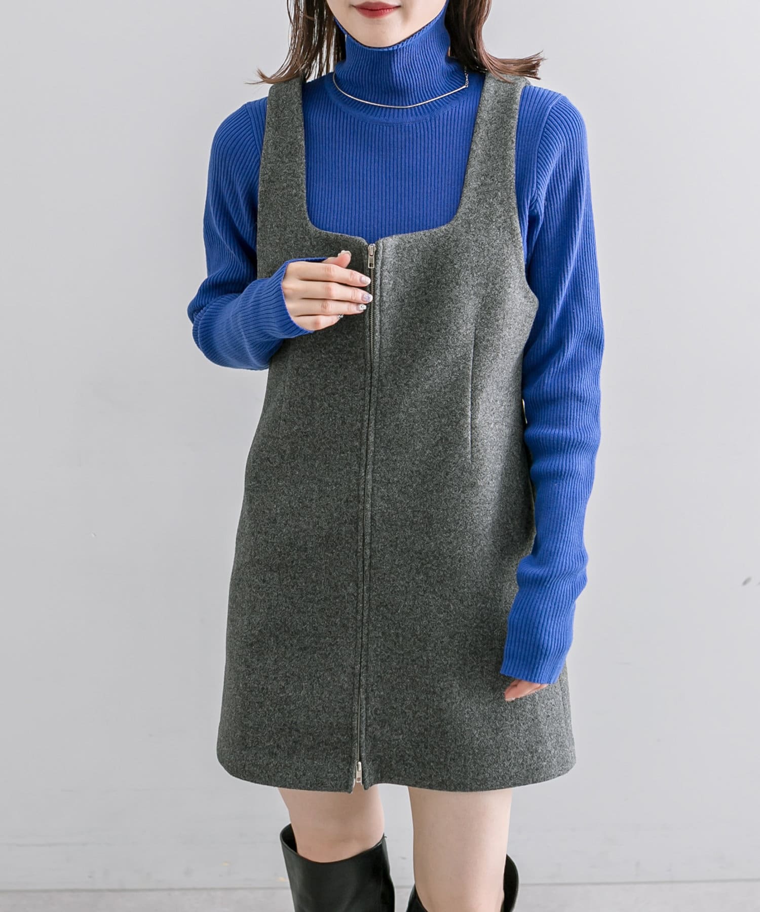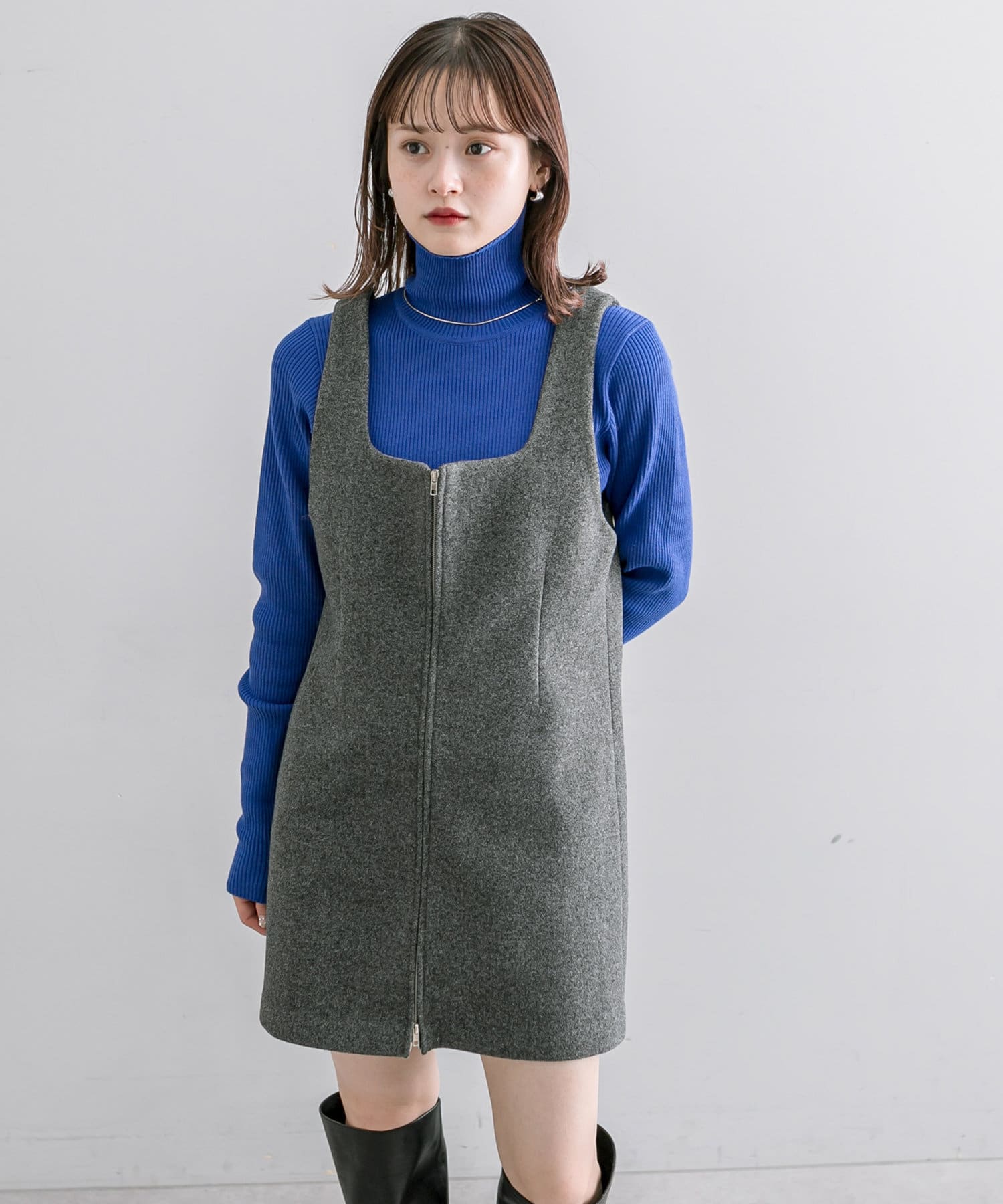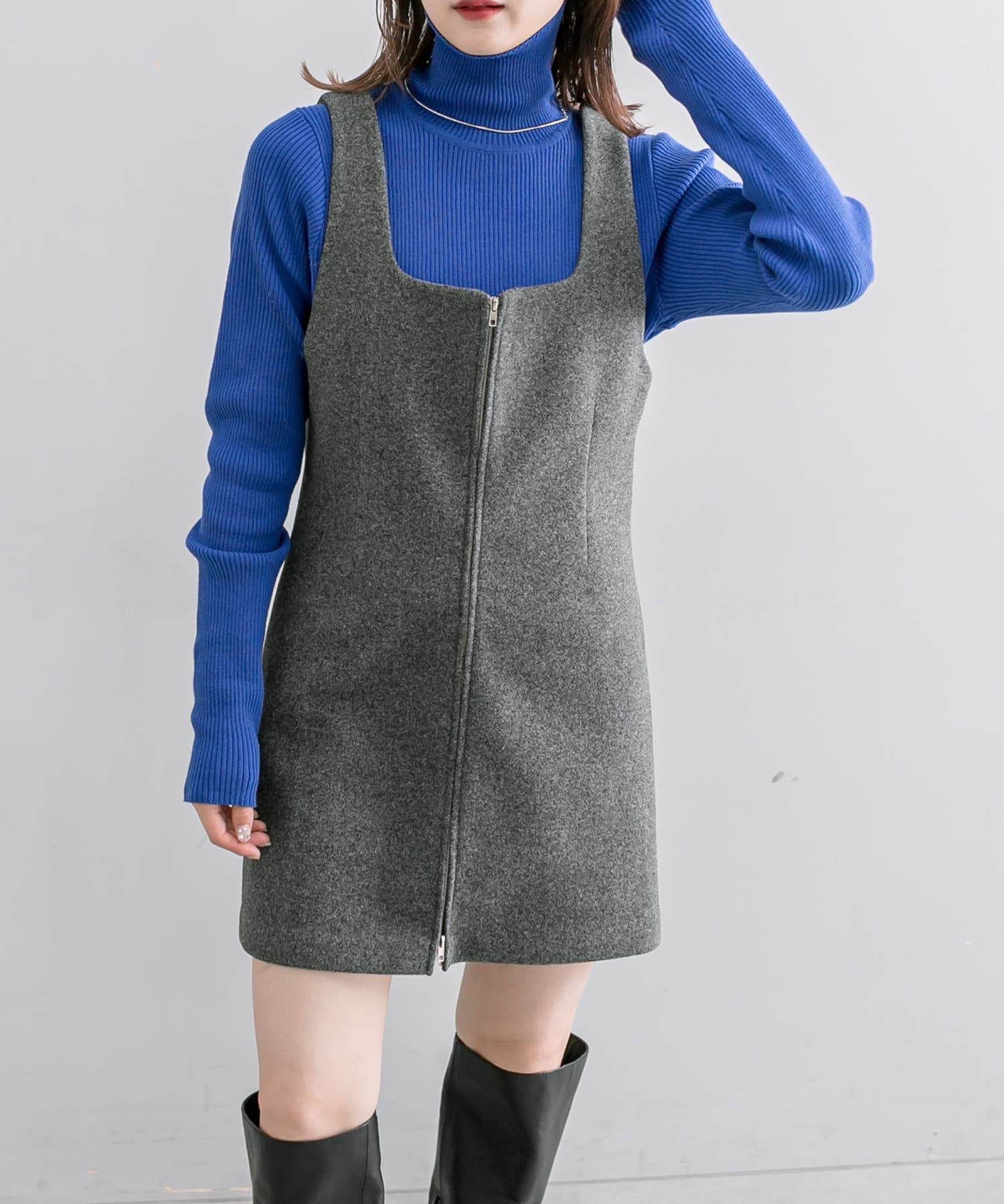 【サイズ展開あり】起毛ZIPミニワンピース