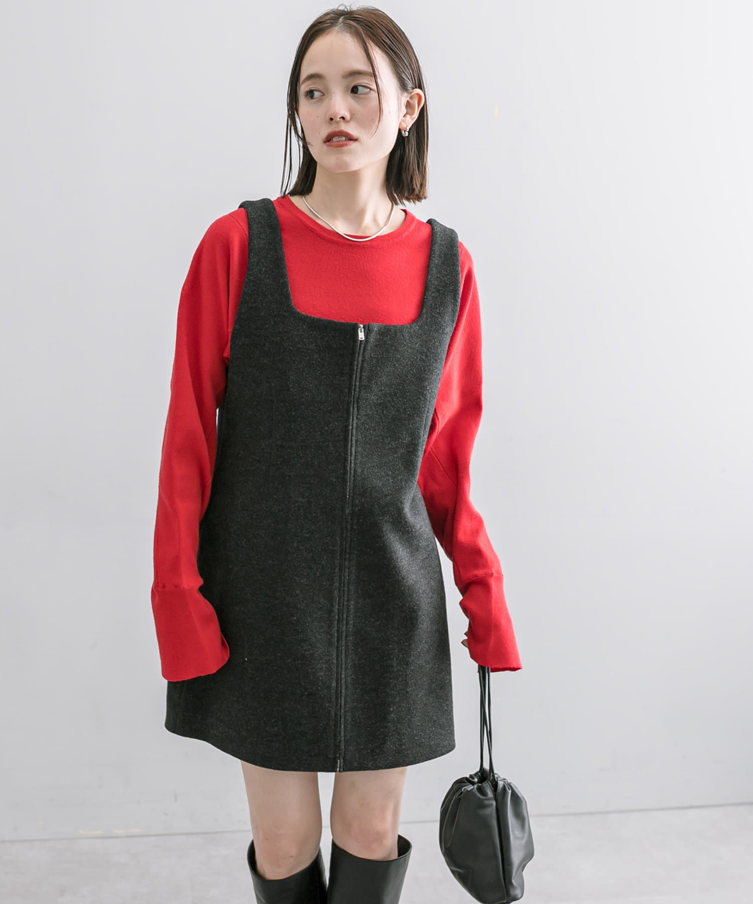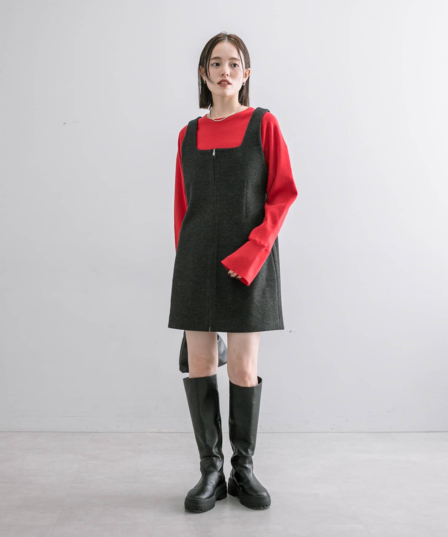 ・ミニ丈なのでロングブーツ合わせやミドルブーツ×ルーズソックス合わせも可愛く着ていただけます!