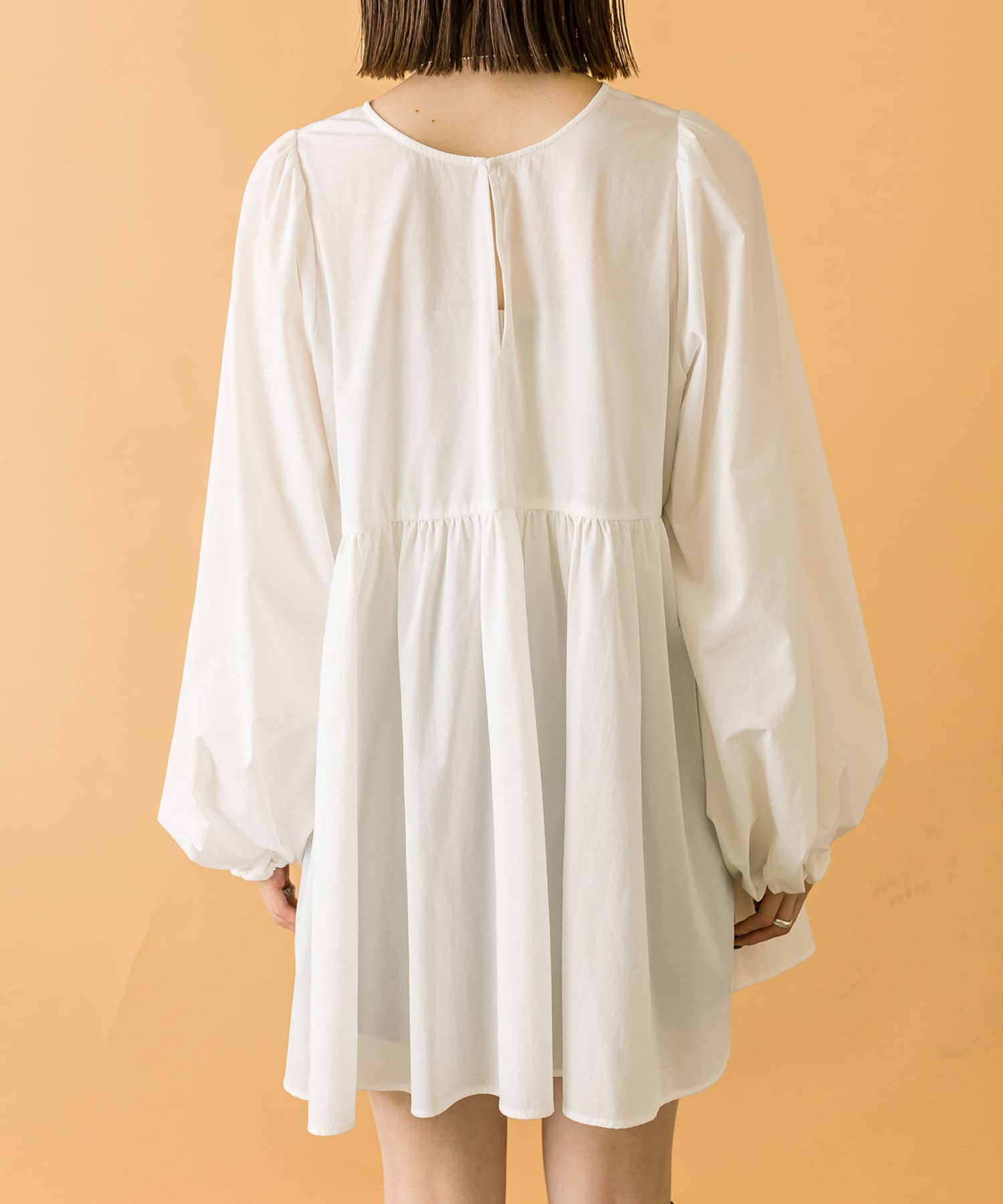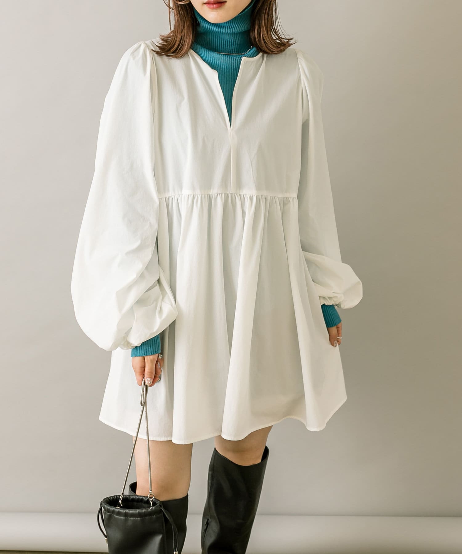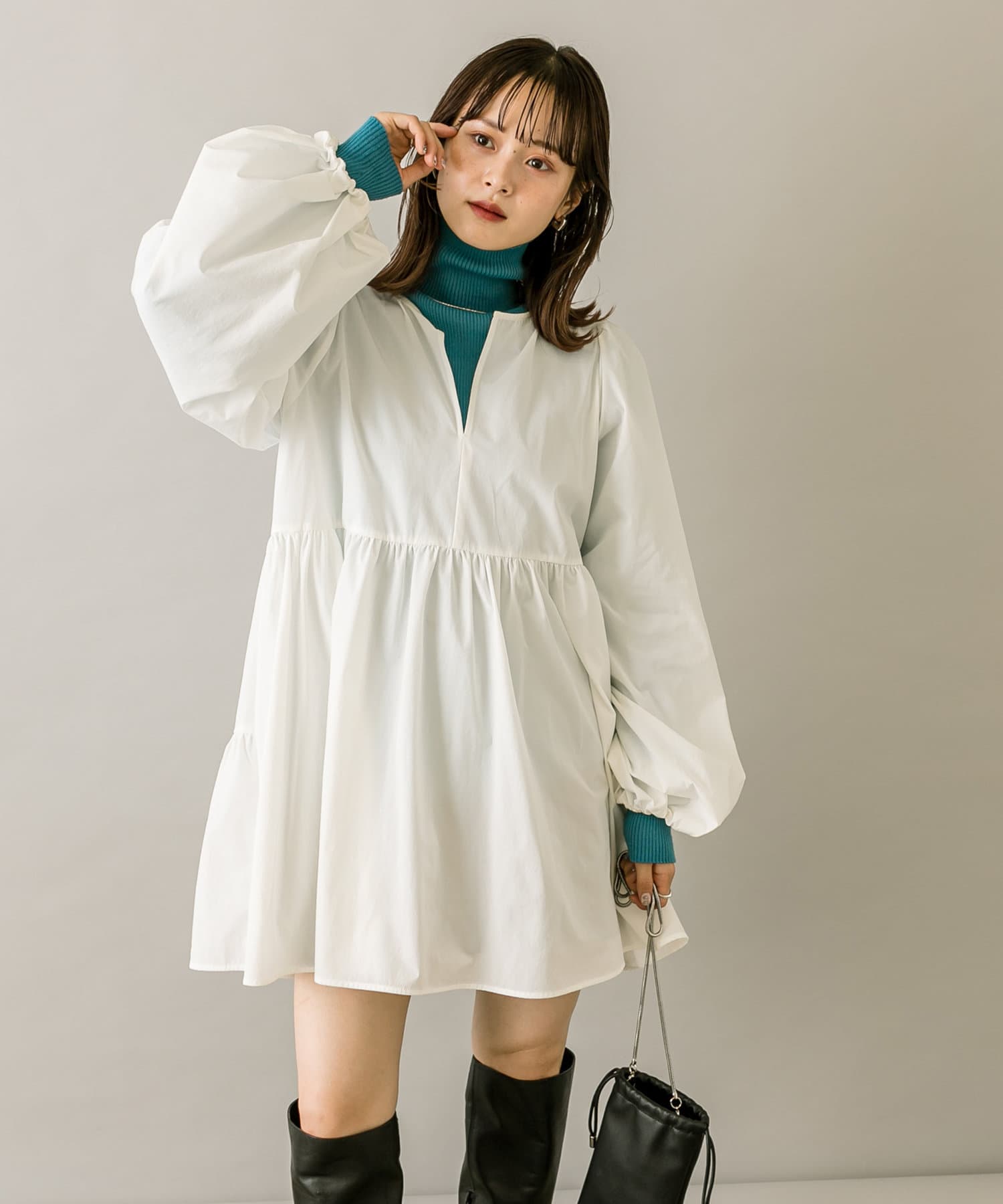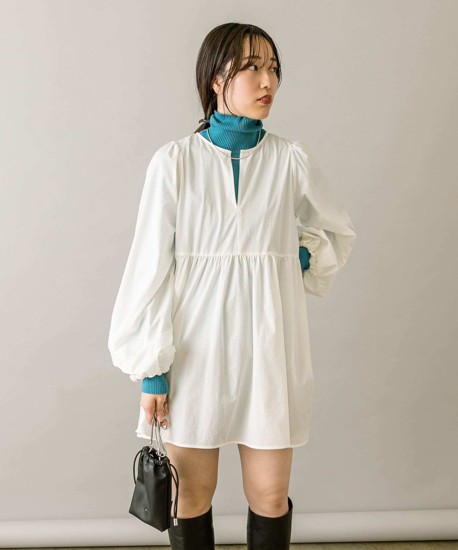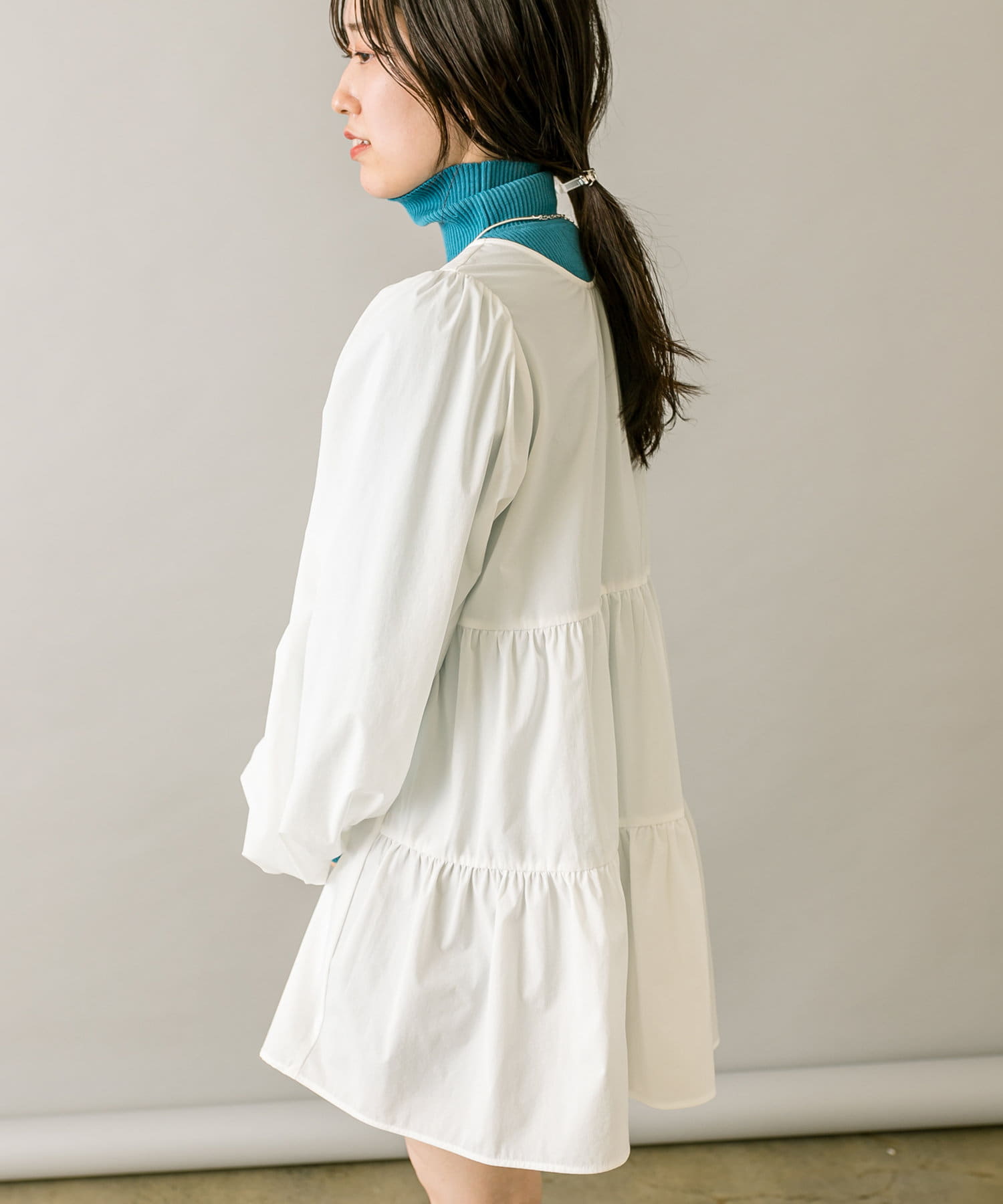 ブラウスとミニワンピのセットでワントーンコーデも楽しめます。