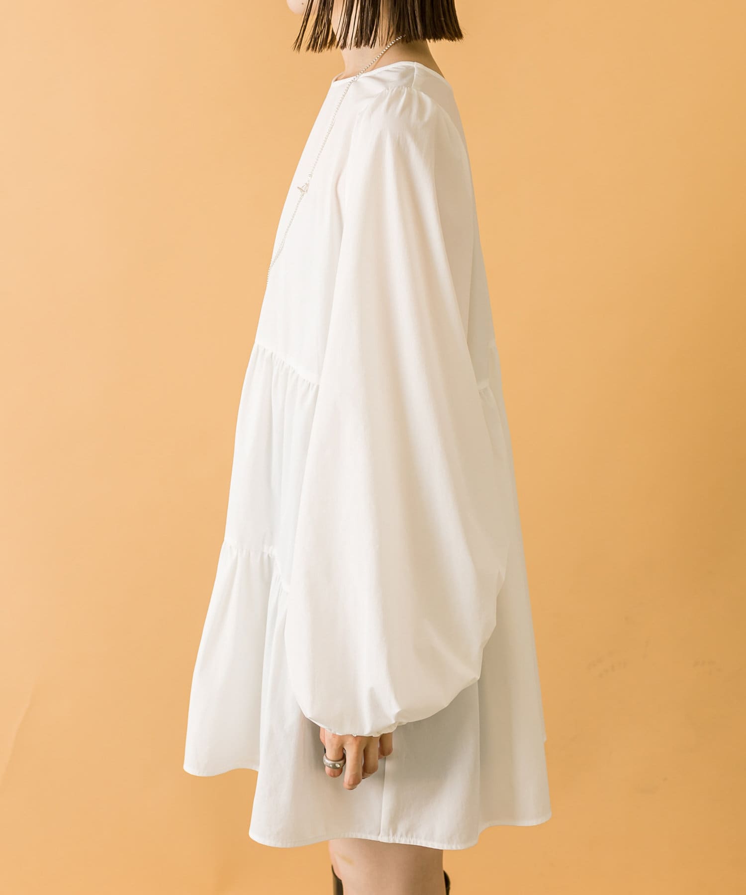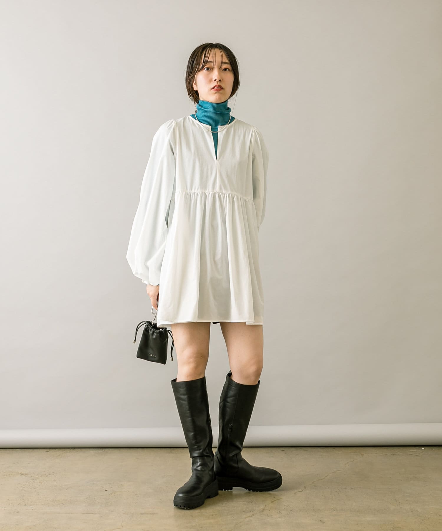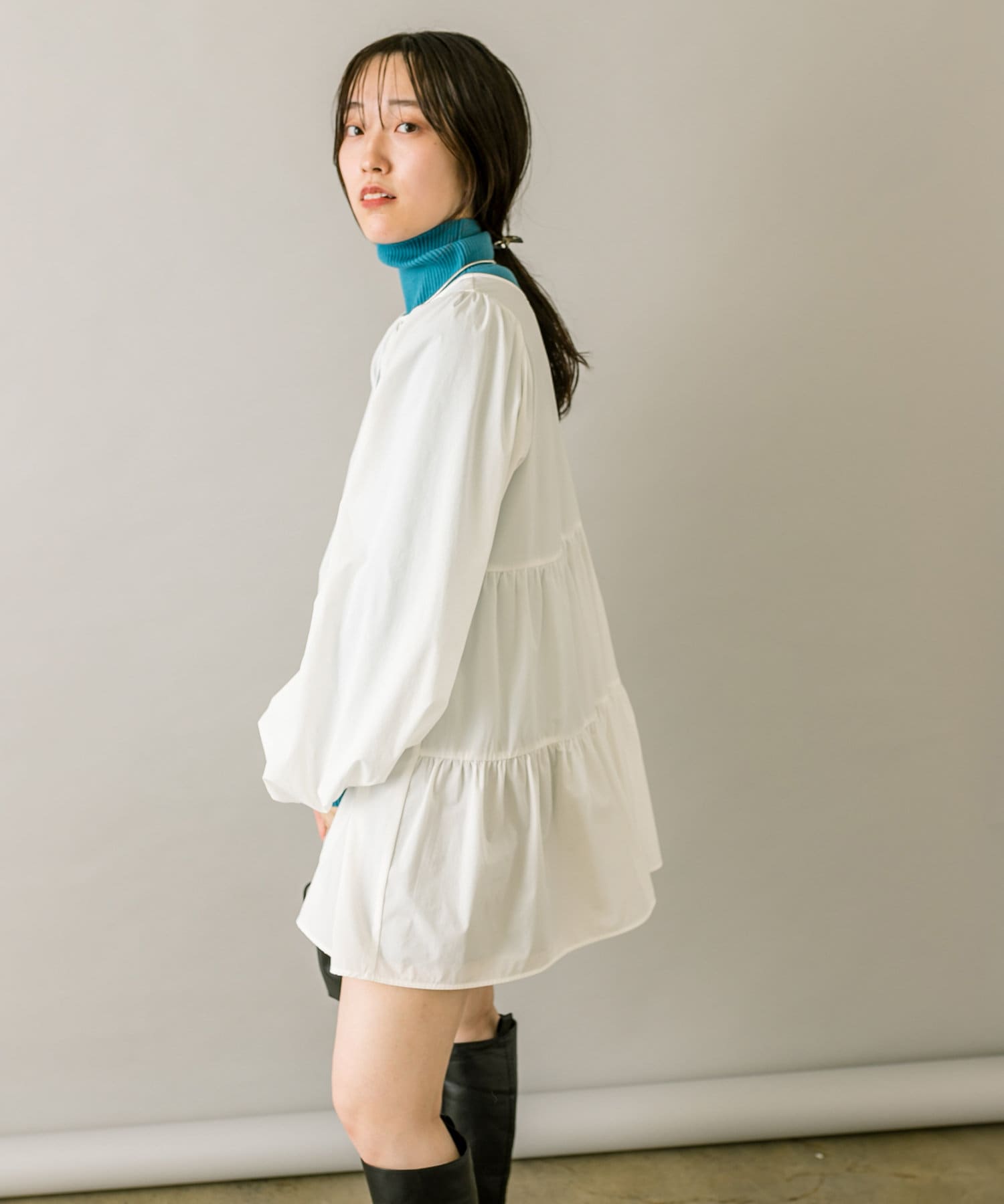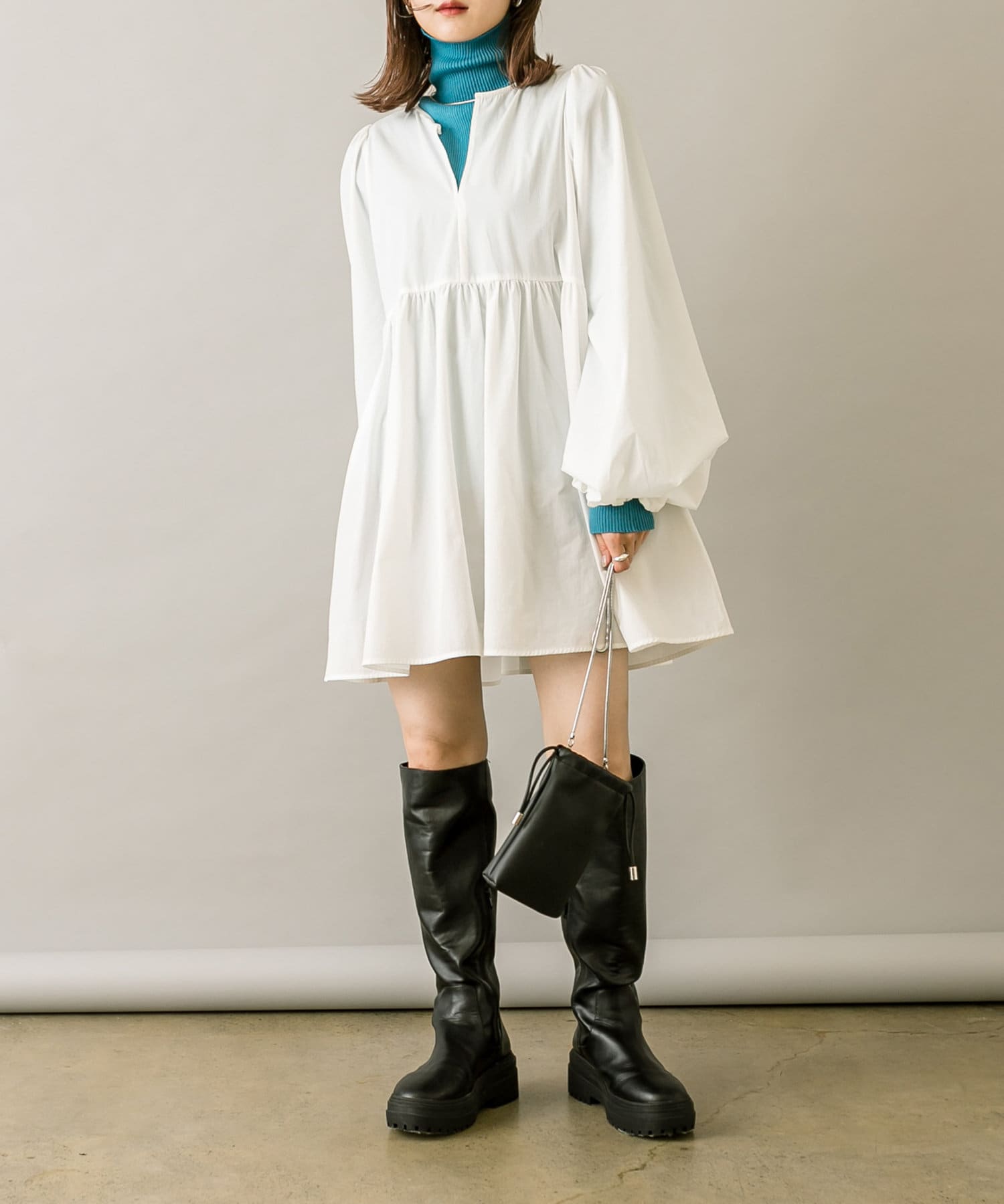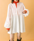 ブラウスとミニワンピのセットでワントーンコーデも楽しめます。