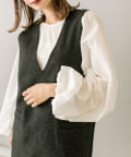 ブラウスの中にニットを着込むことで、女性らしいスタイリングのワンポイントに◎