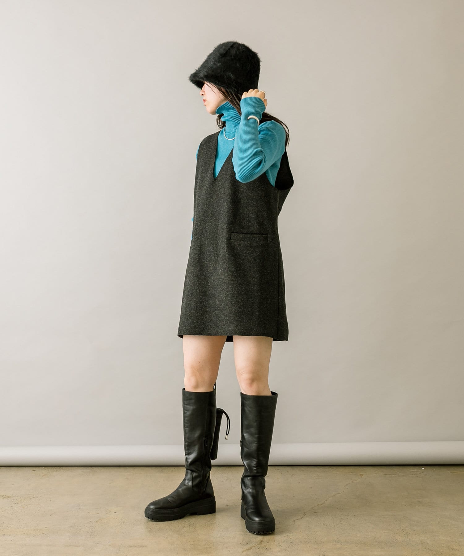 ②起毛ミニワンピース(charcoal)