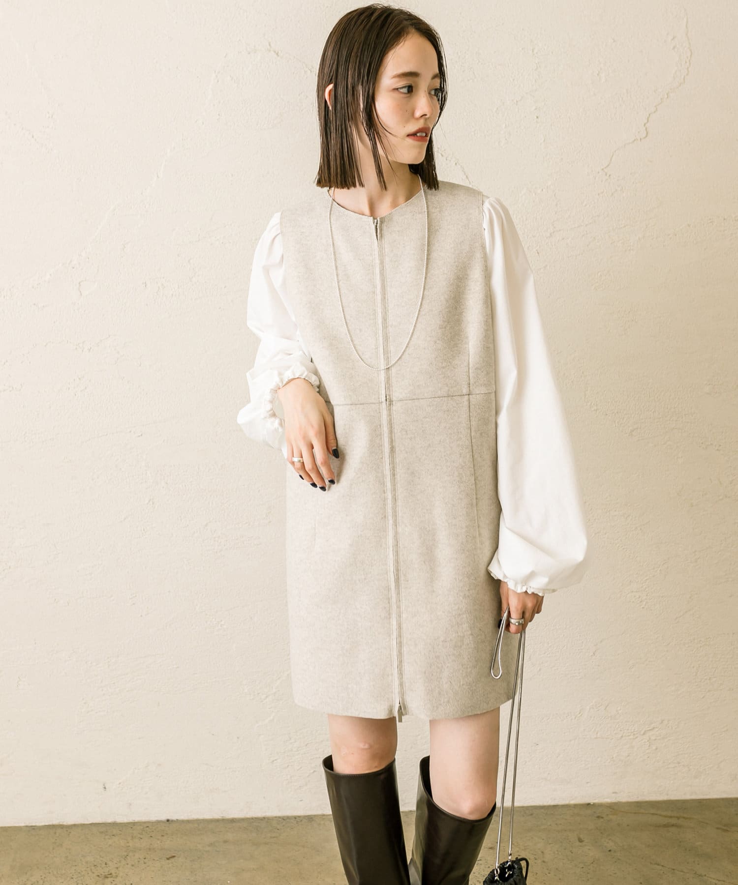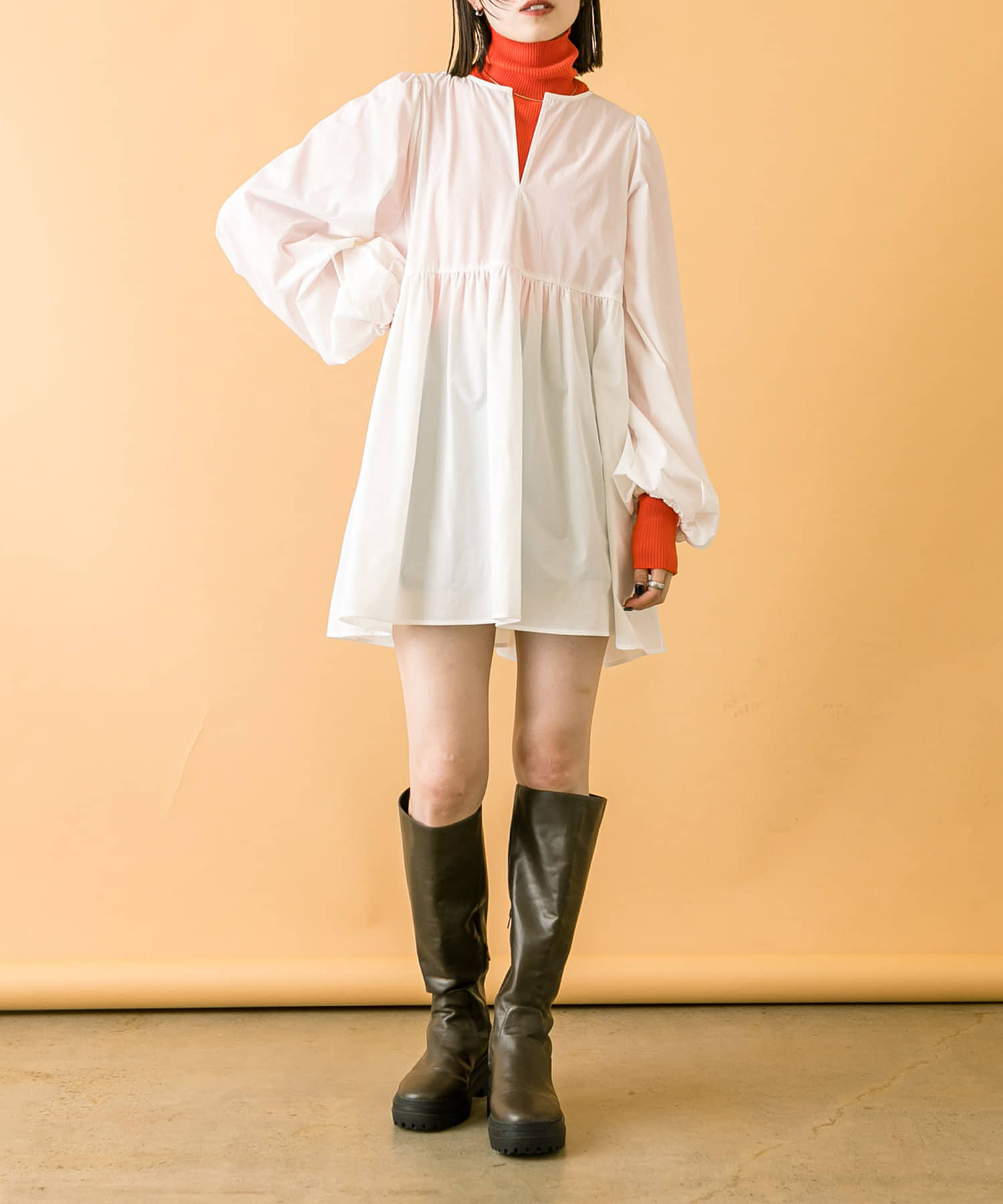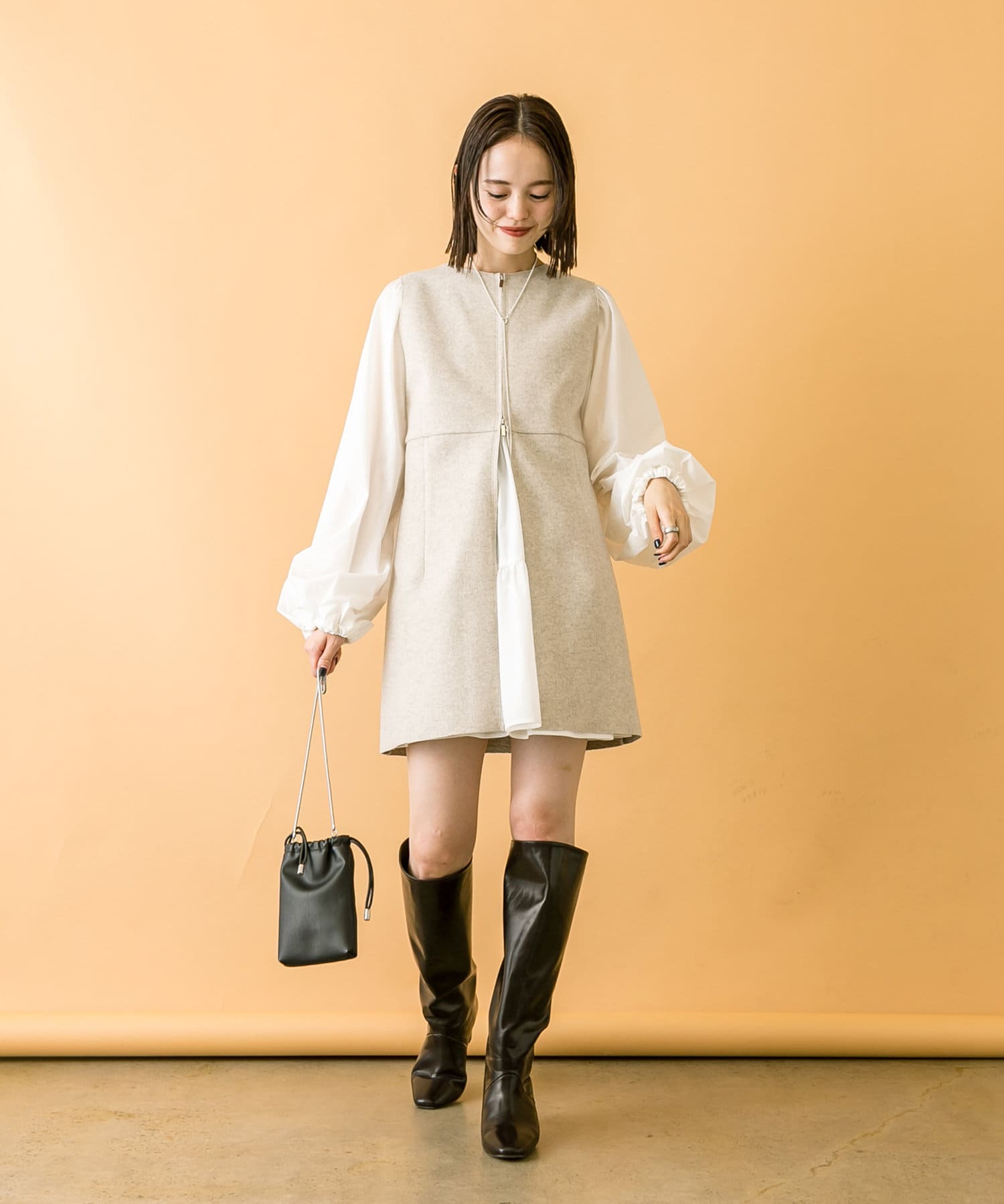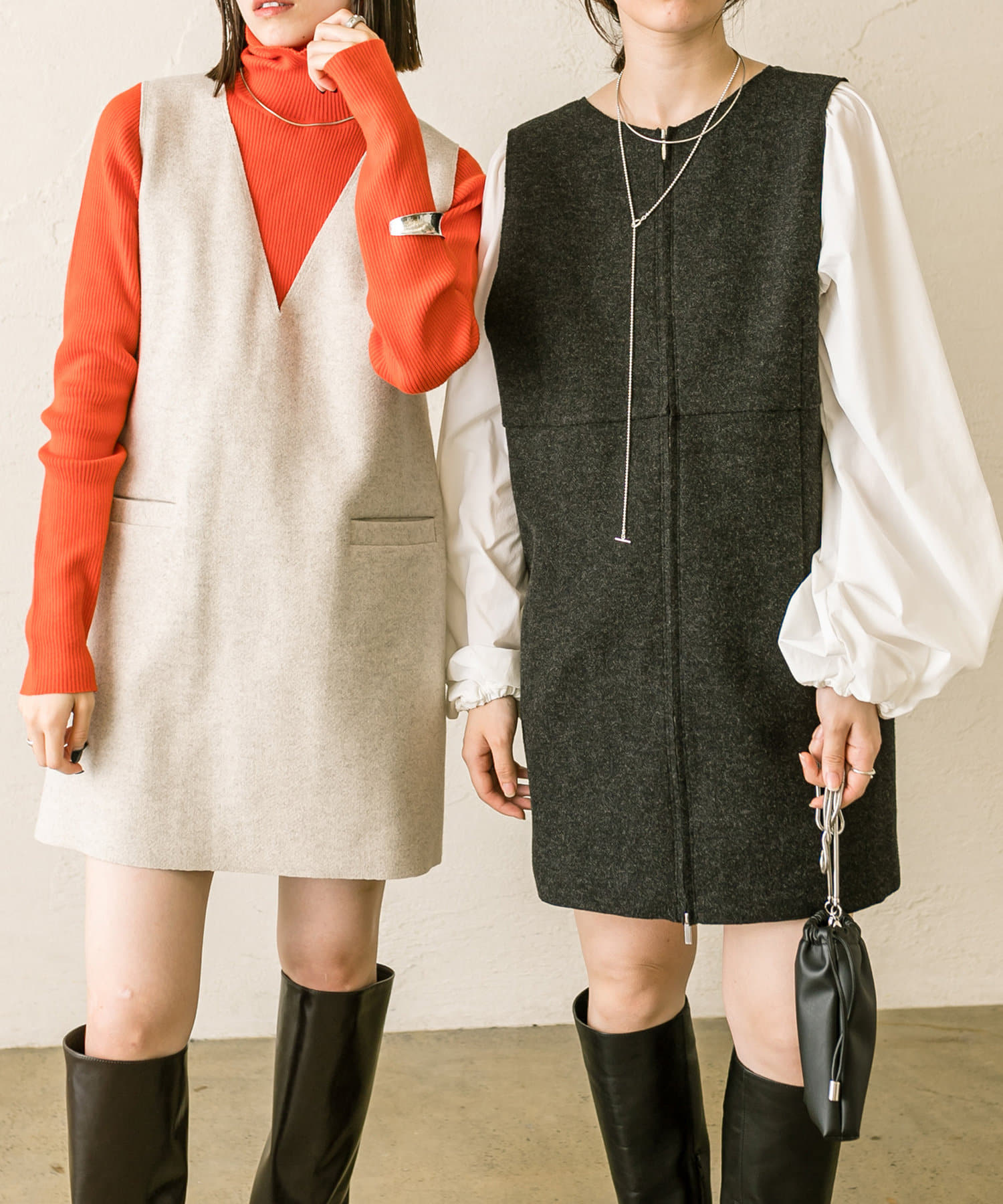 ミニワンピは前後両前で着用できるため、合わせるアイテムによって変えることで様々な雰囲気をお楽しみいただけます。