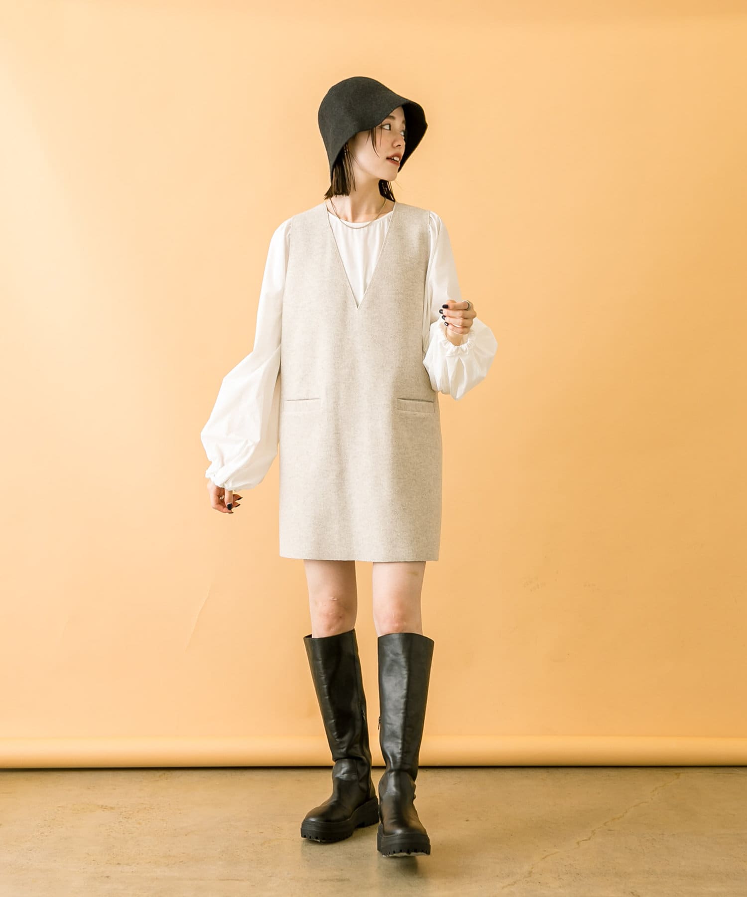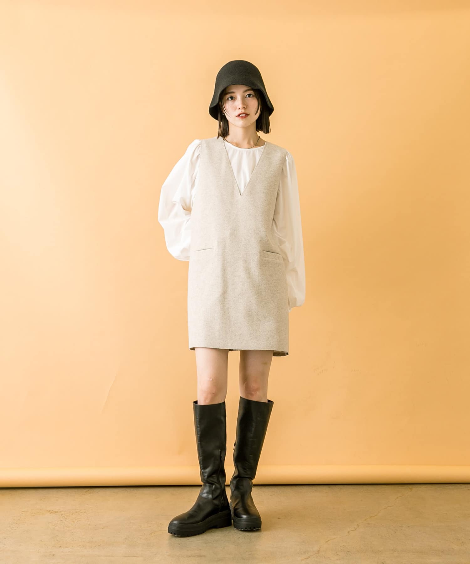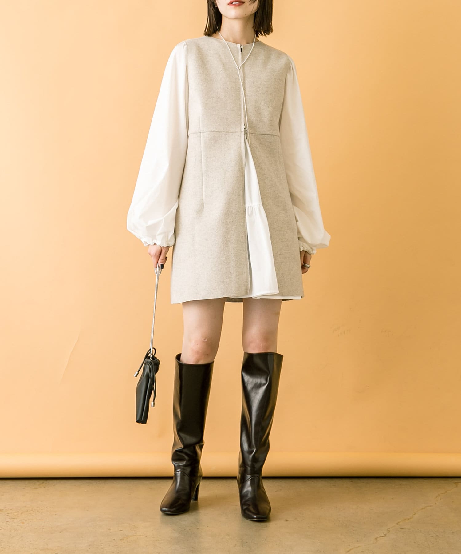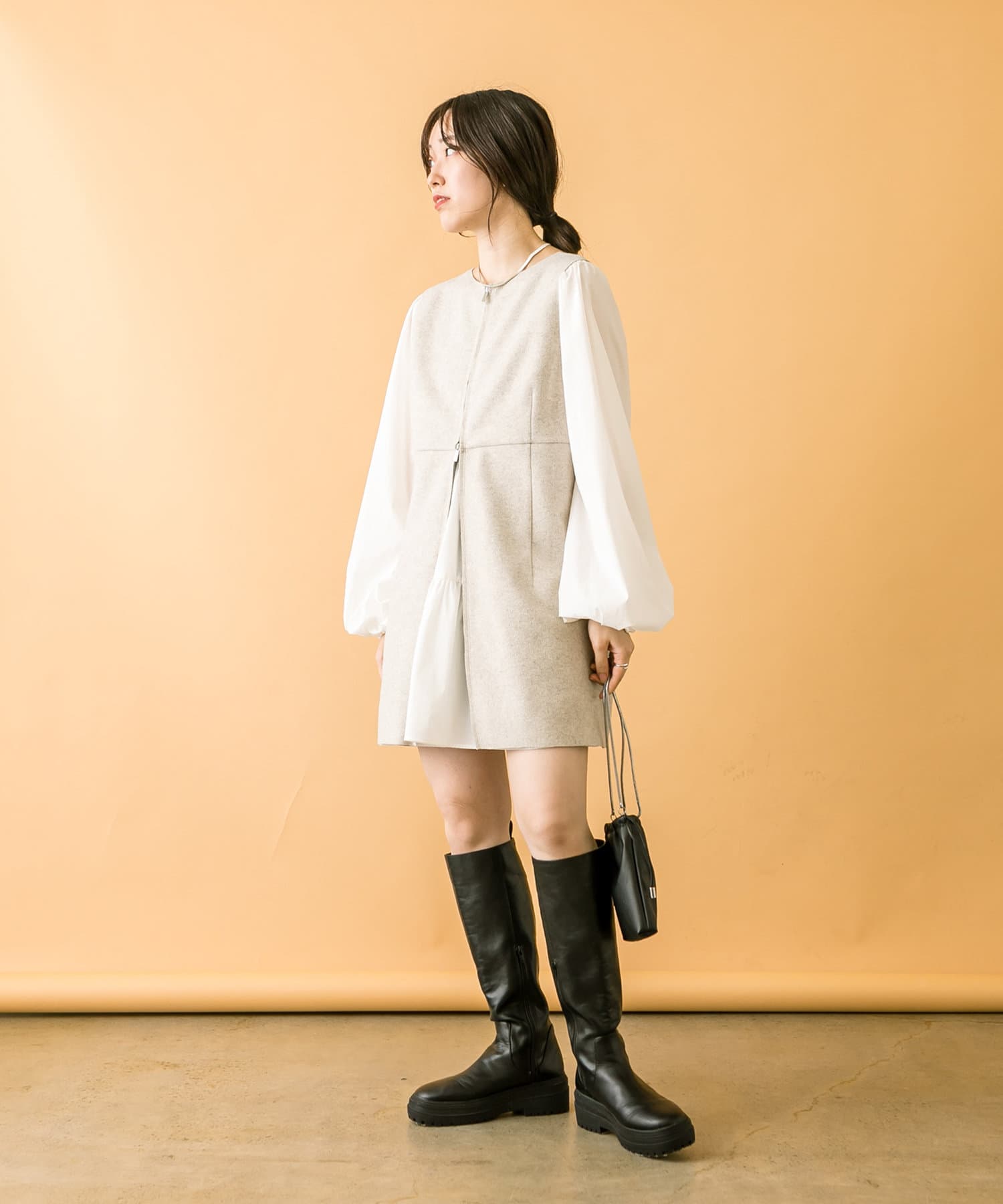ミニワンピは前後両前で着用できるため、合わせるアイテムによって変えることで様々な雰囲気をお楽しみいただけます。