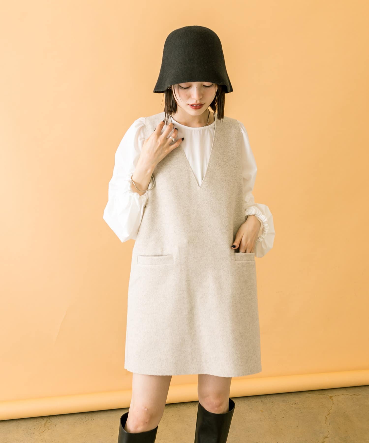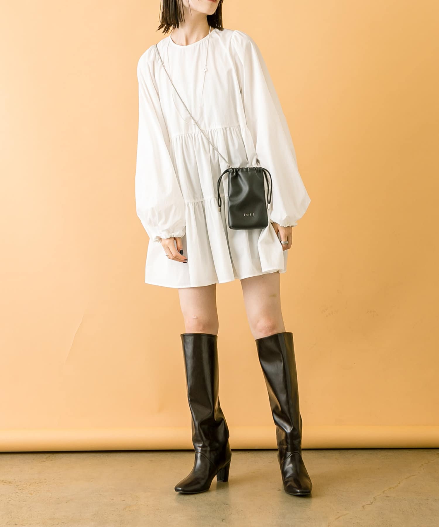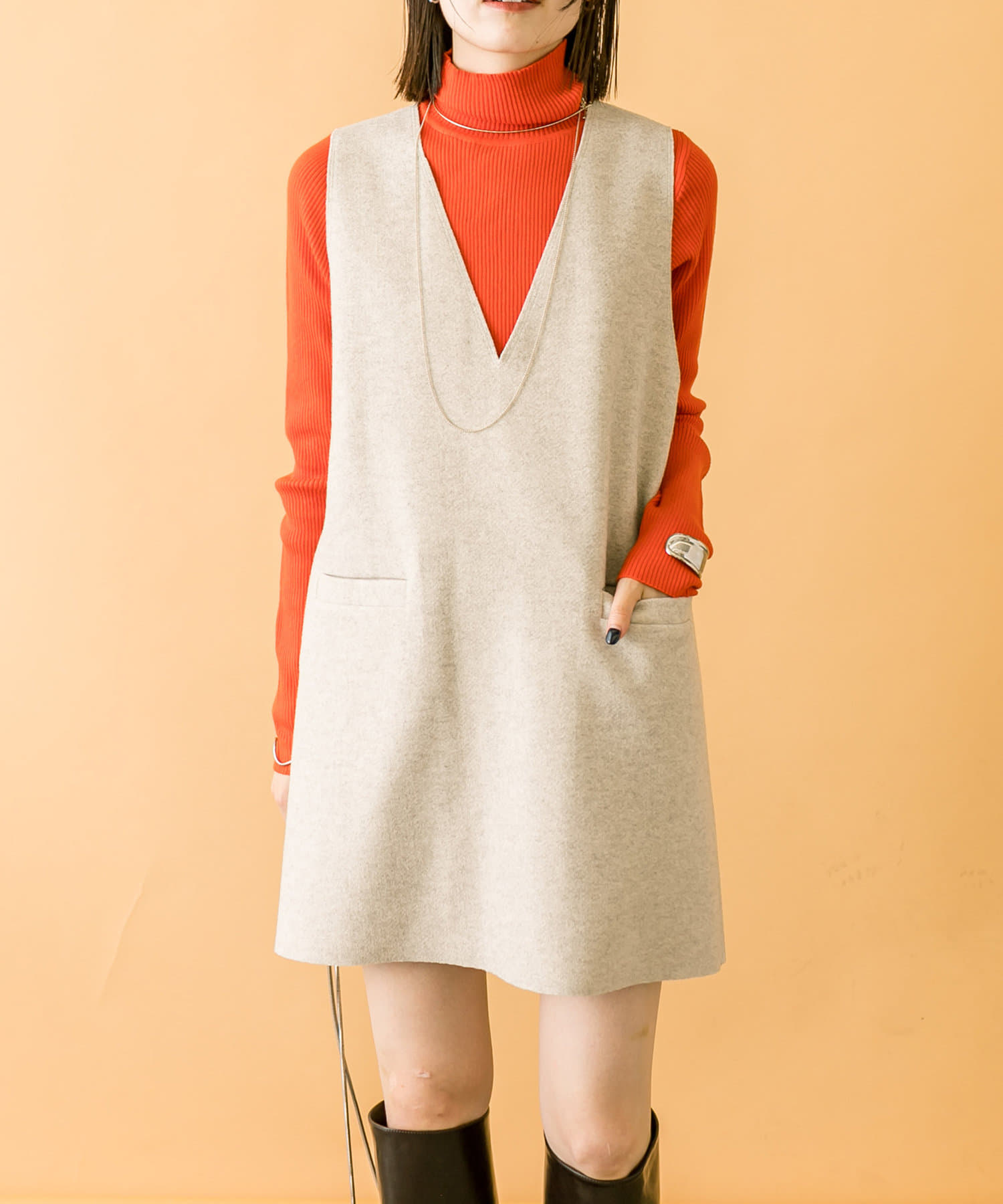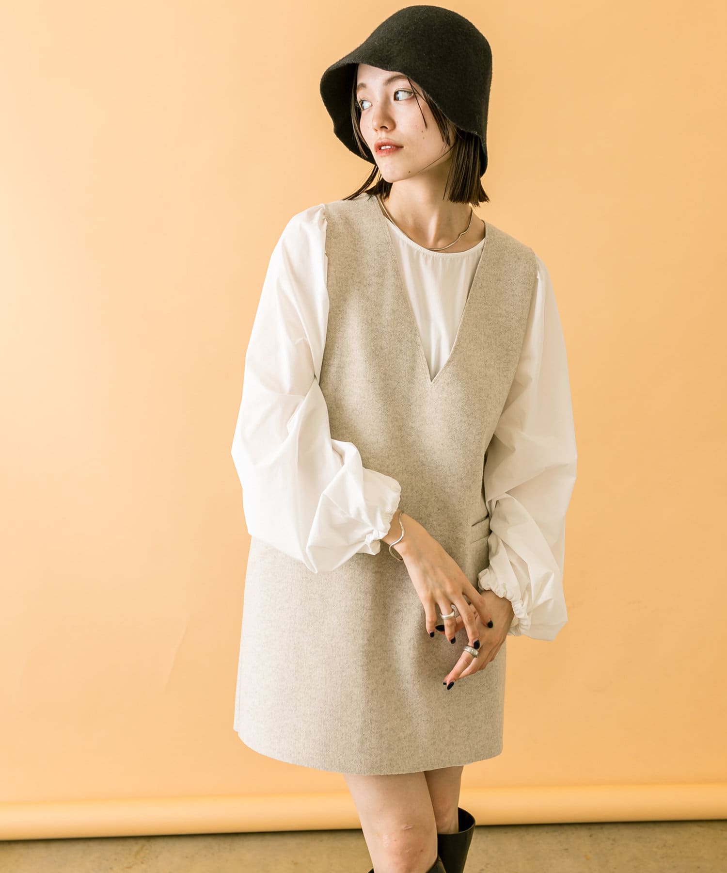 ミニワンピは前後両前で着用できるため、合わせるアイテムによって変えることで様々な雰囲気をお楽しみいただけます。
