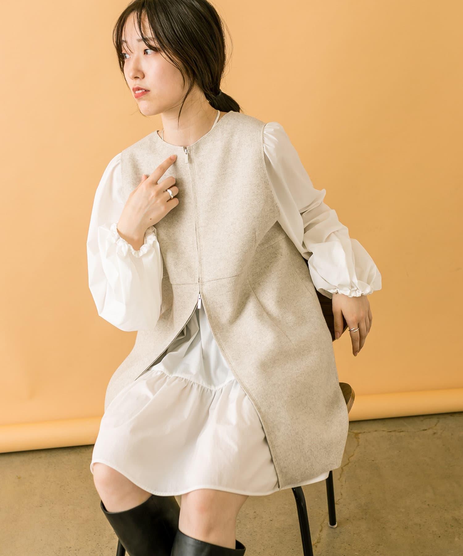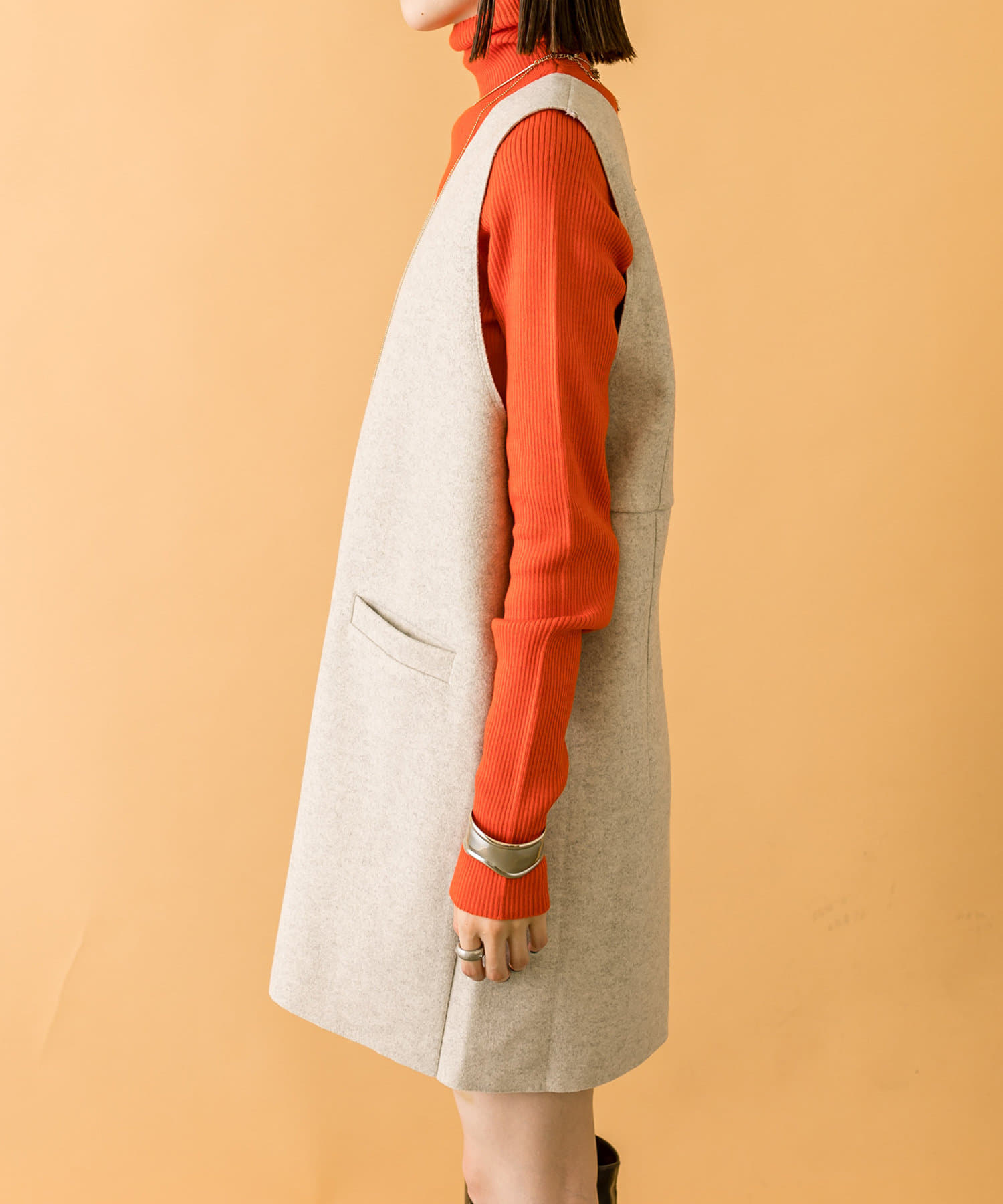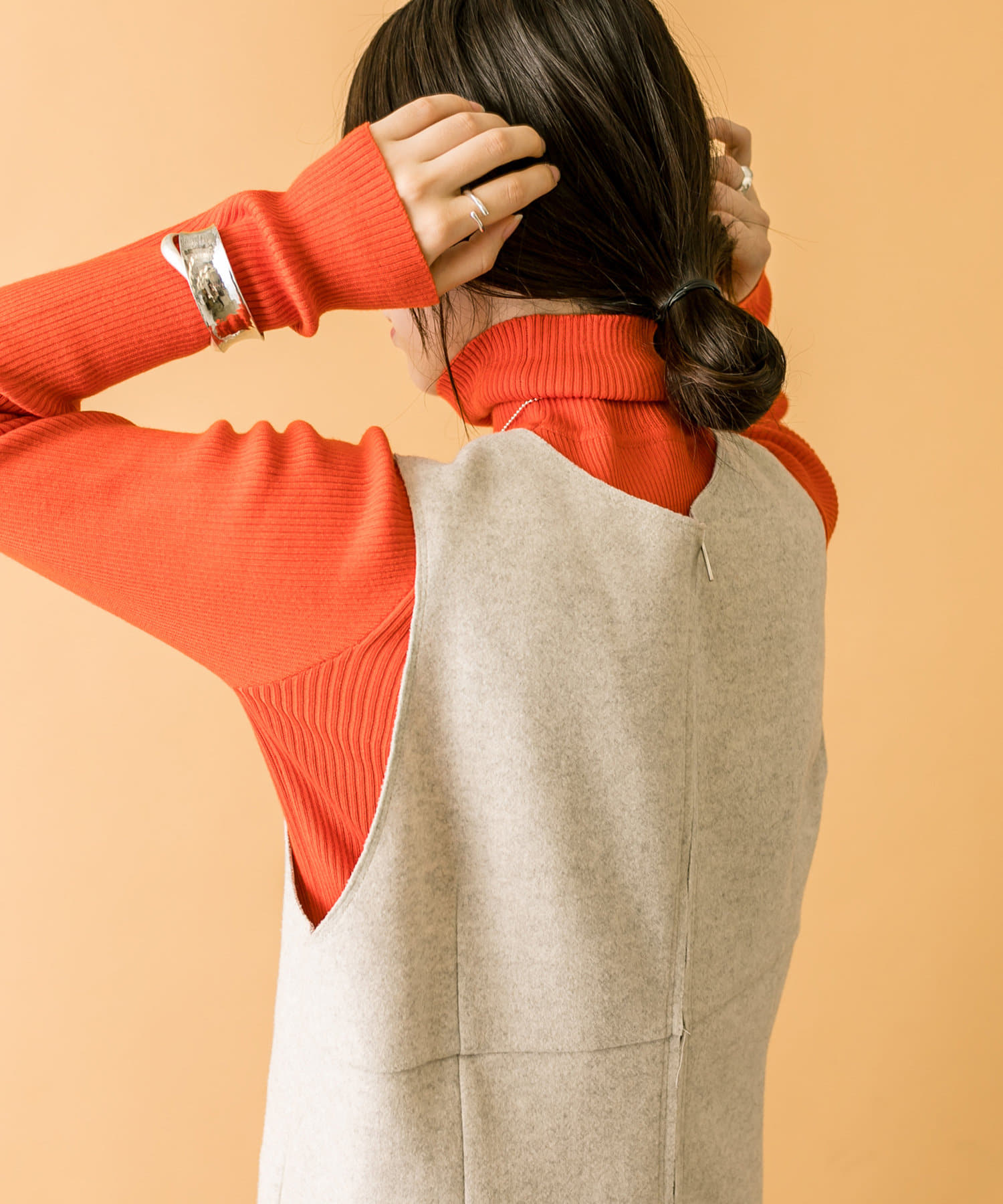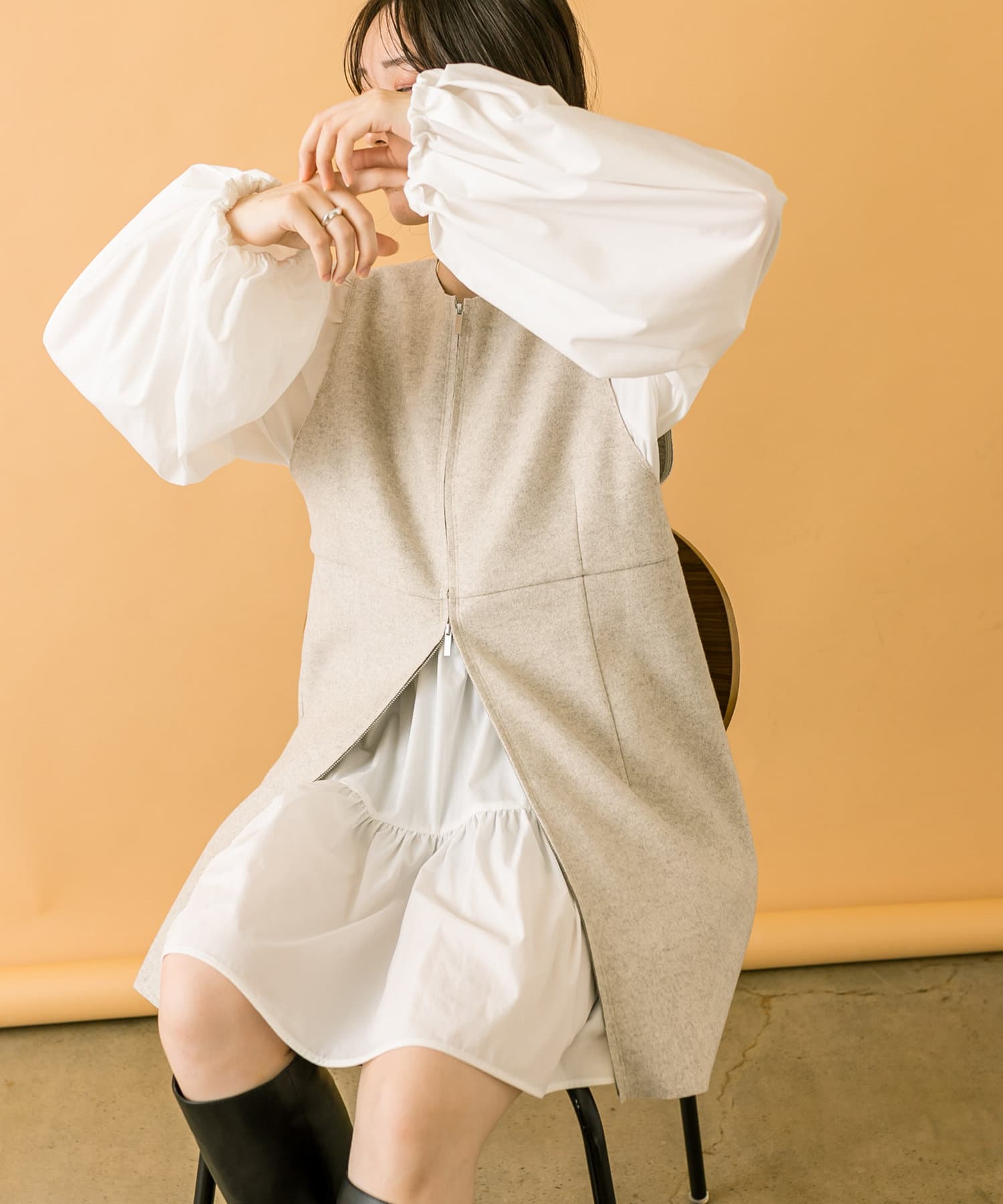 ミニワンピは前後両前で着用できるため、合わせるアイテムによって変えることで様々な雰囲気をお楽しみいただけます。