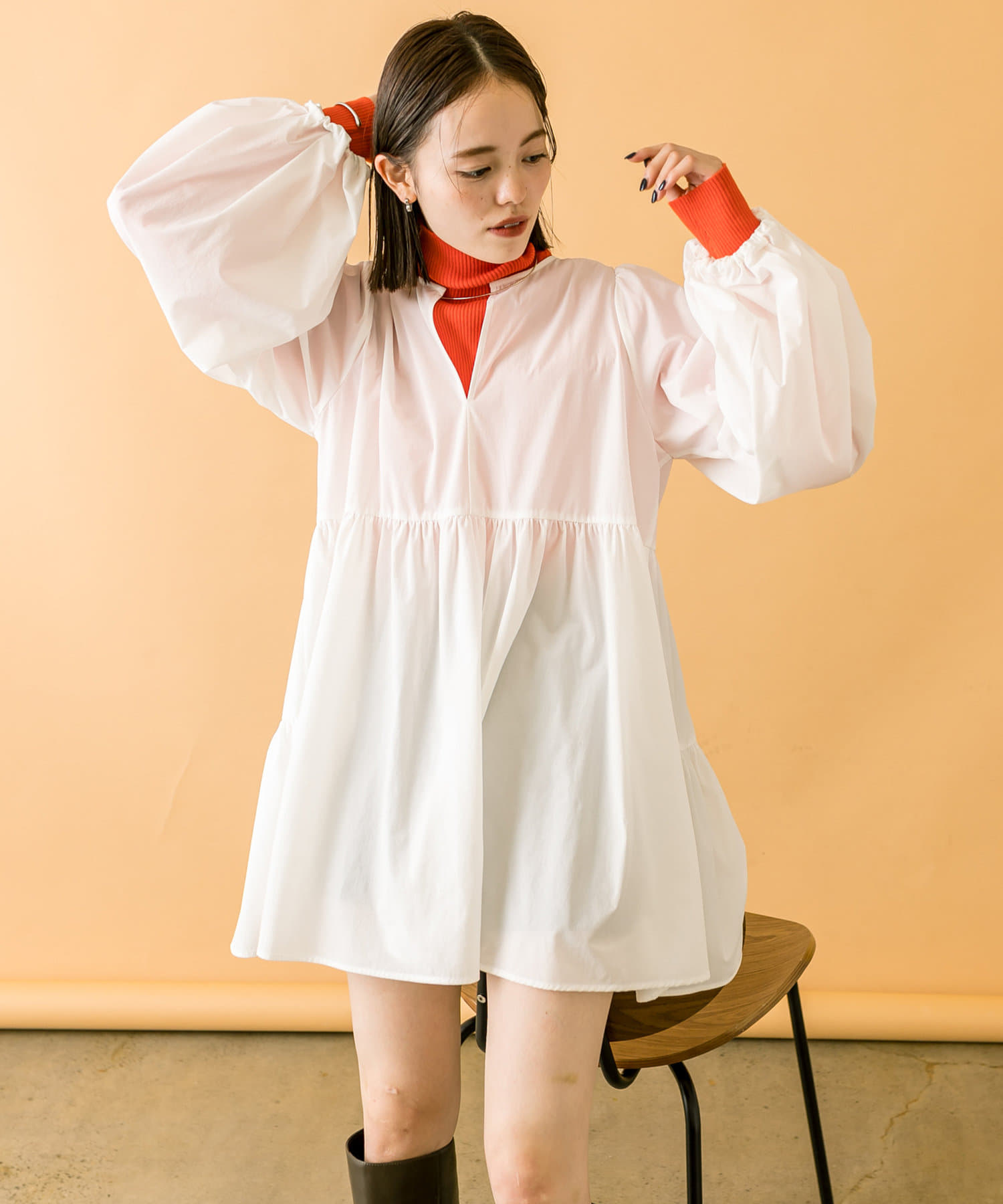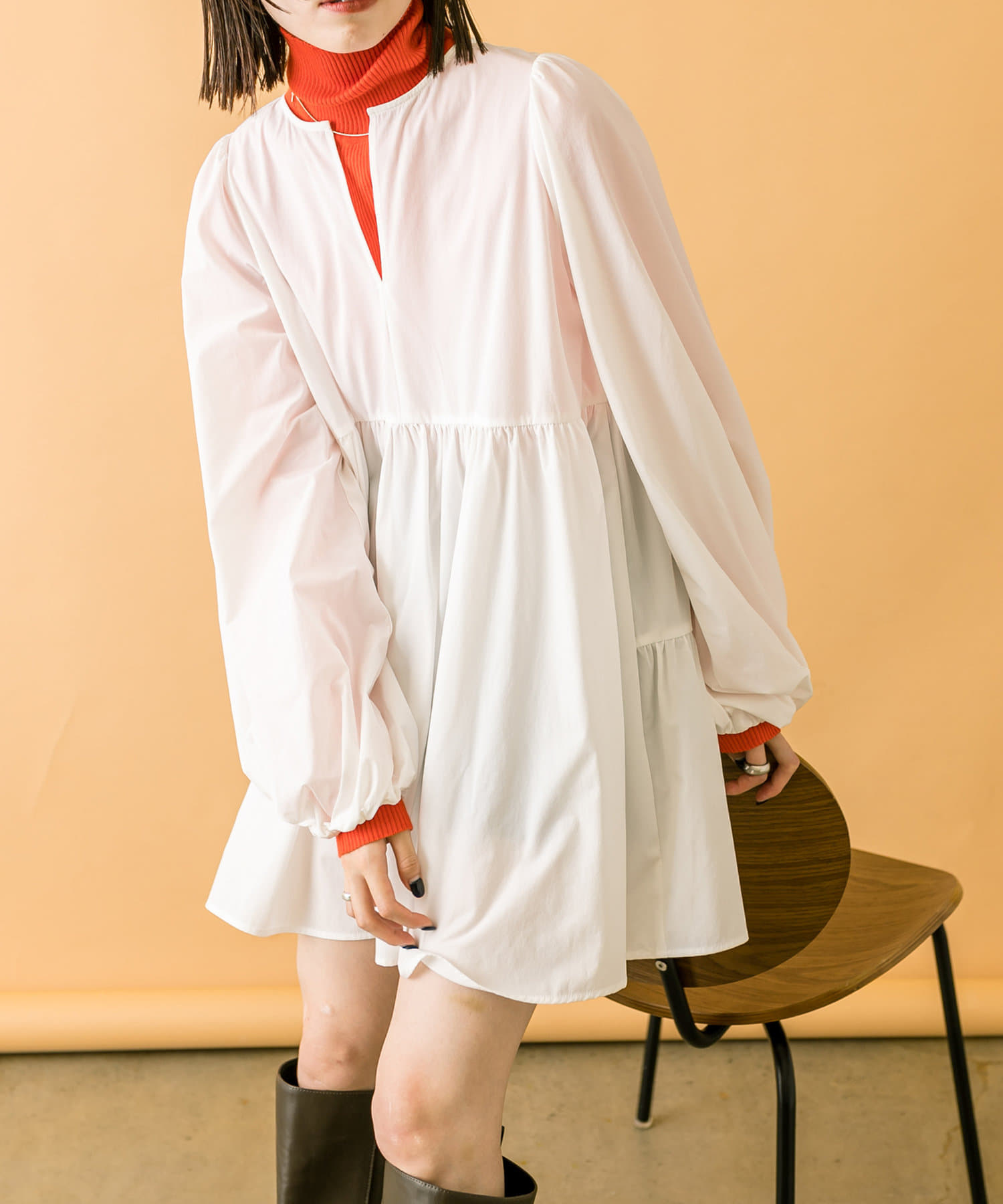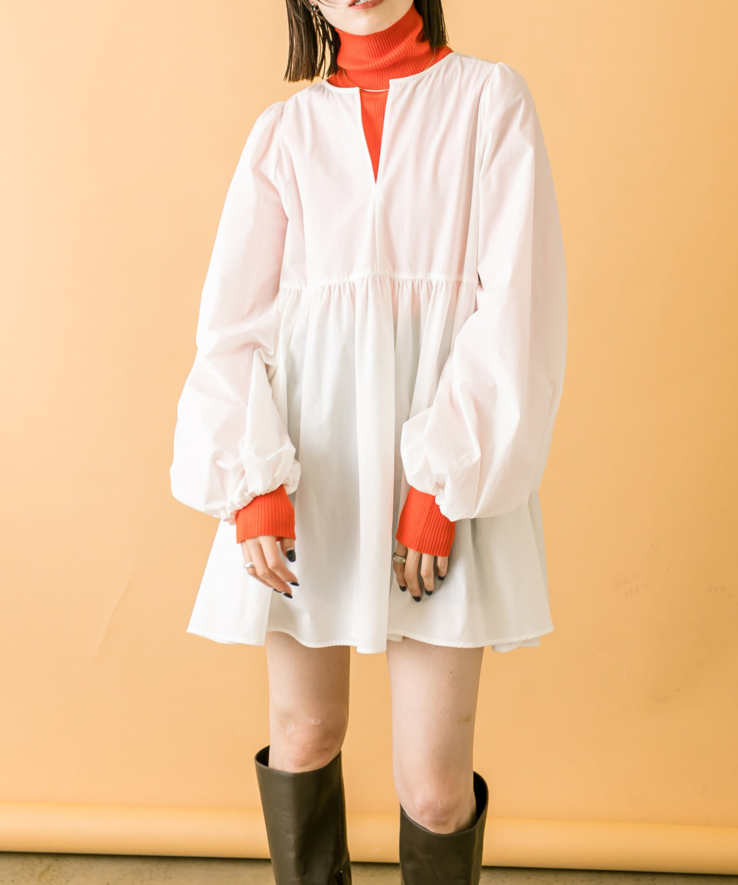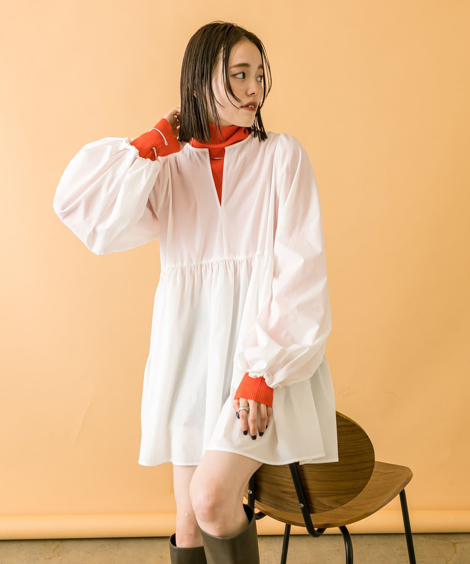 ブラウスとミニワンピのセットでワントーンコーデも楽しめます。