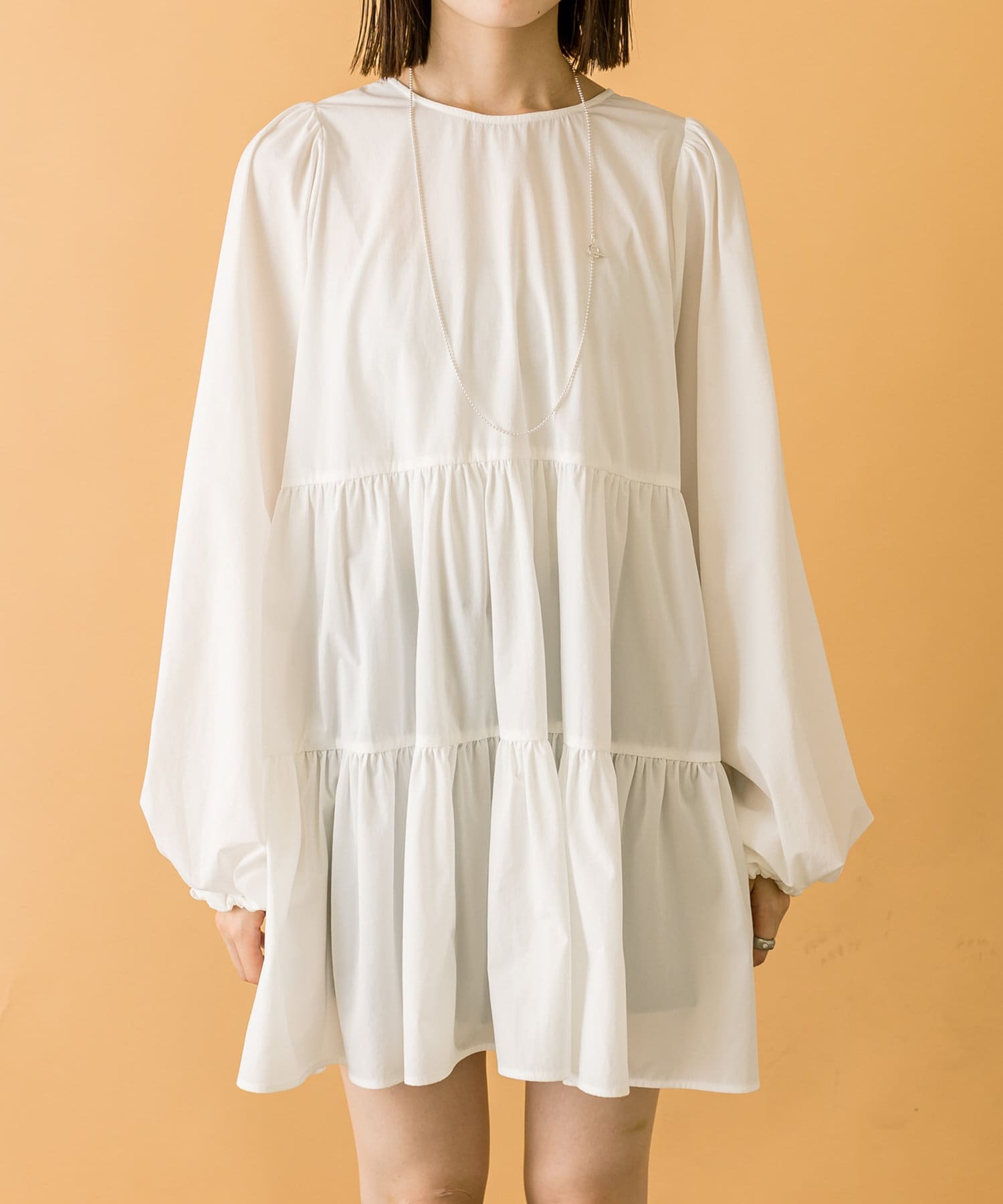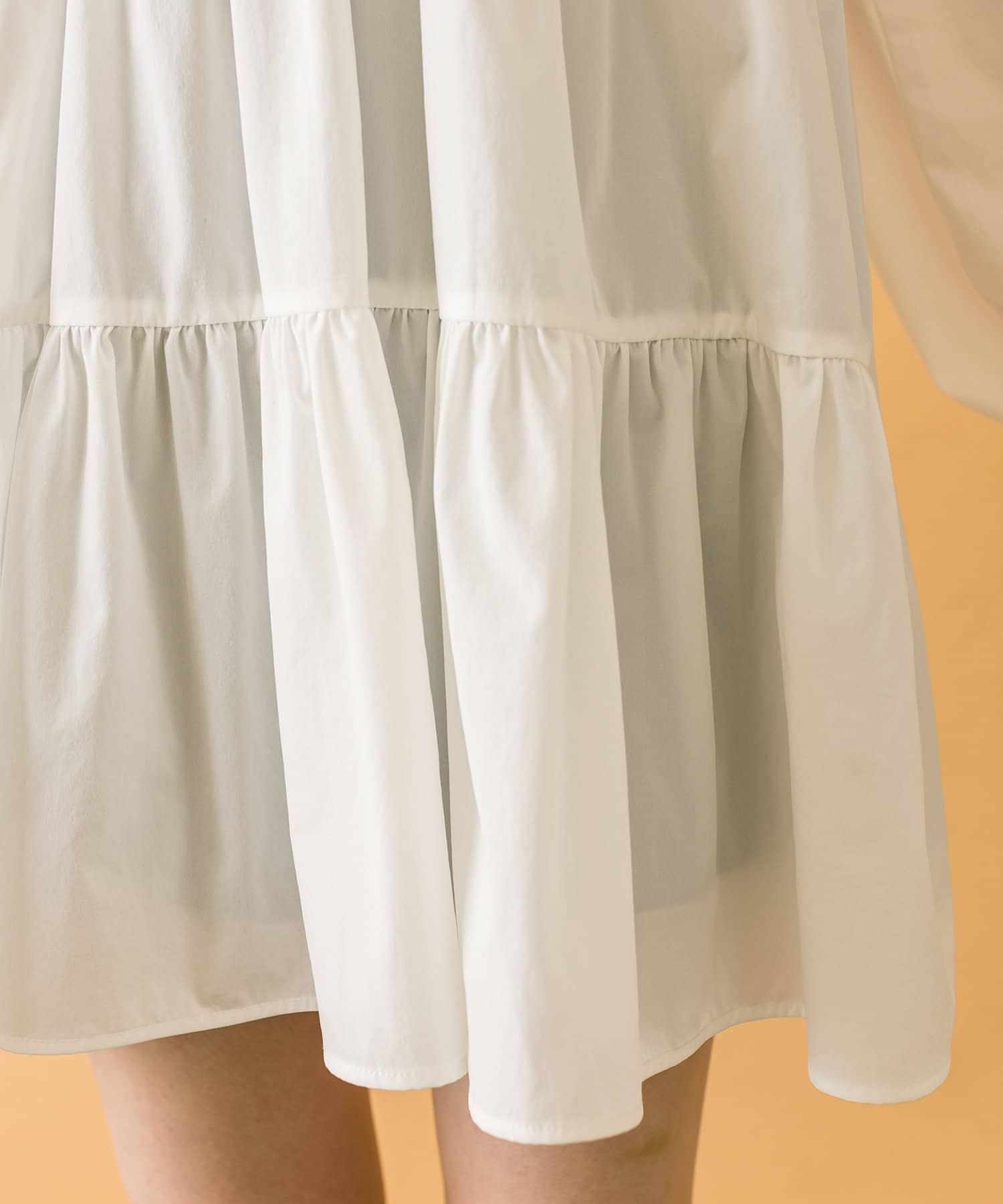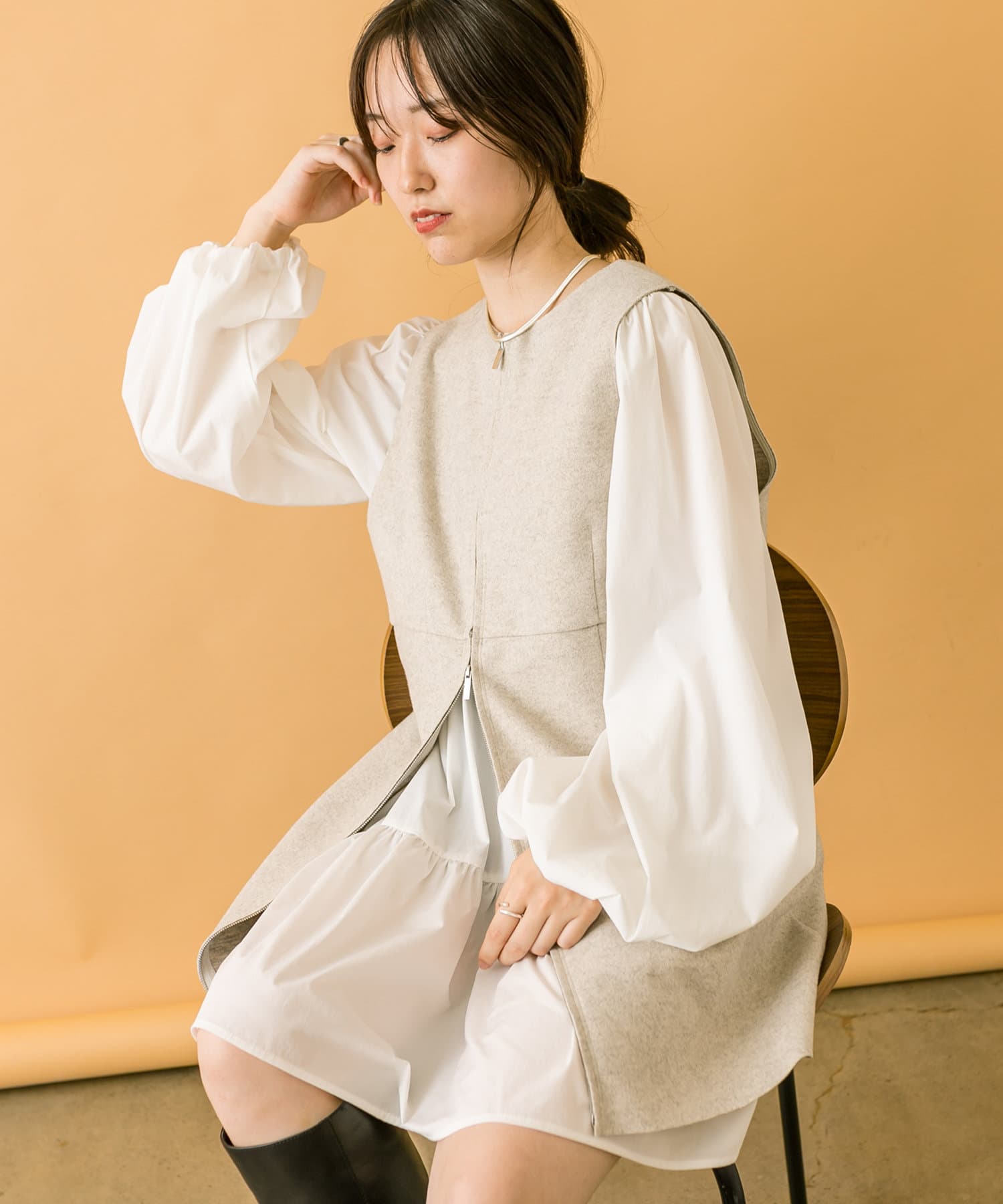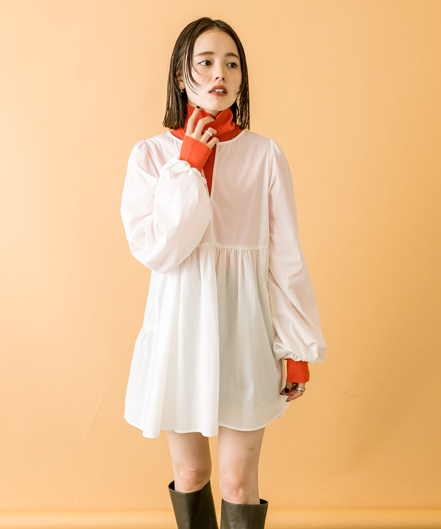 ブラウスとミニワンピのセットでワントーンコーデも楽しめます。