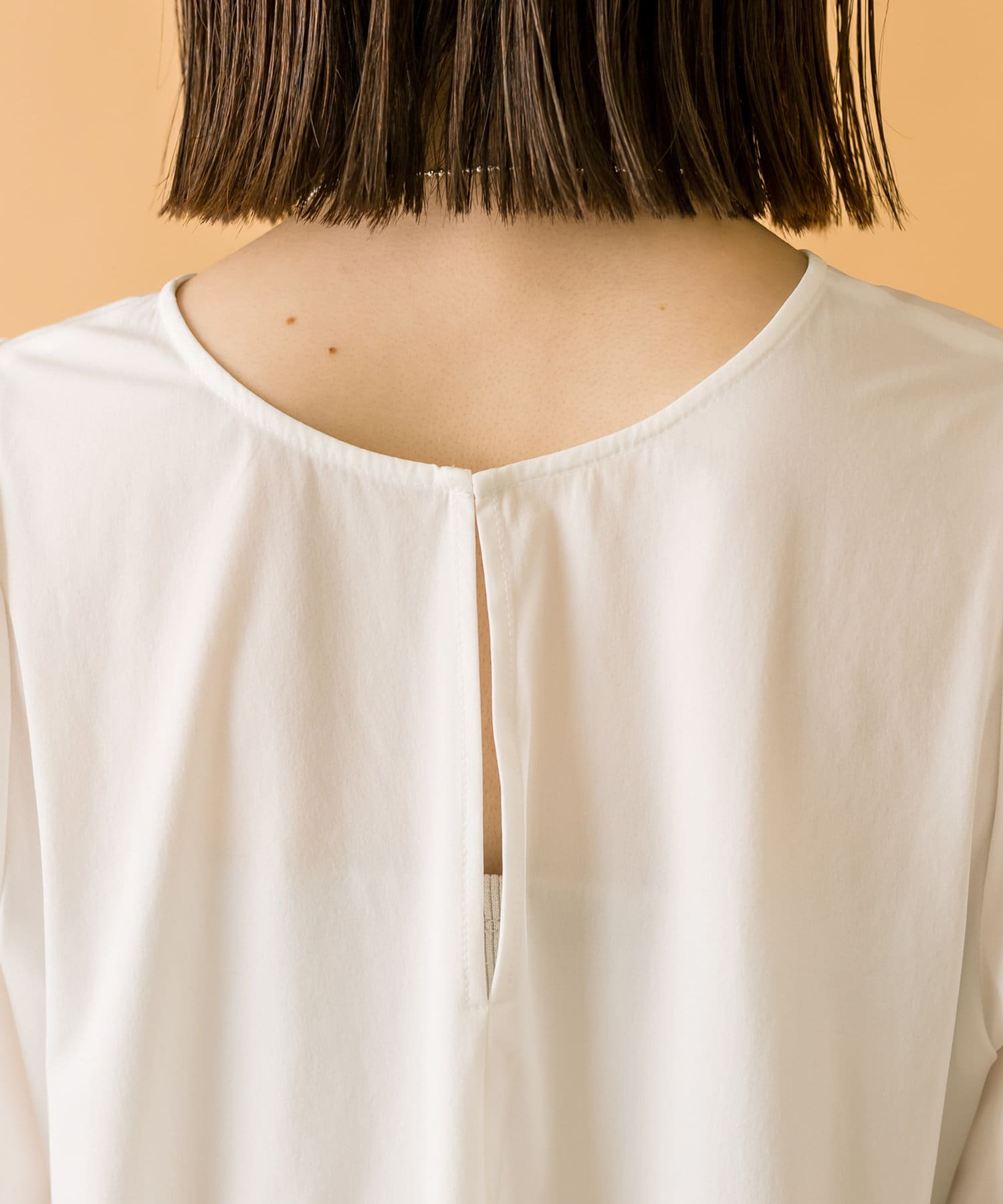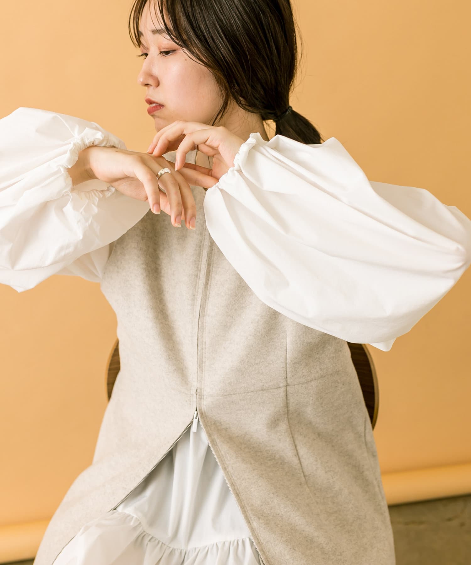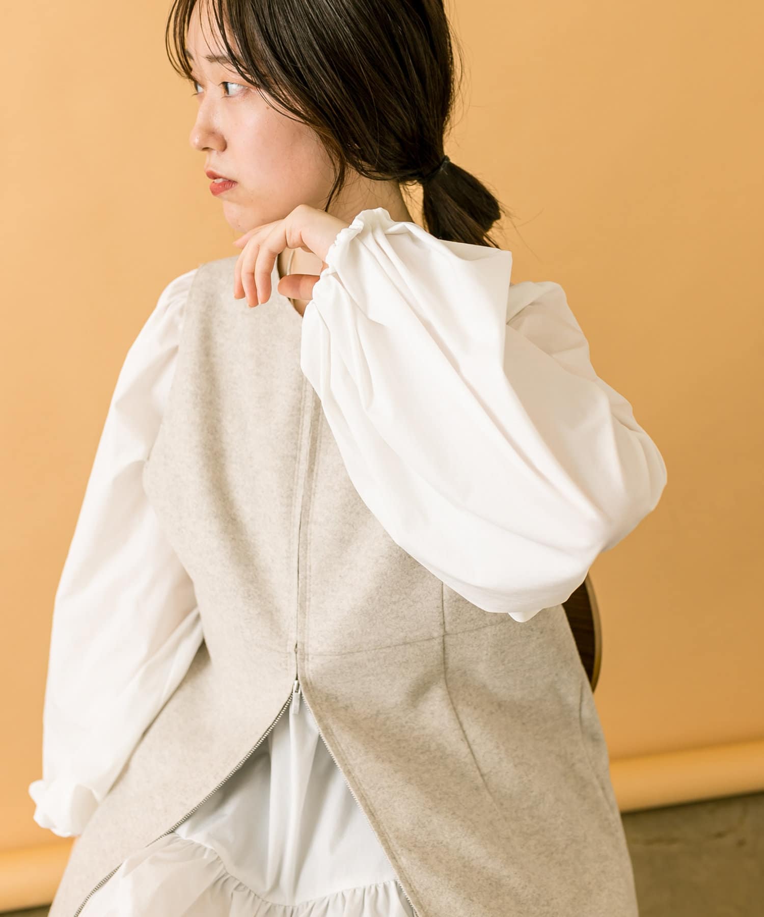 ブラウスの中にニットを着込むことで、女性らしいスタイリングのワンポイントに◎