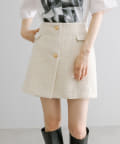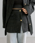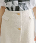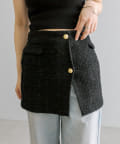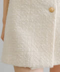 高級感あるツイード素材とゴールドボタンが目を惹くラップスカート