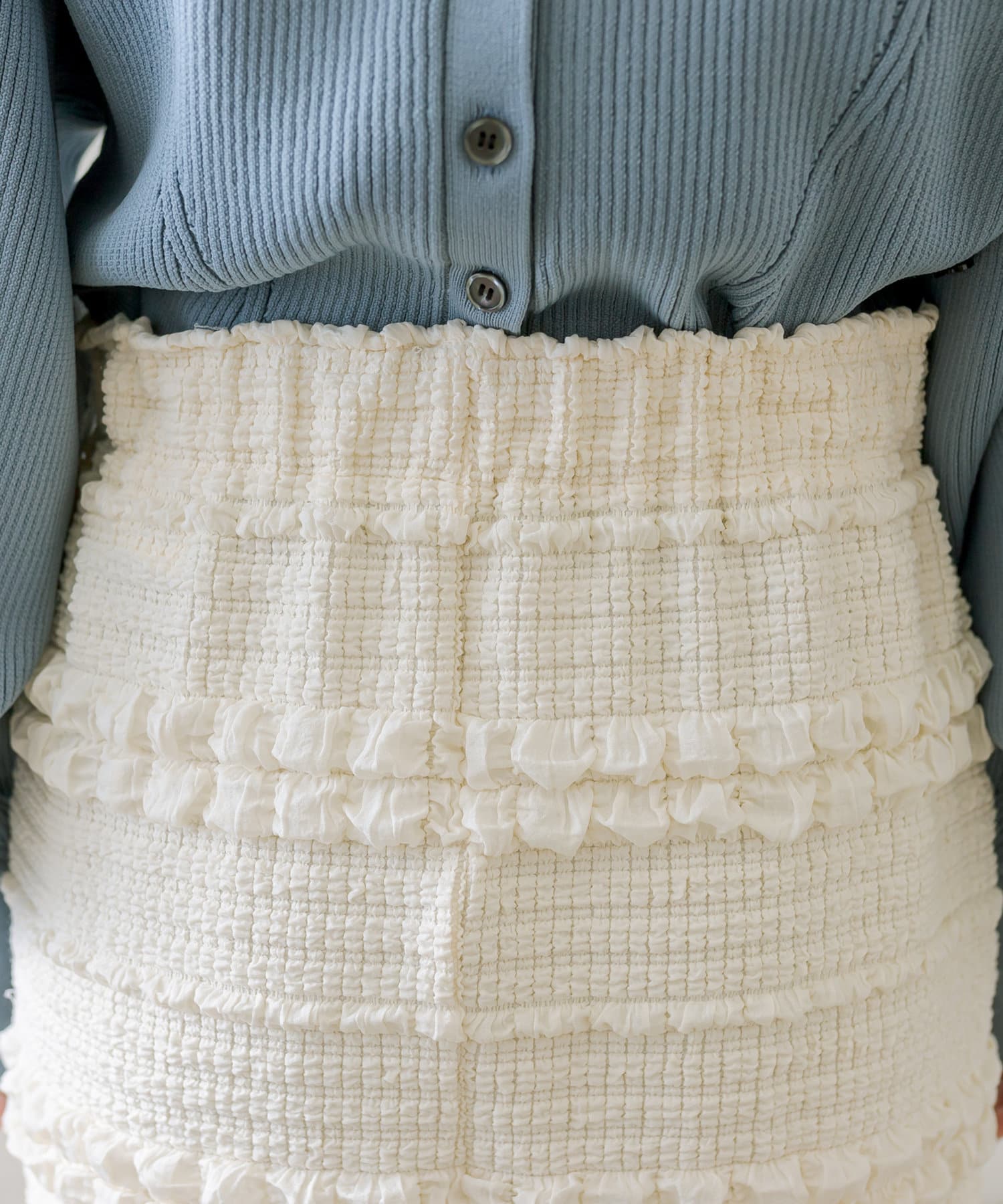 ほかブランドでも似たようなスカートが多く出ていますが、mysticさんのデザインは他にはなく、フリルとは違うので大人可愛いです。