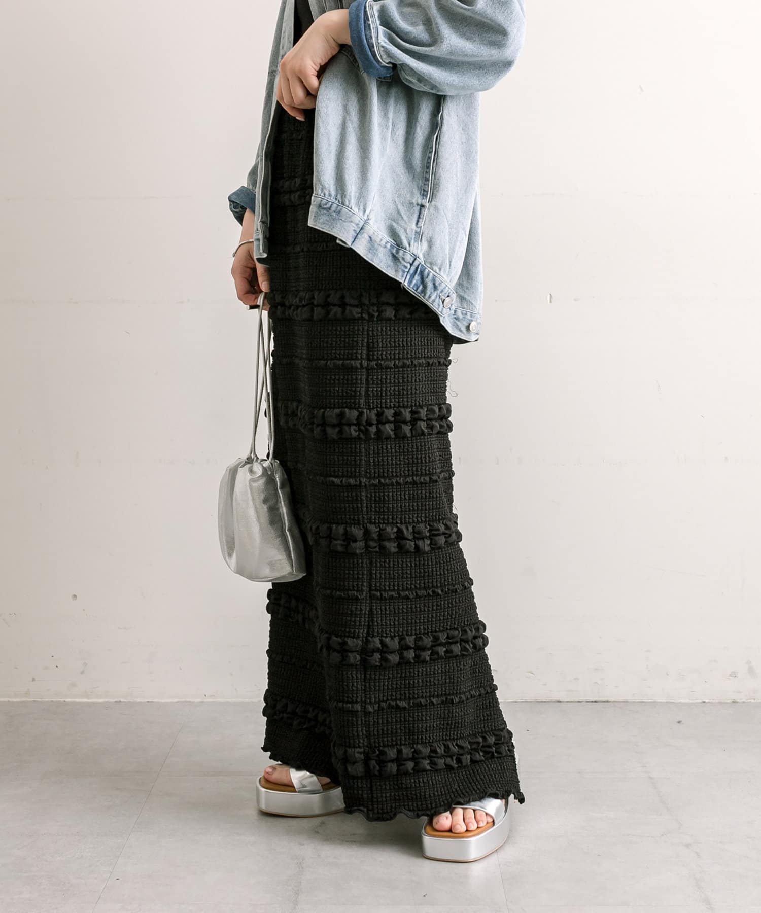 特に、デザイン性のあるボトムスだと下半身が大きく見えがちなのですが、気にせず履くことができて嬉しいです!