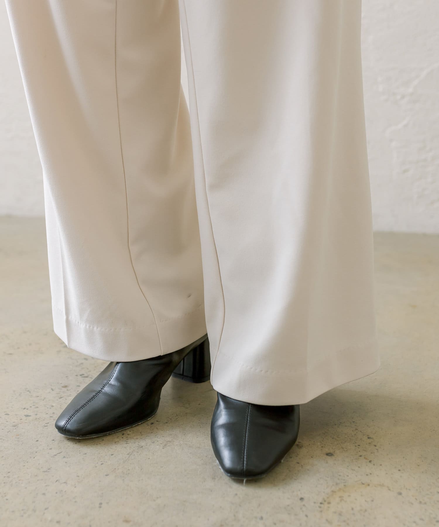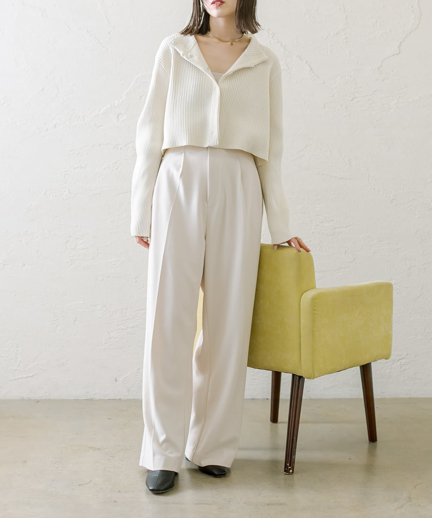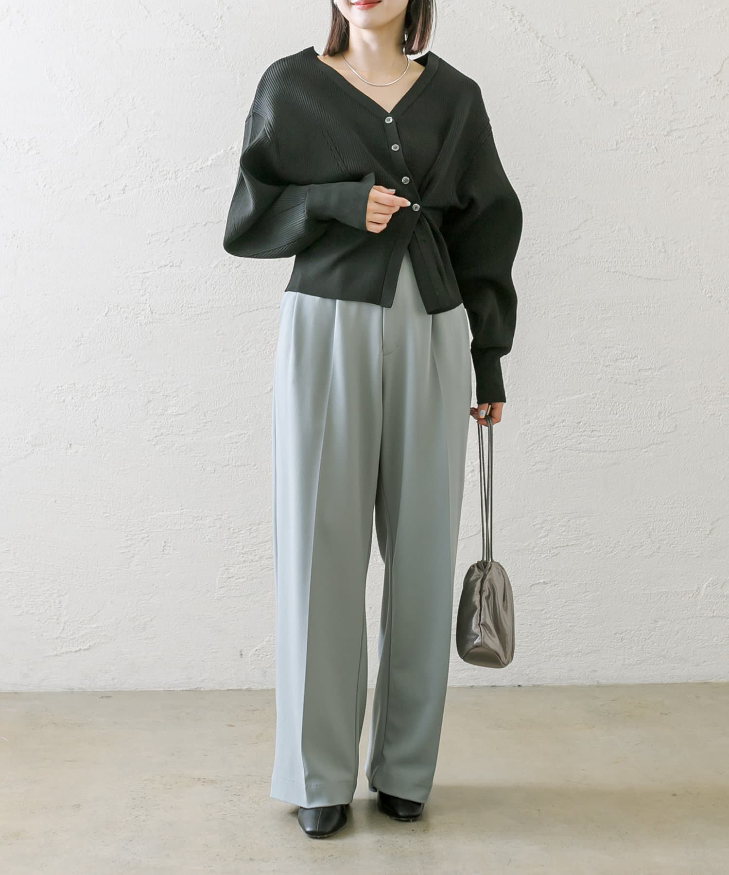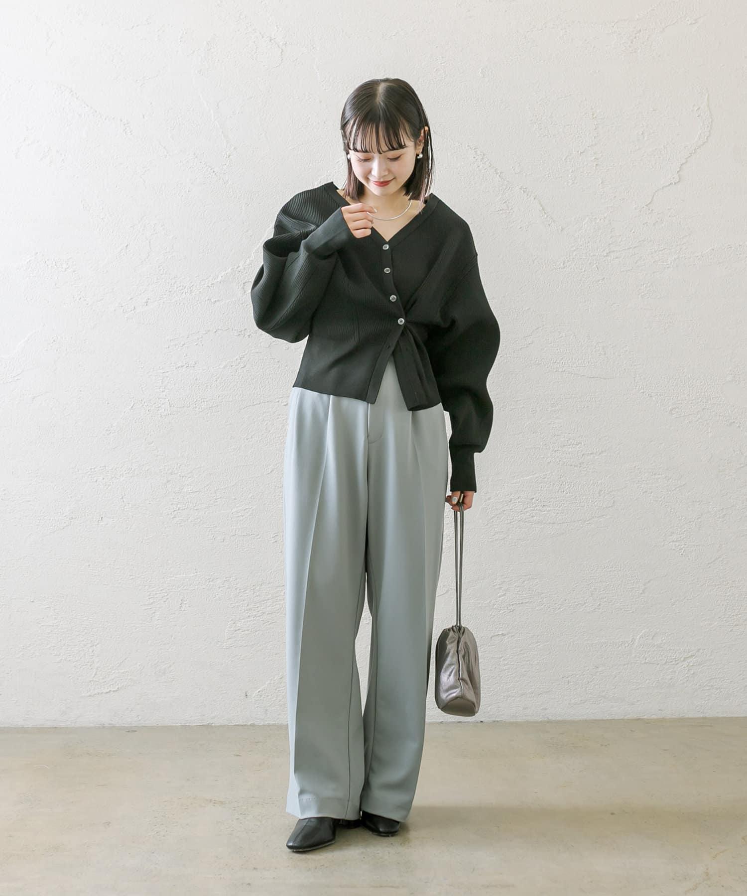 ・カジュアルな印象になりやすい素材感なのでパンプスやブーツでバランスよく見えます。
