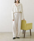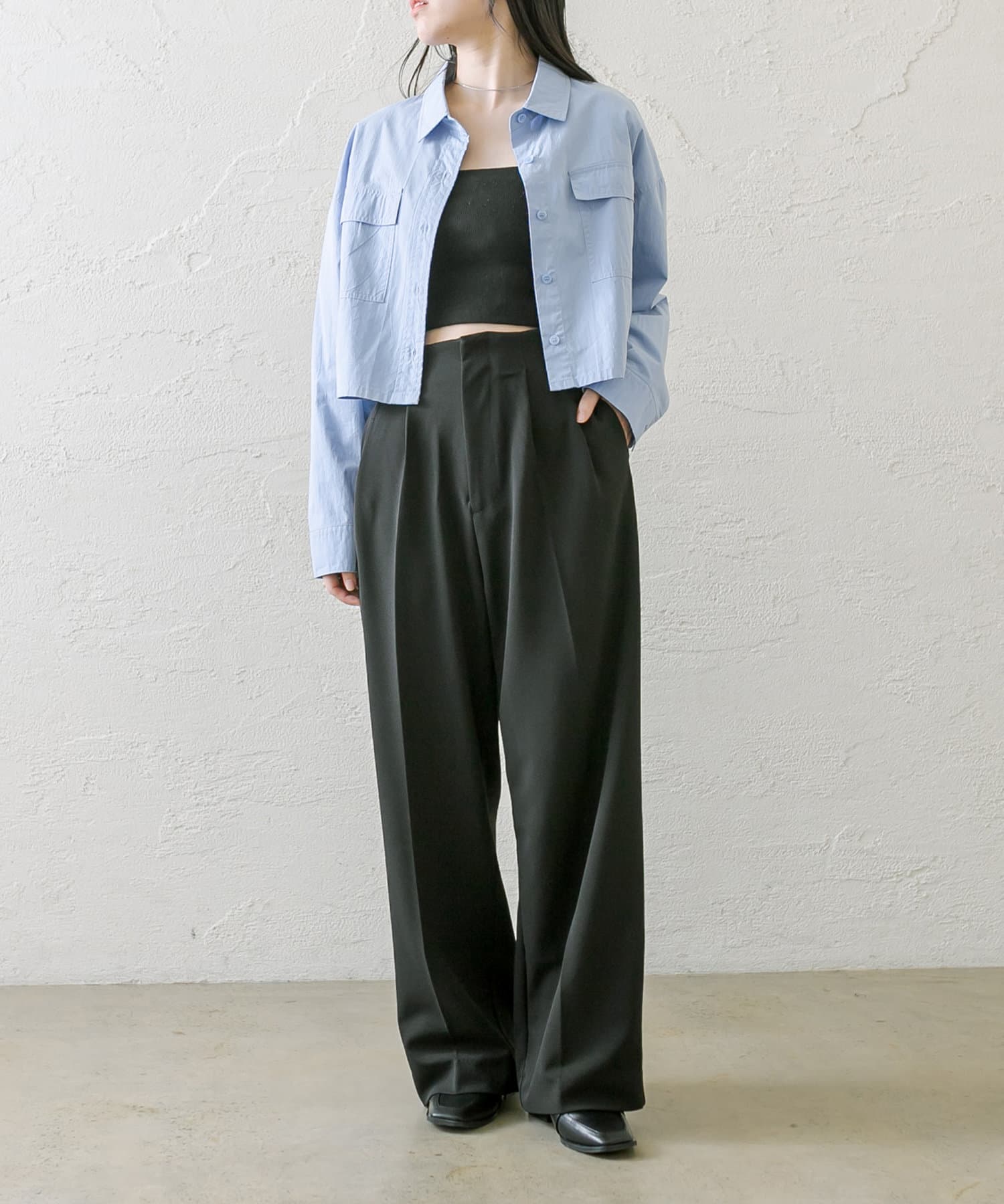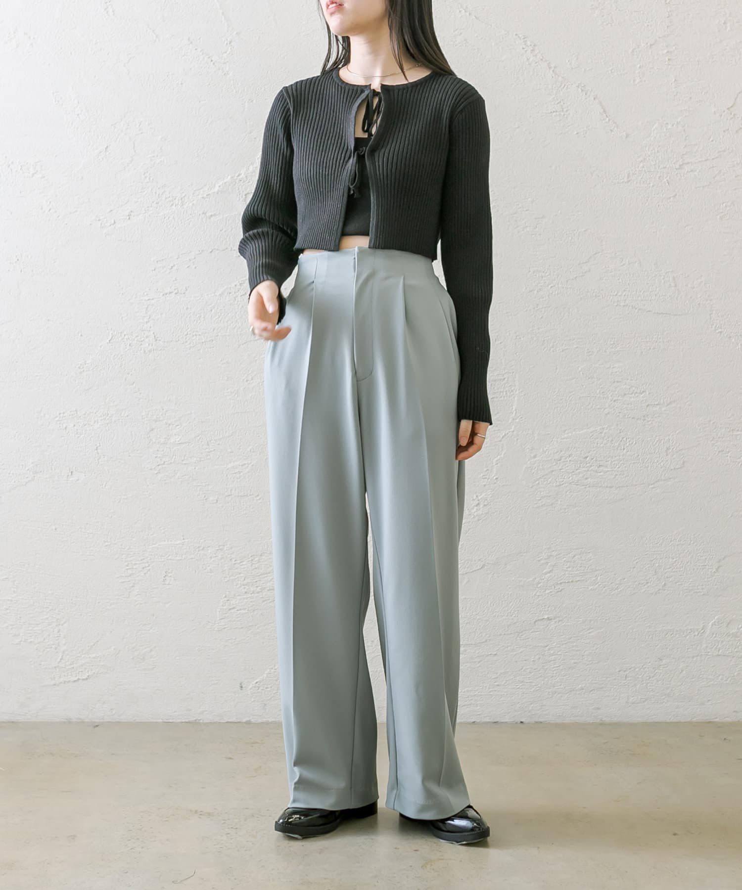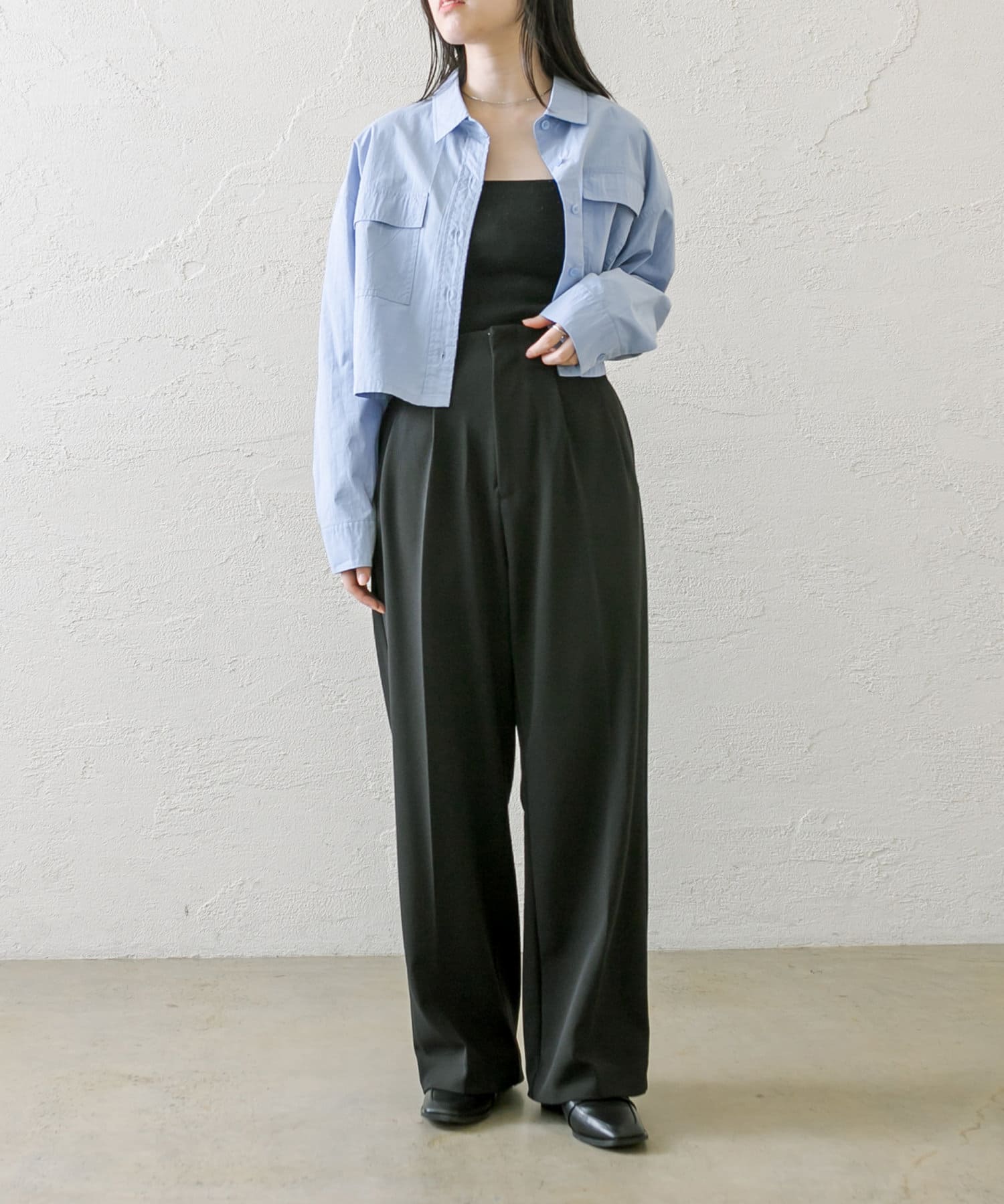 ・カジュアルな印象になりやすい素材感なのでパンプスやブーツでバランスよく見えます。