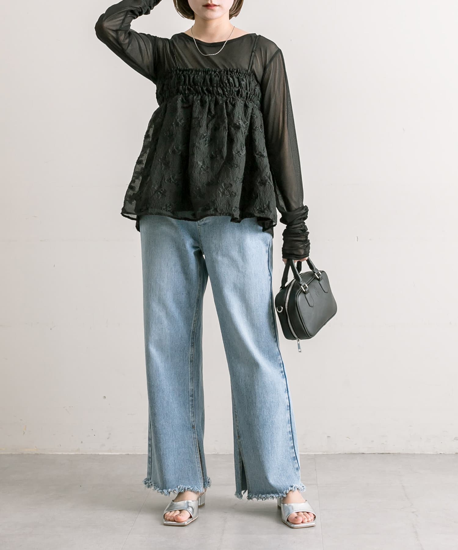 【サイズ展開あり】[mline]ストレートフリンジデニム