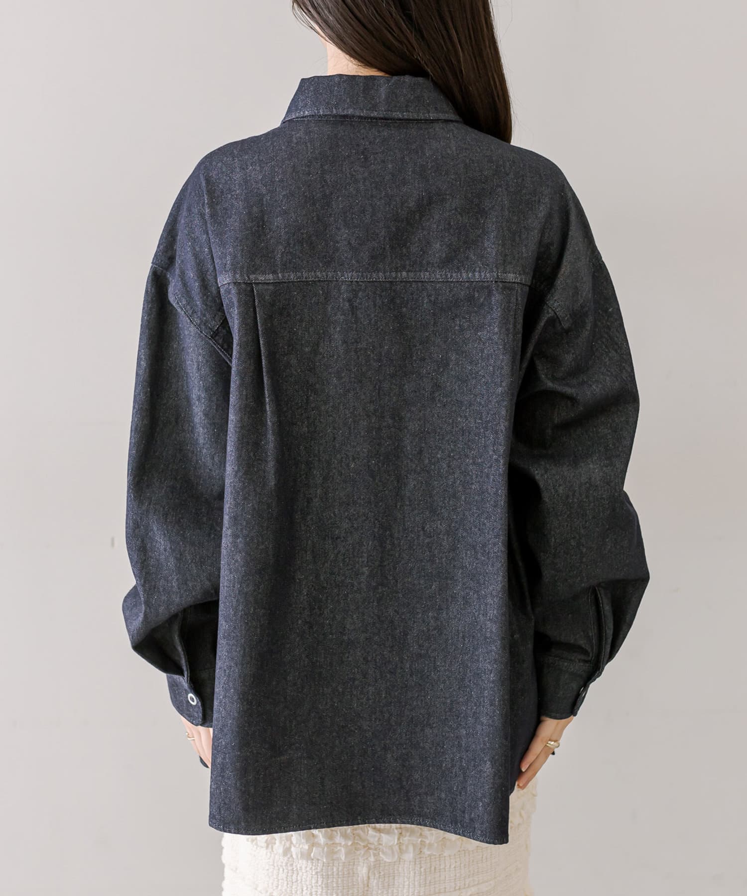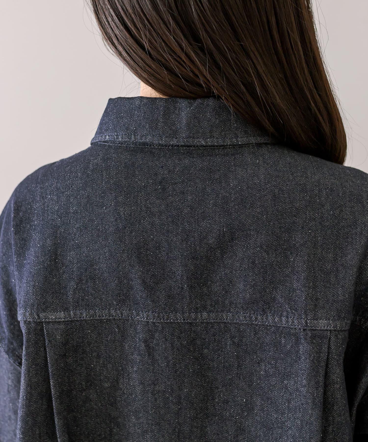 ・シンプルなデザインでたくさん着回しできるデニム素材のシャツ。