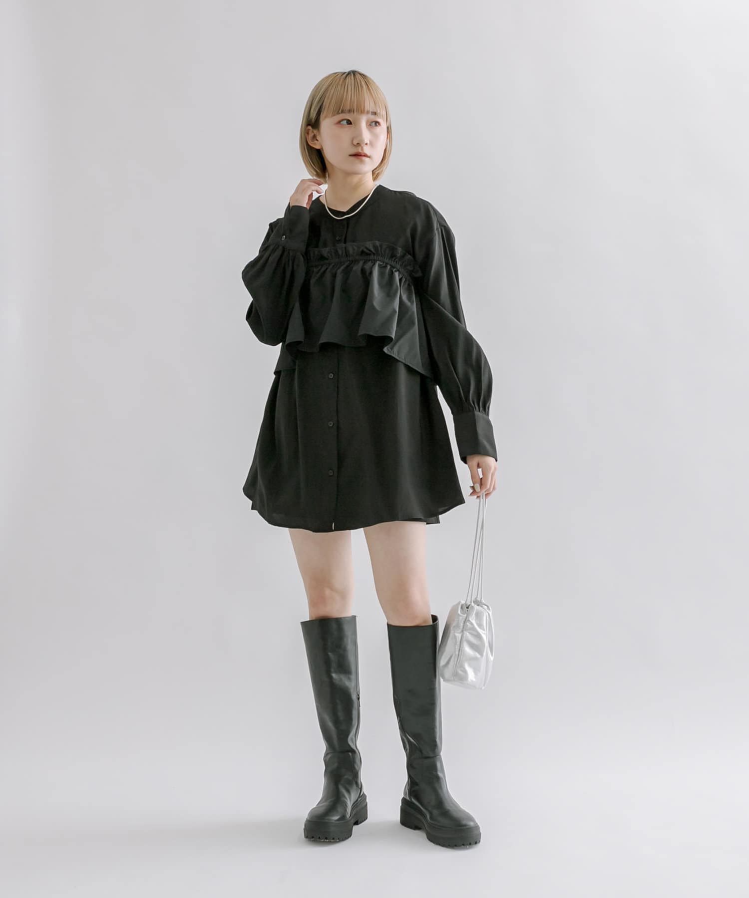 ・トレンドライクなマルチフリルが付いた目を惹くデザイン。