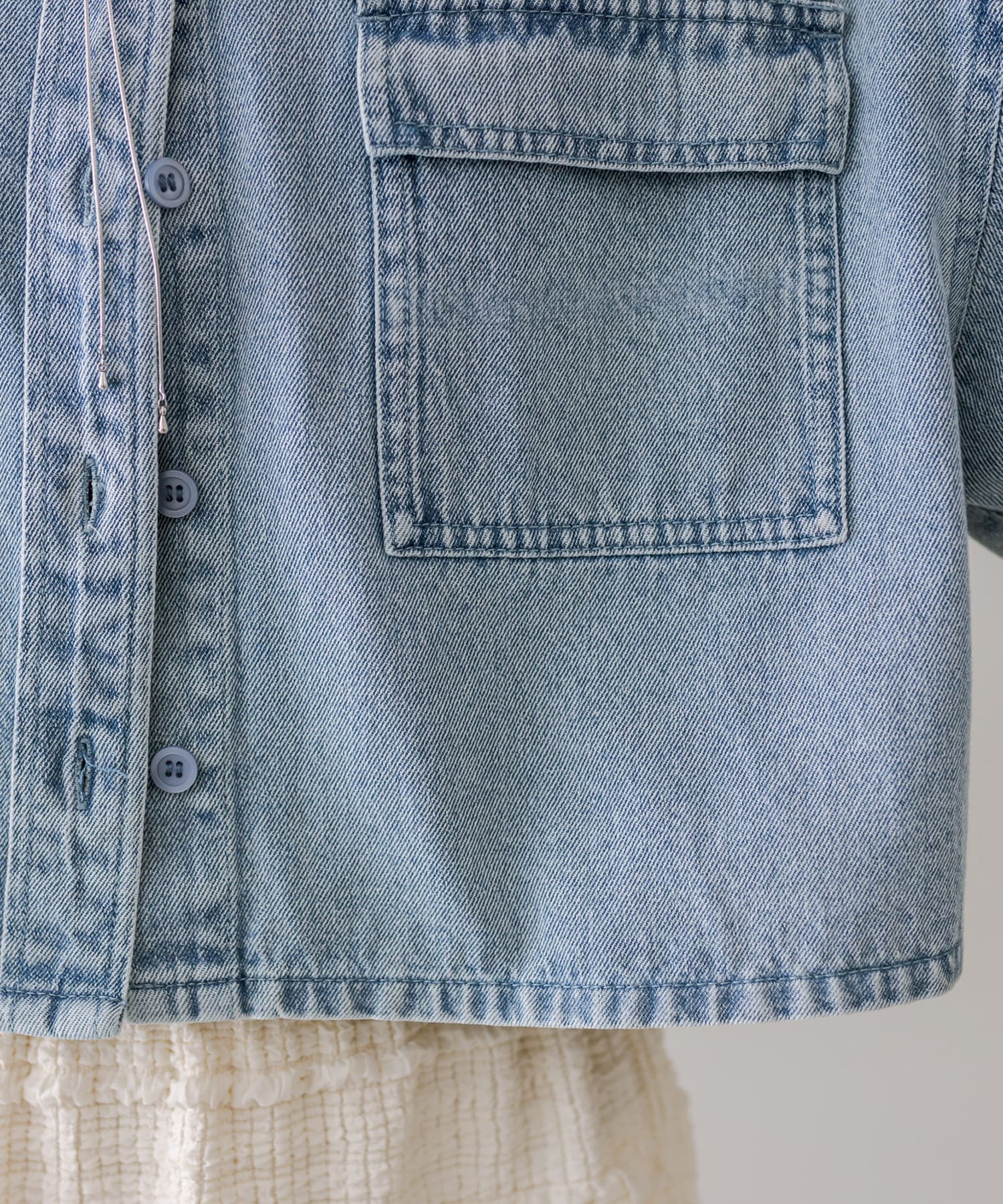 ・短丈のシャツなのでハイウエストのボトムスとの相性◎