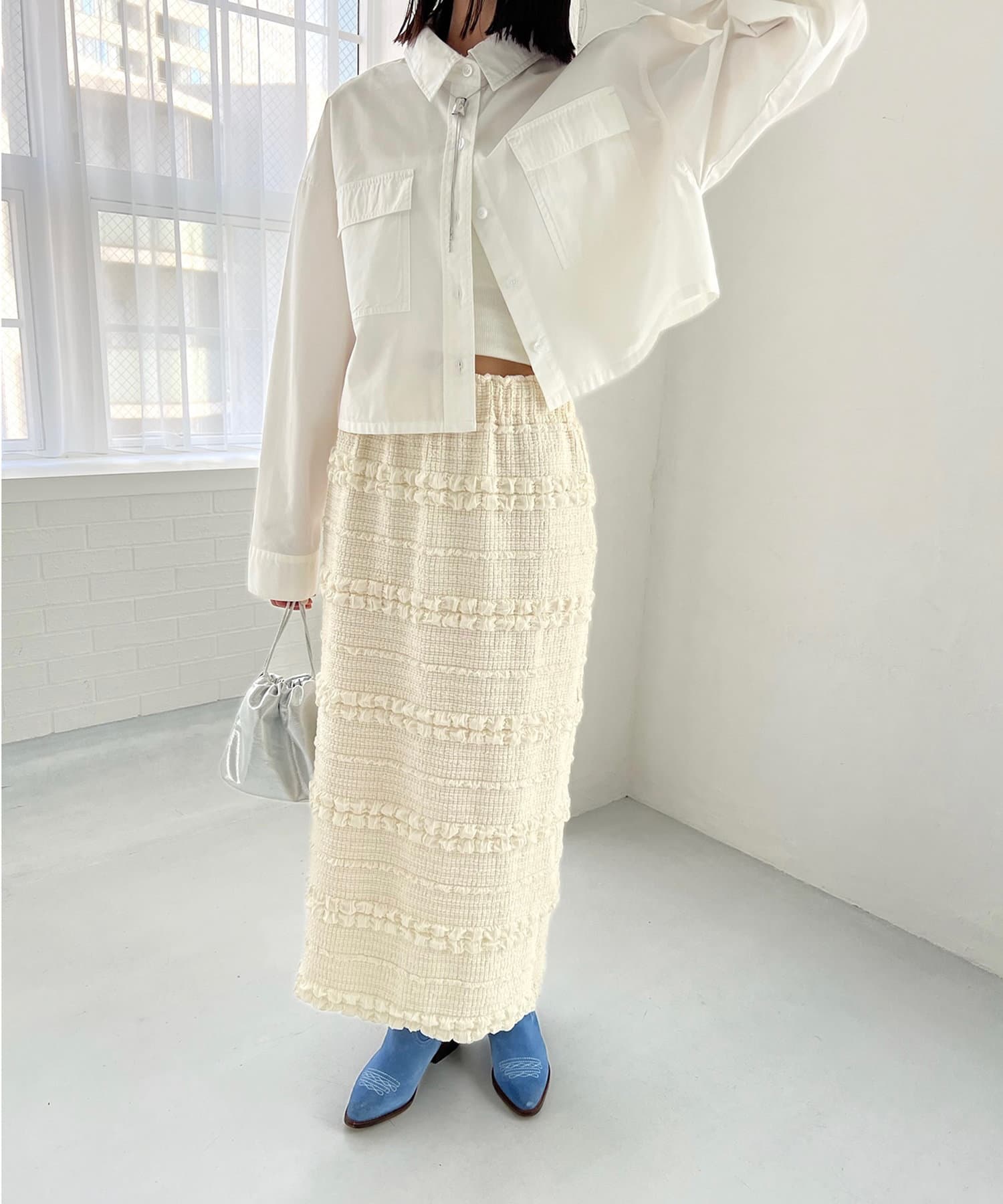 ・デニムやスラックス合わせはもちろん、綺麗めなスカート・ミニボトムとも相性良く決まります!