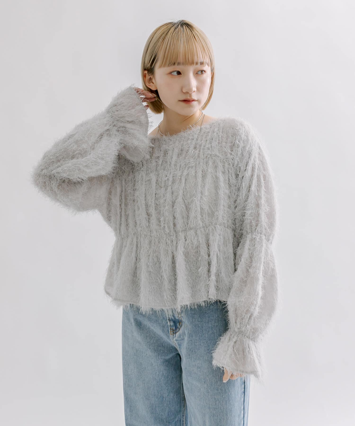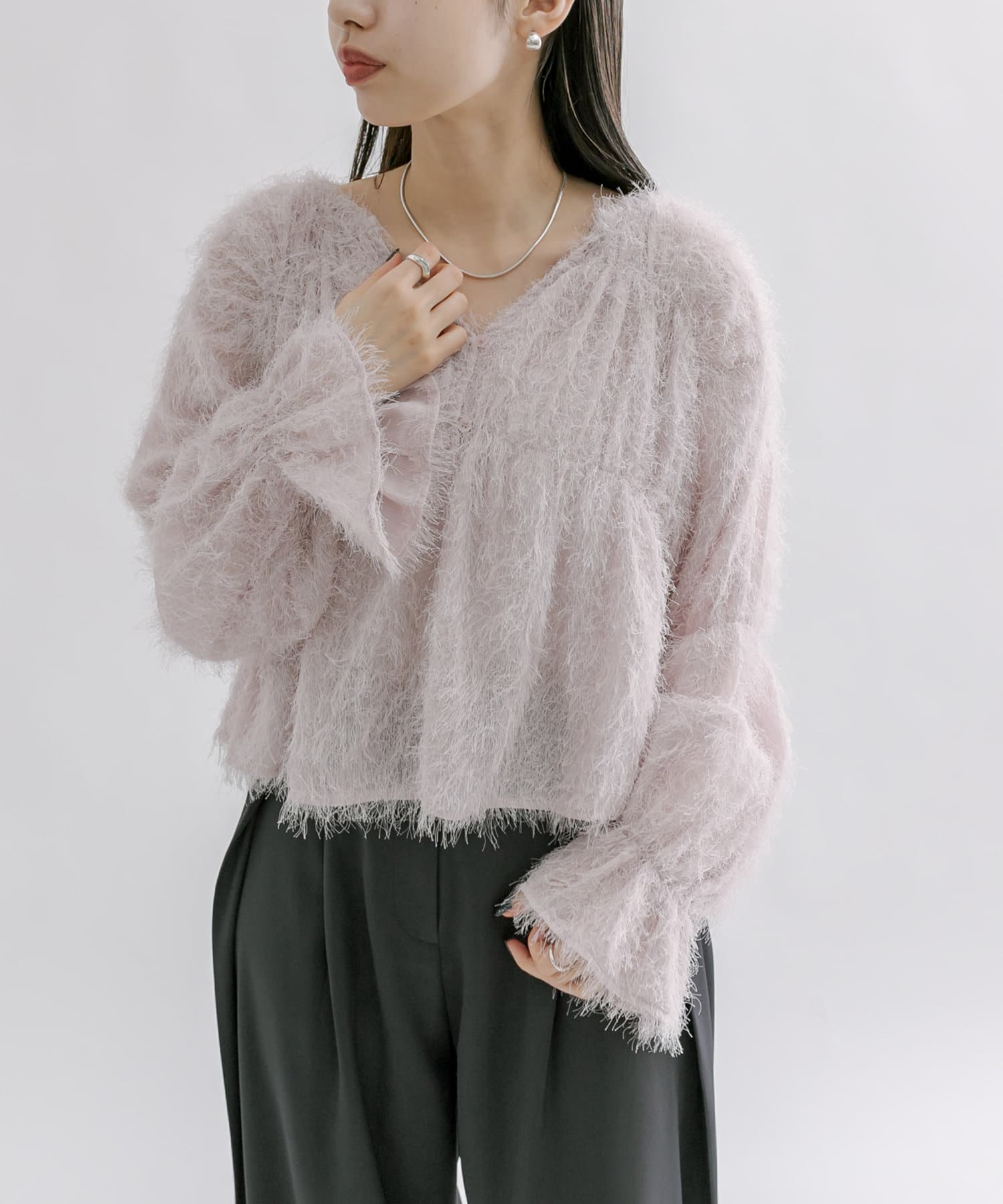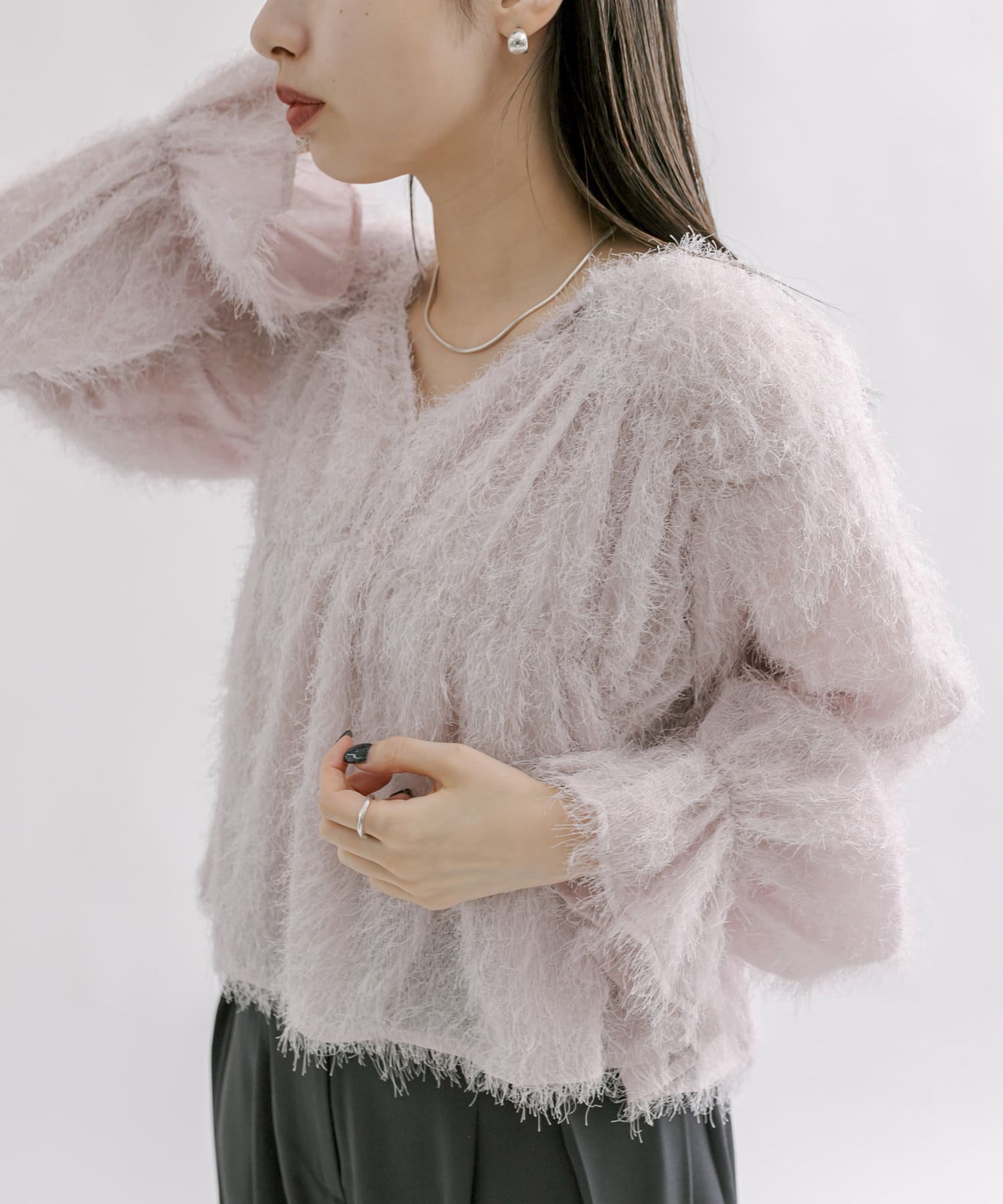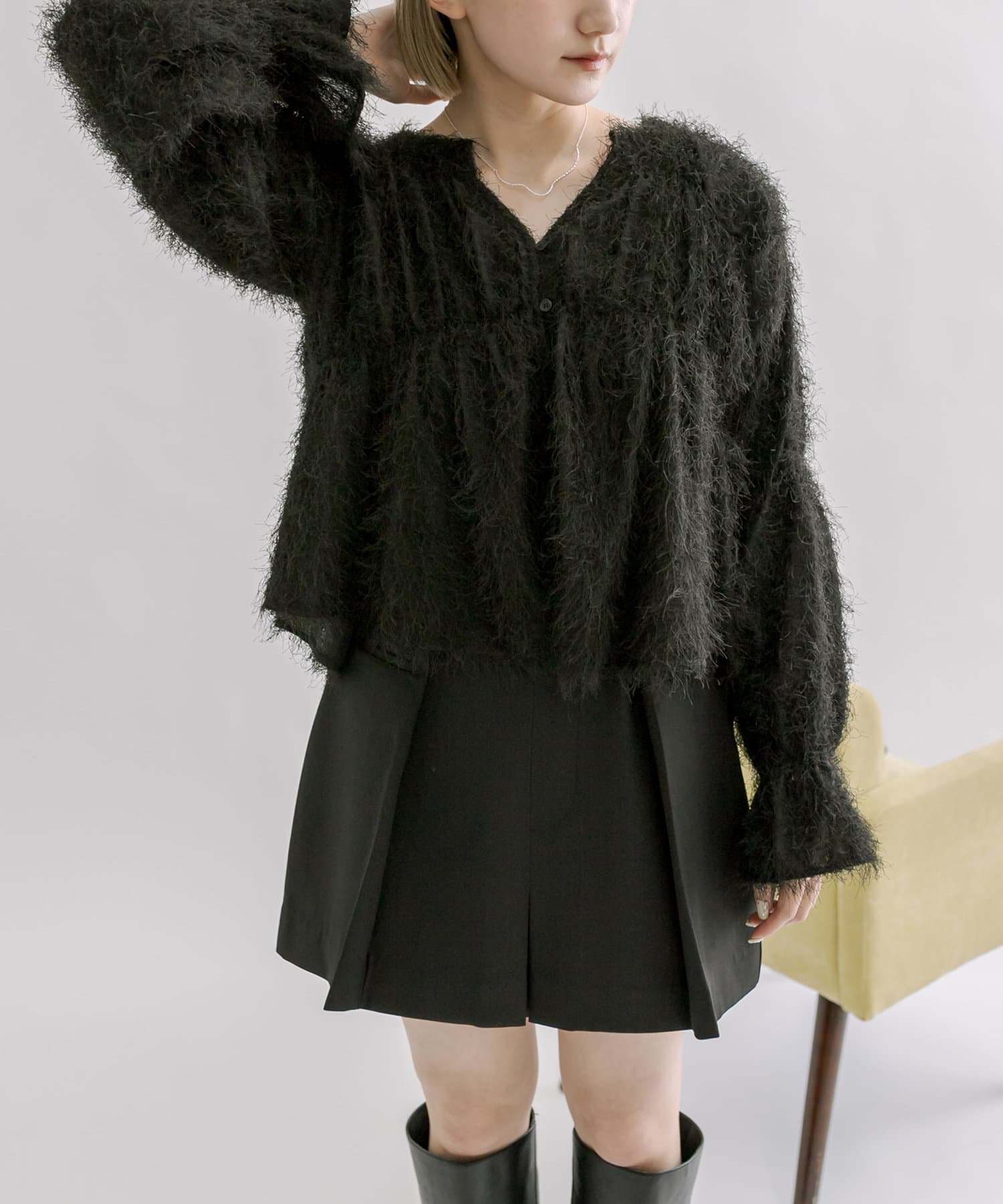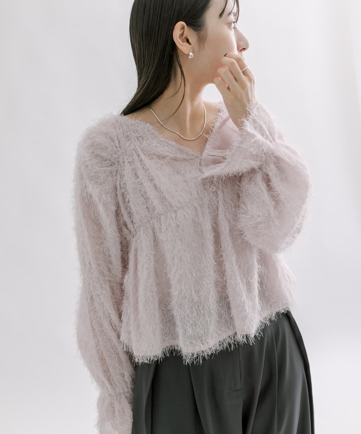 シャギー素材が一枚で華やかな印象に見せてくれるブラウスが【mline】から登場。