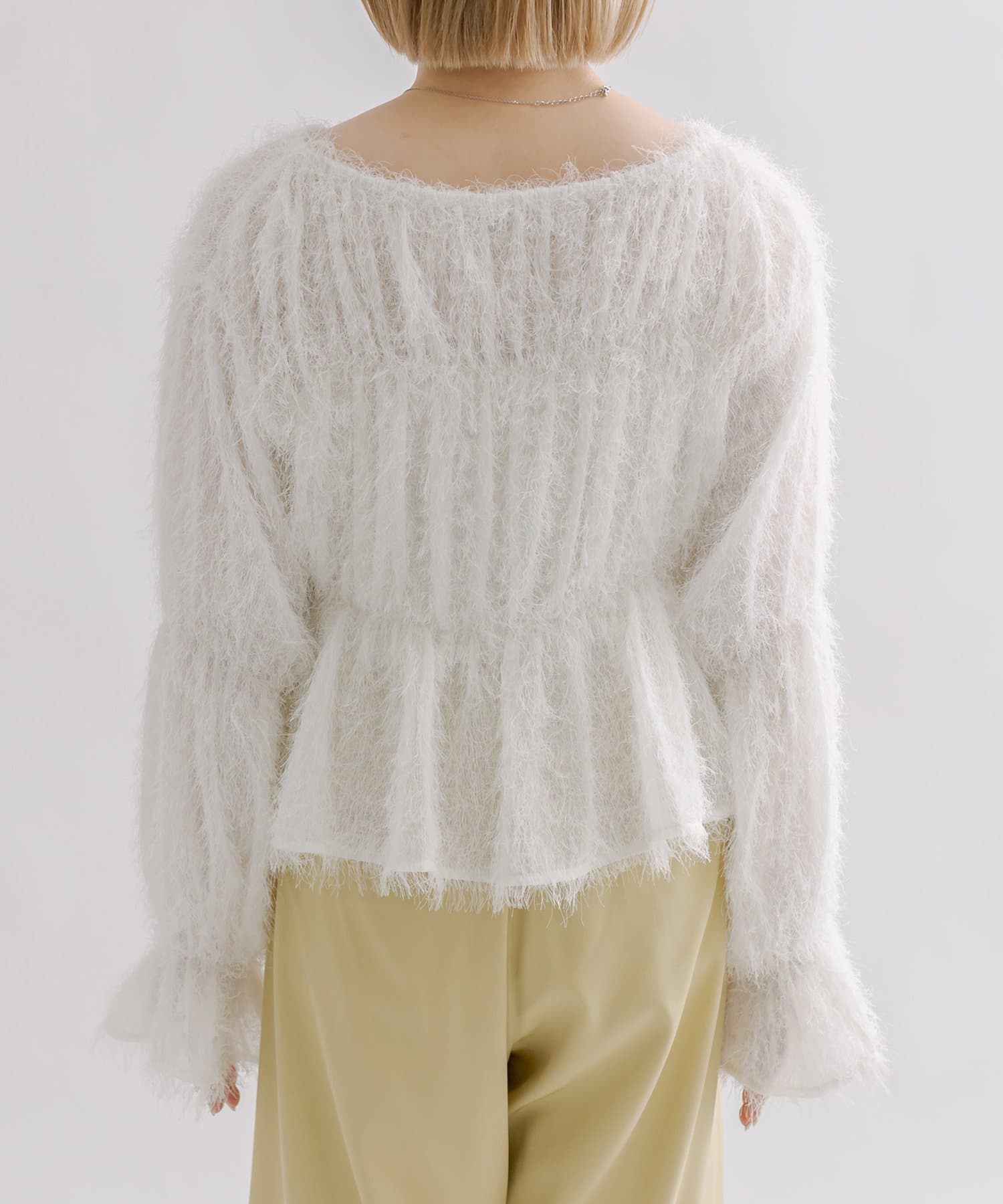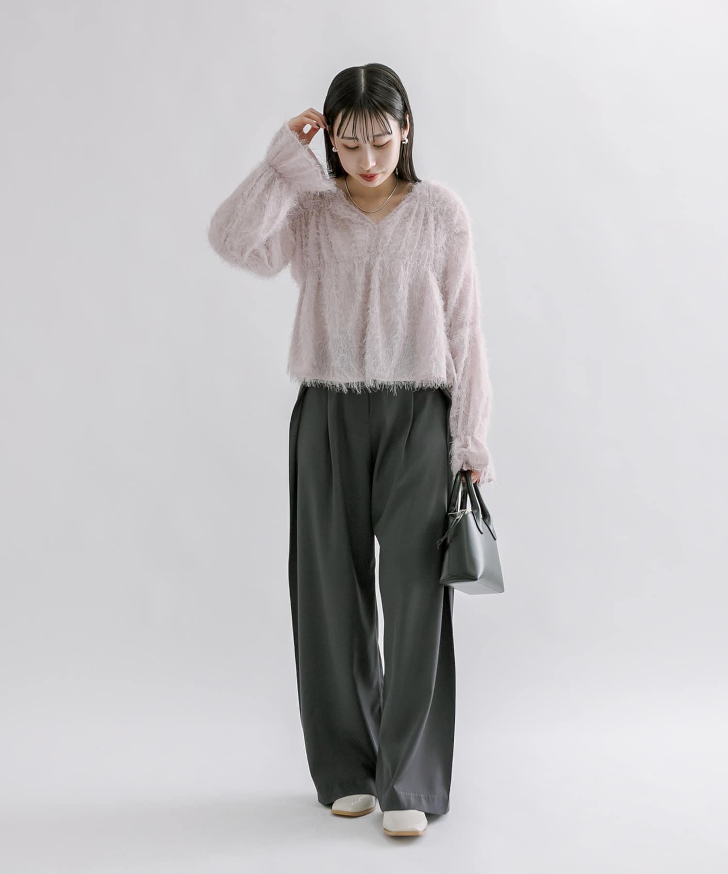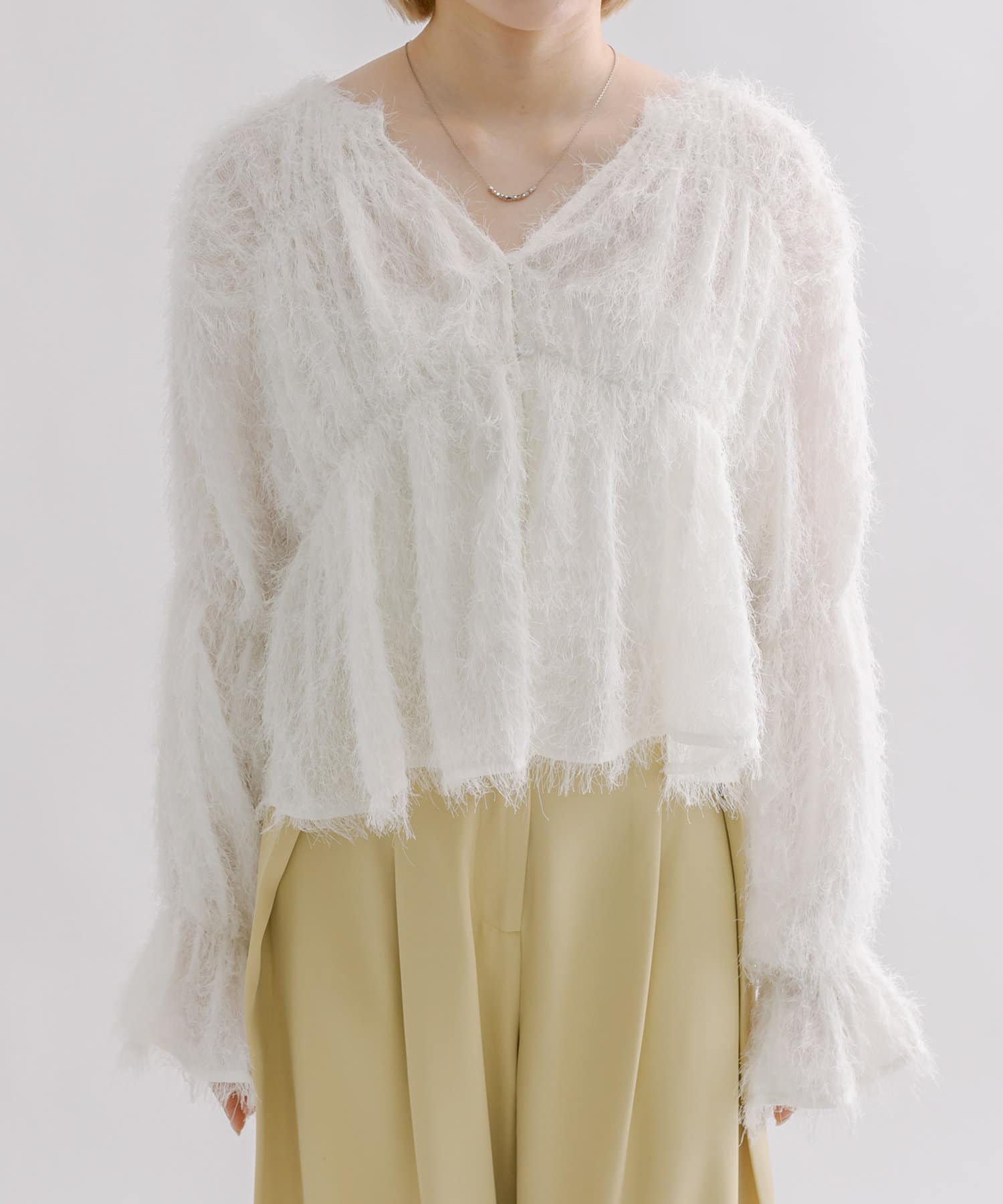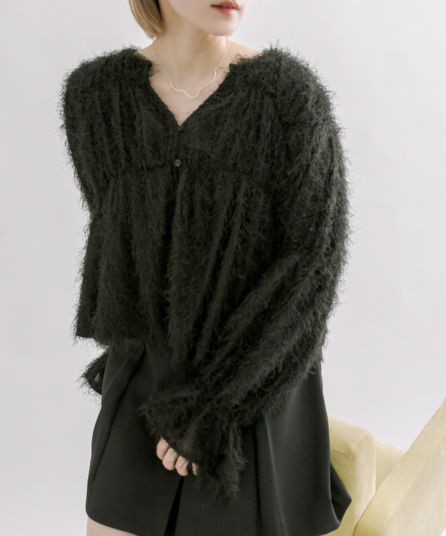 シャギー素材が一枚で華やかな印象に見せてくれるブラウスが【mline】から登場。
