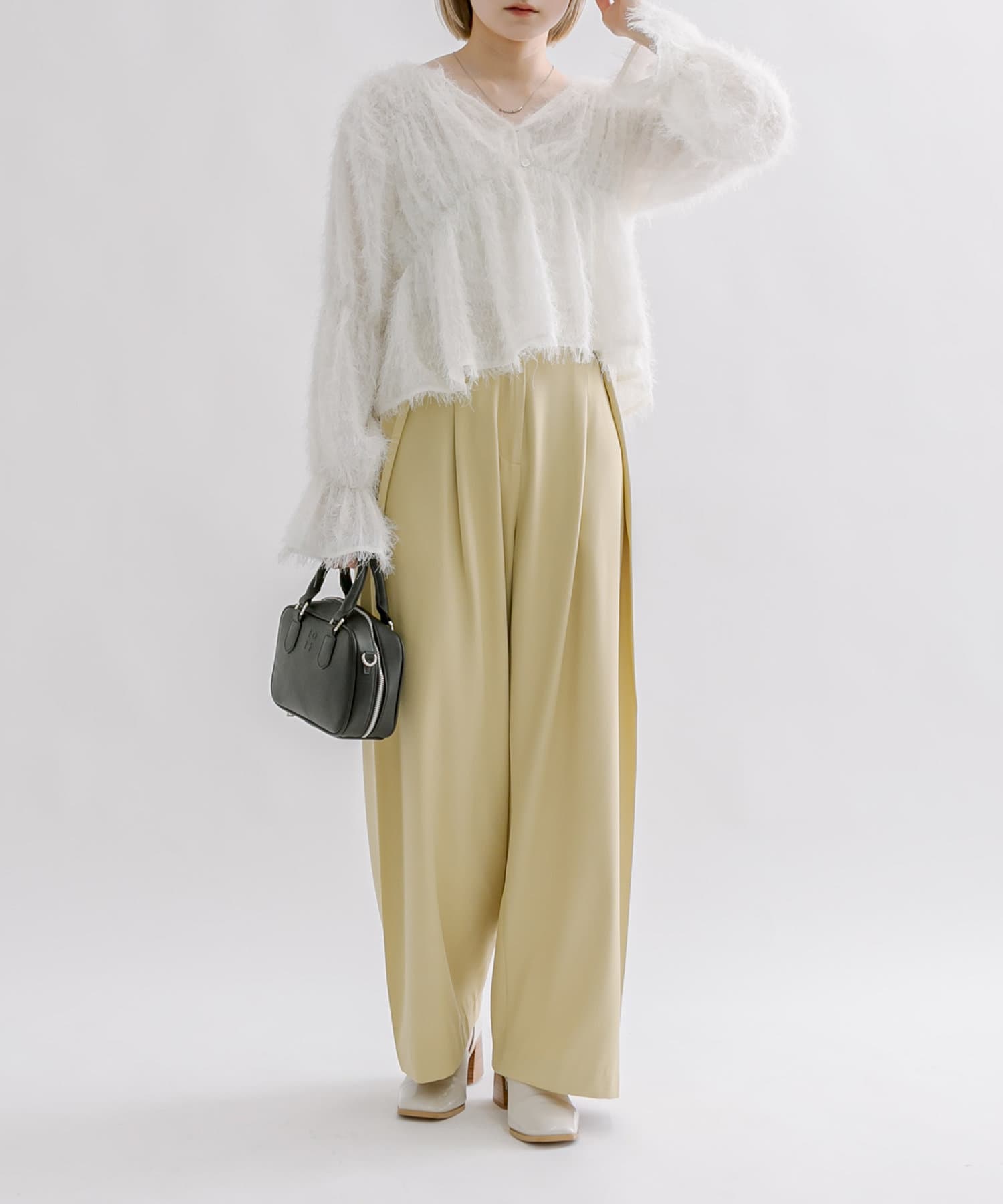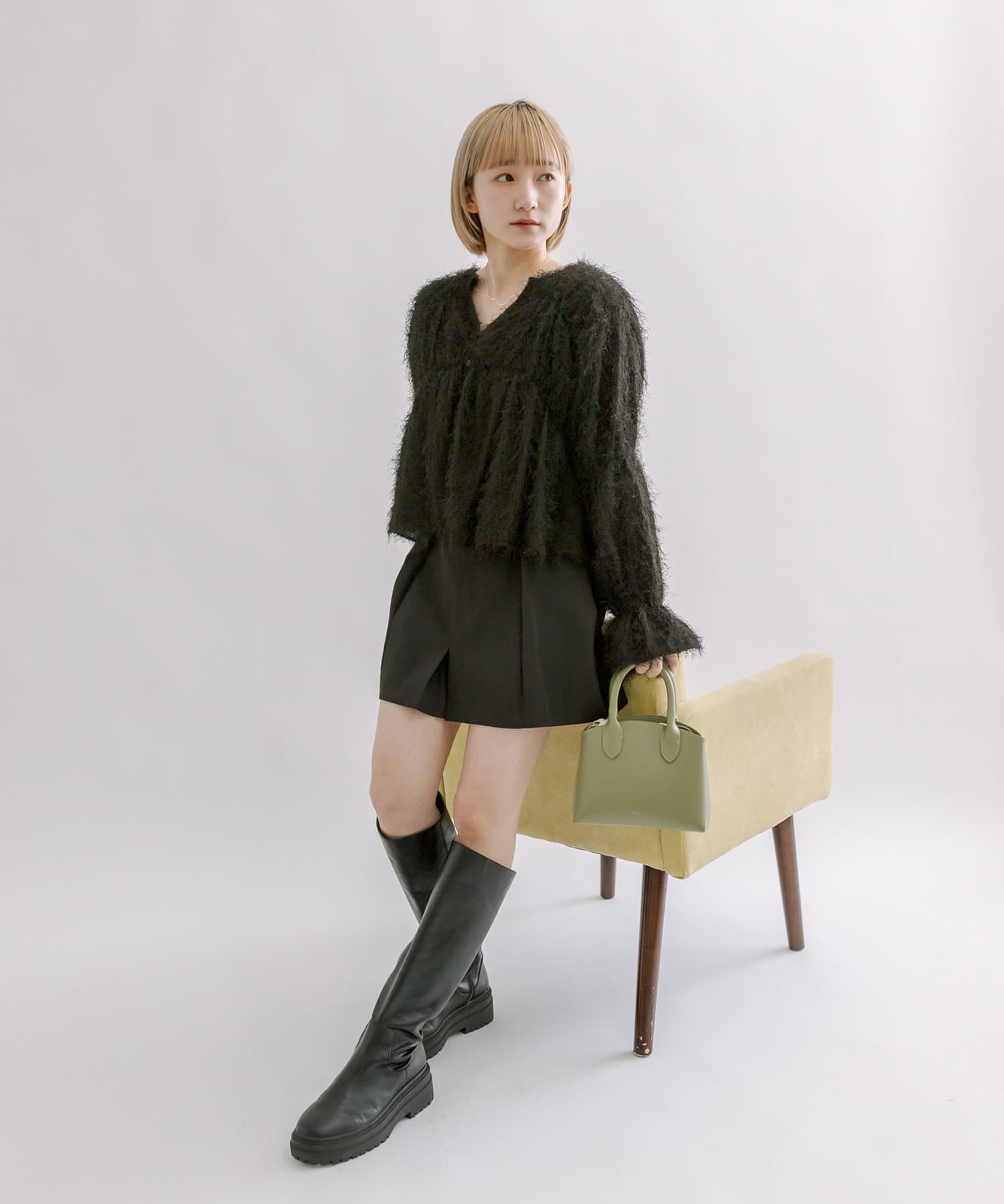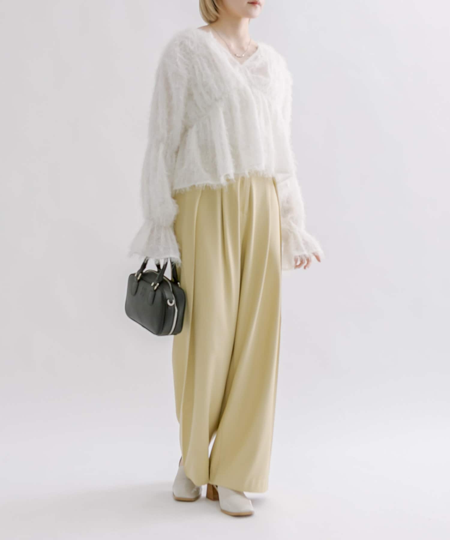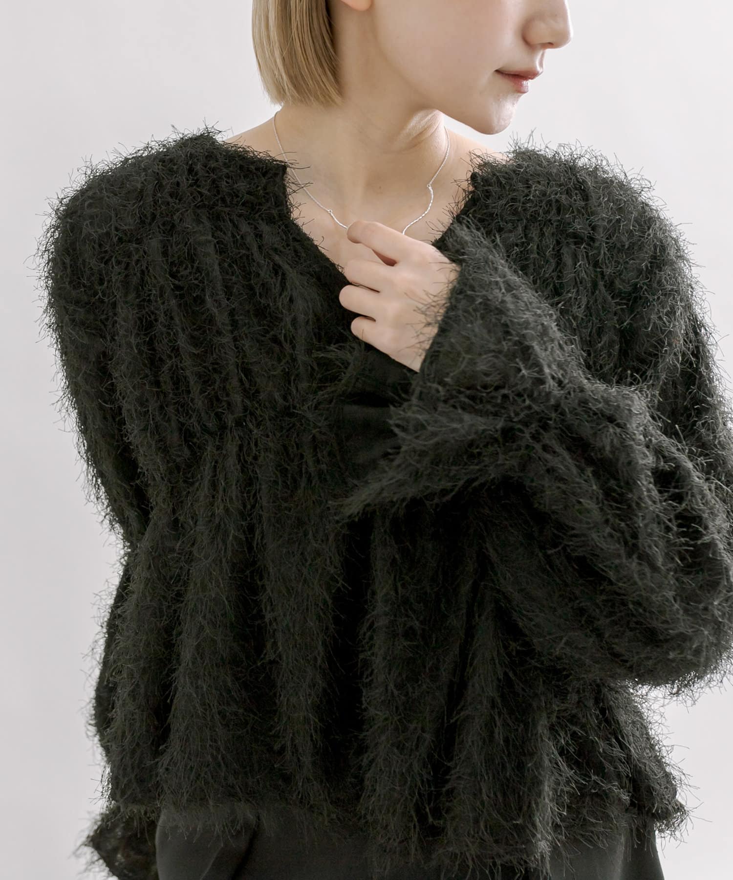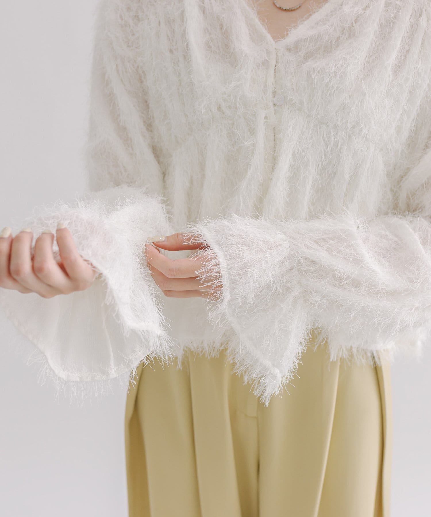 シャギー素材が一枚で華やかな印象に見せてくれるブラウスが【mline】から登場。