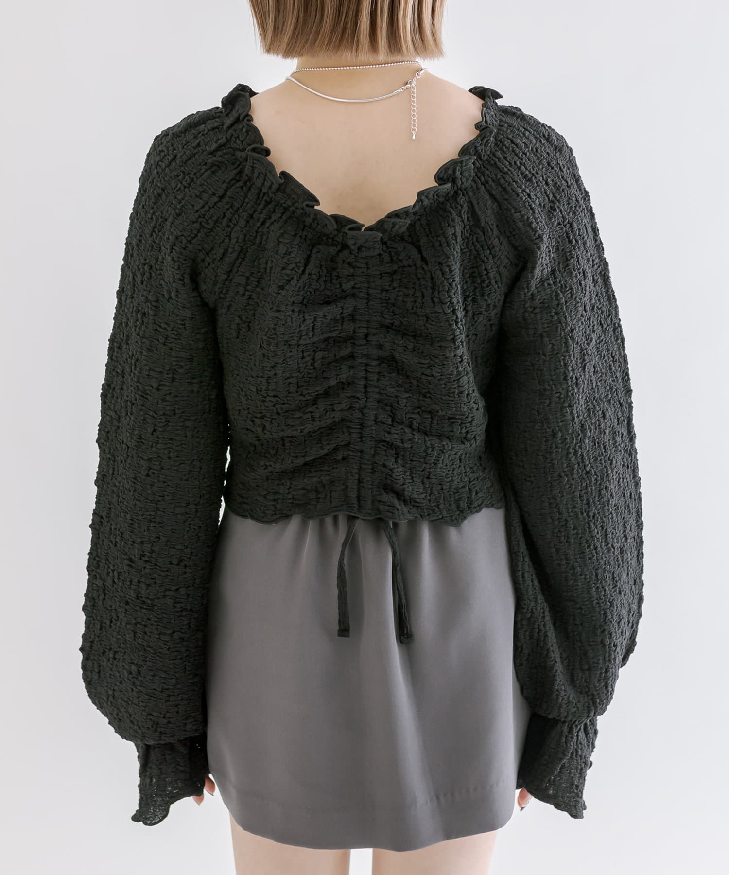 ・袖のボリューム感と手首のギャザーなどディティールにまでこだわった一枚。