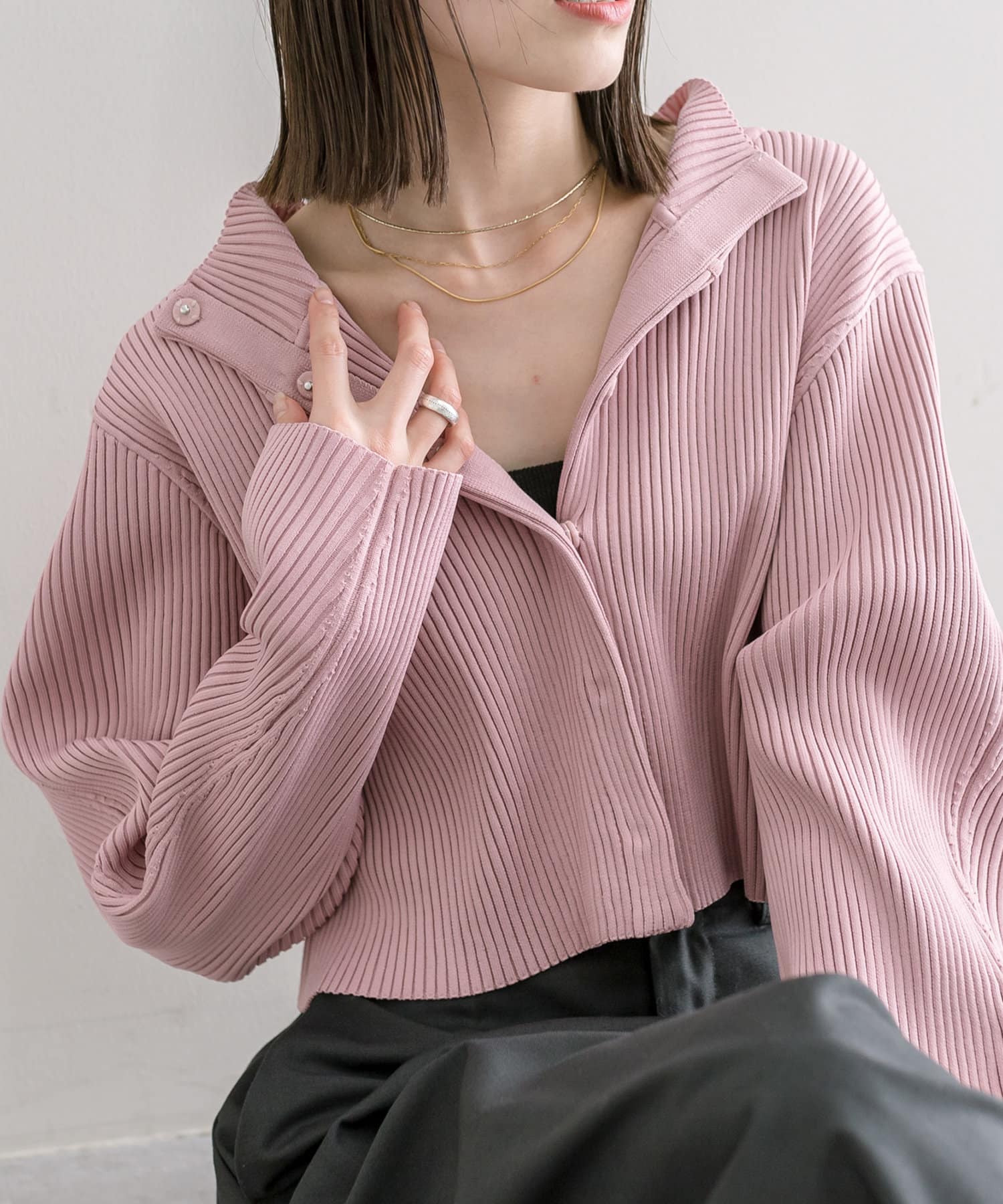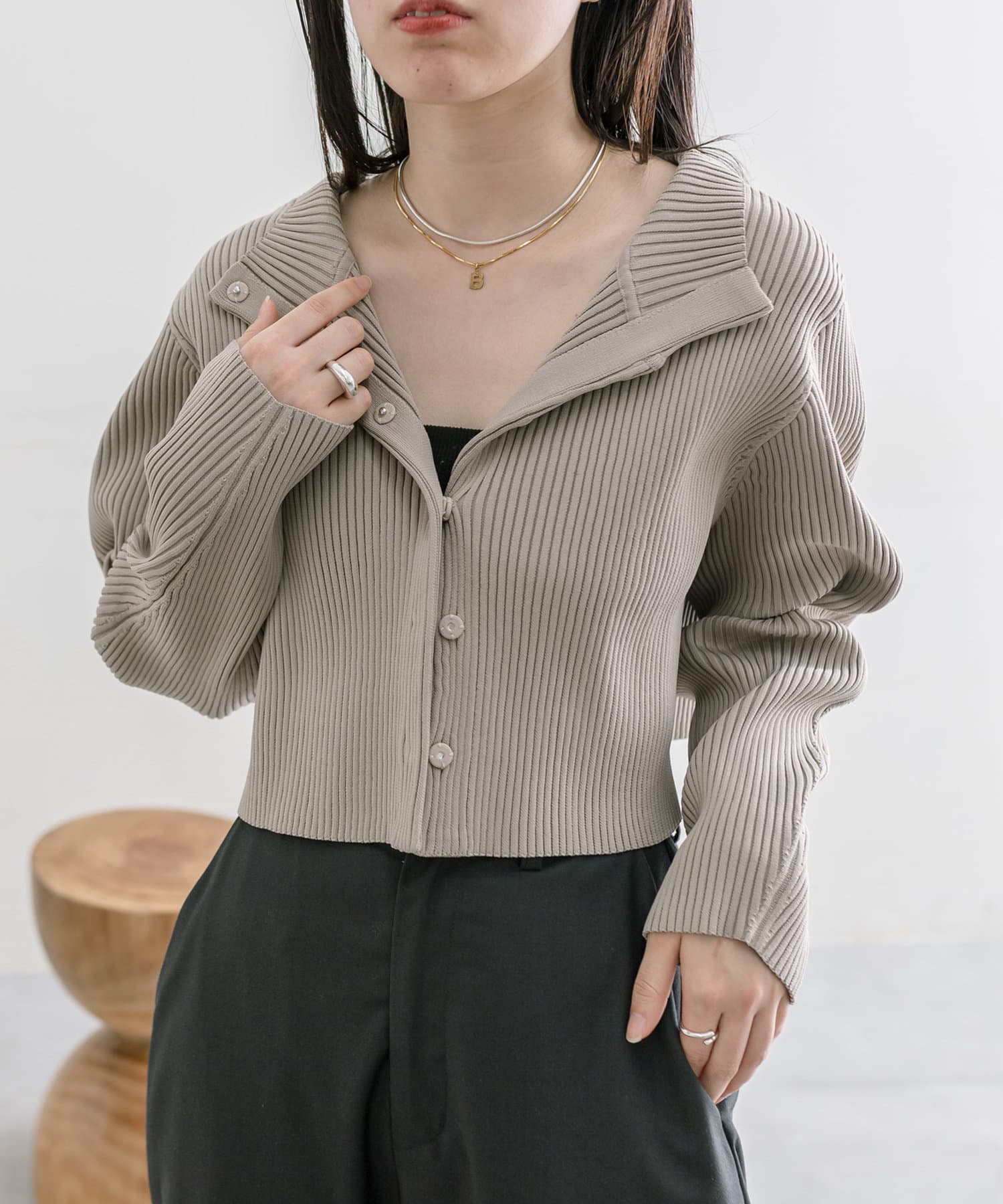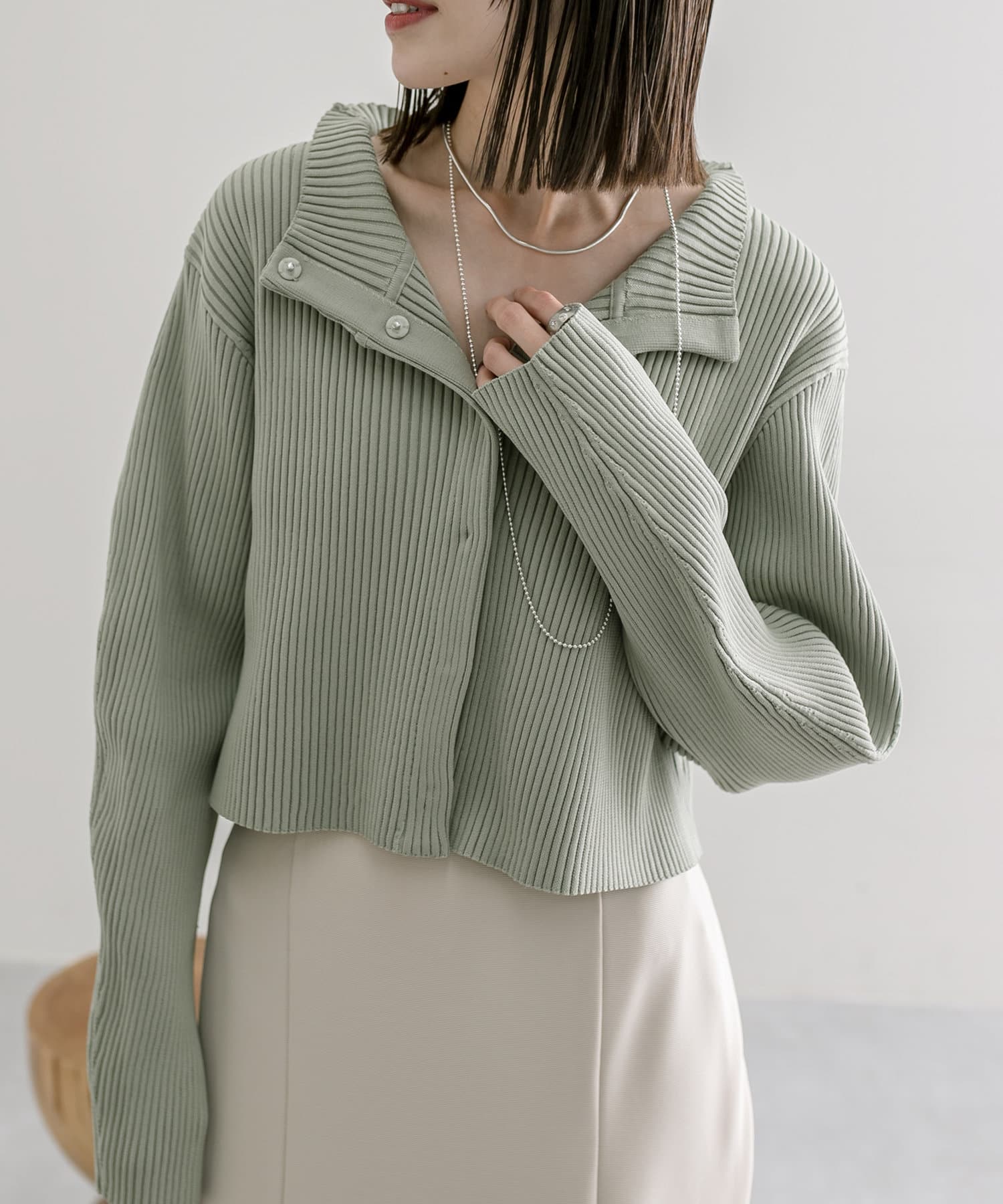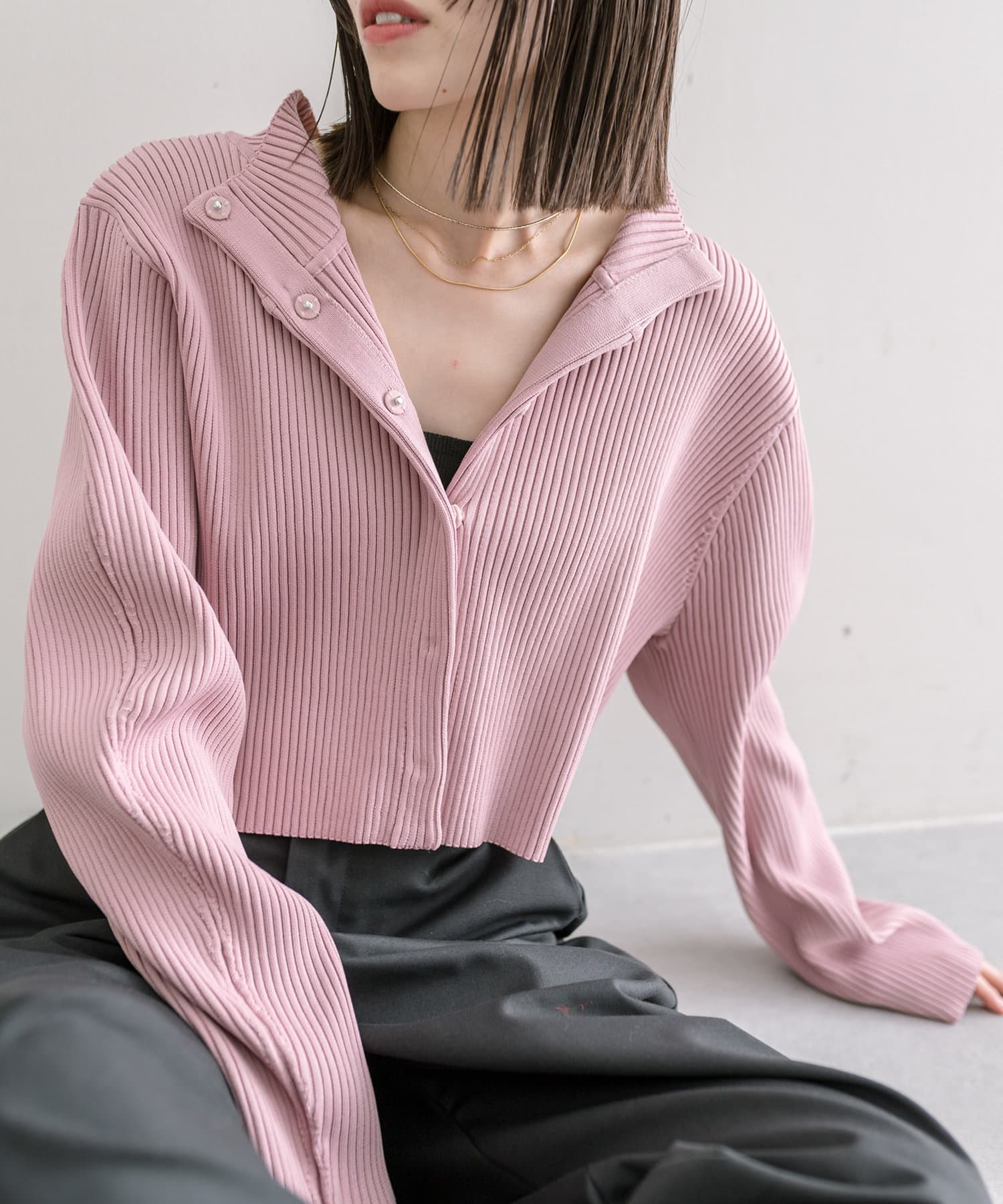 選べるカラバリ。ハイネックがワンポイントになるショートカーディガン。