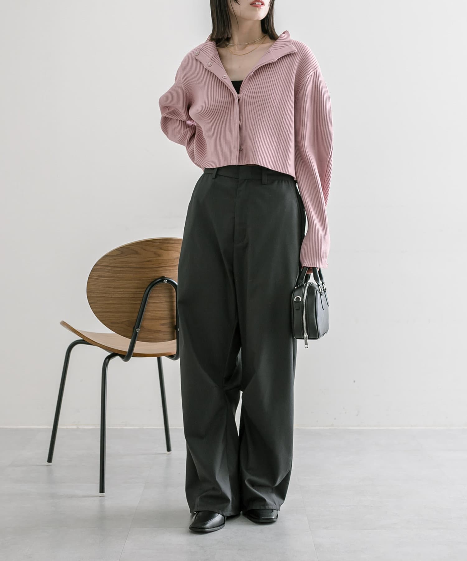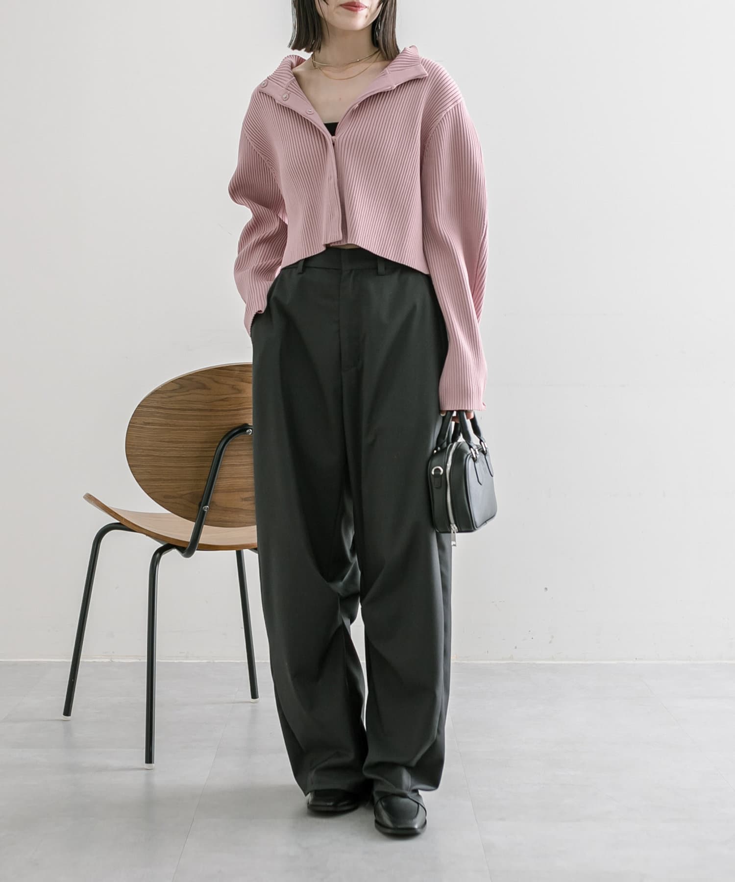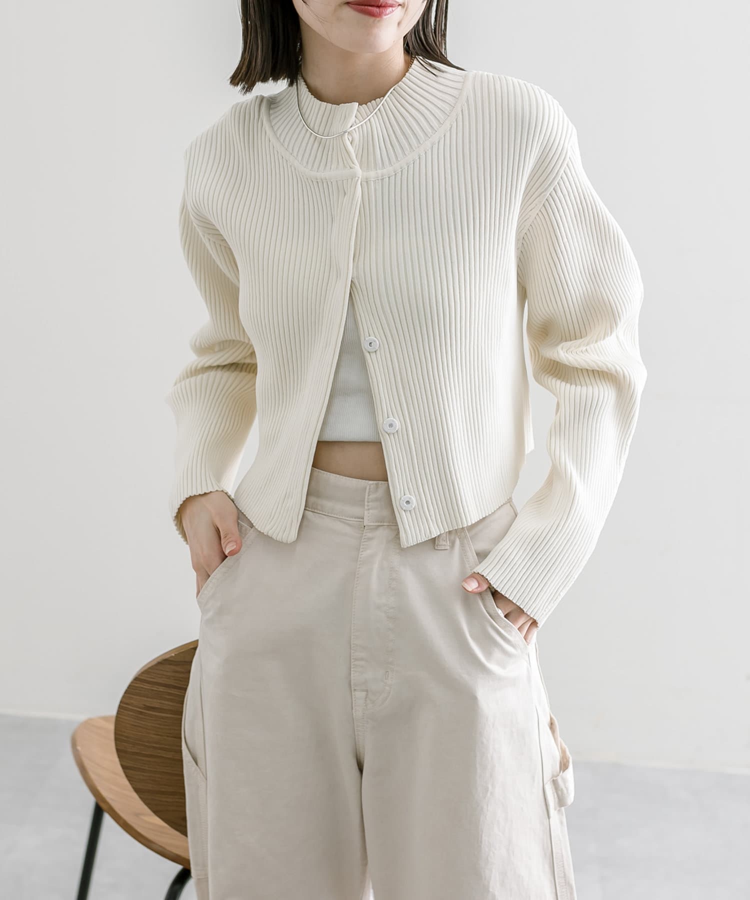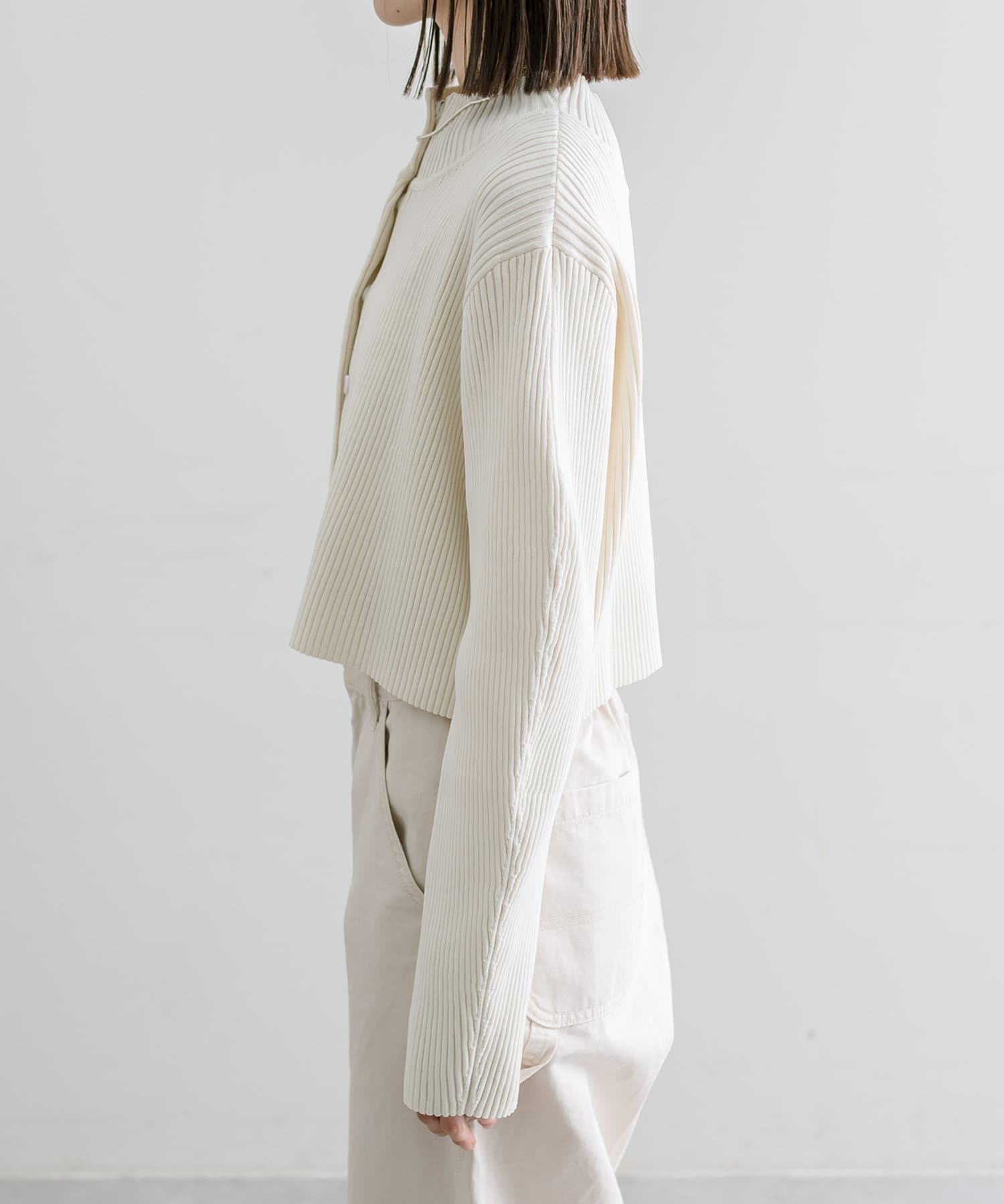 選べるカラバリ。ハイネックがワンポイントになるショートカーディガン。