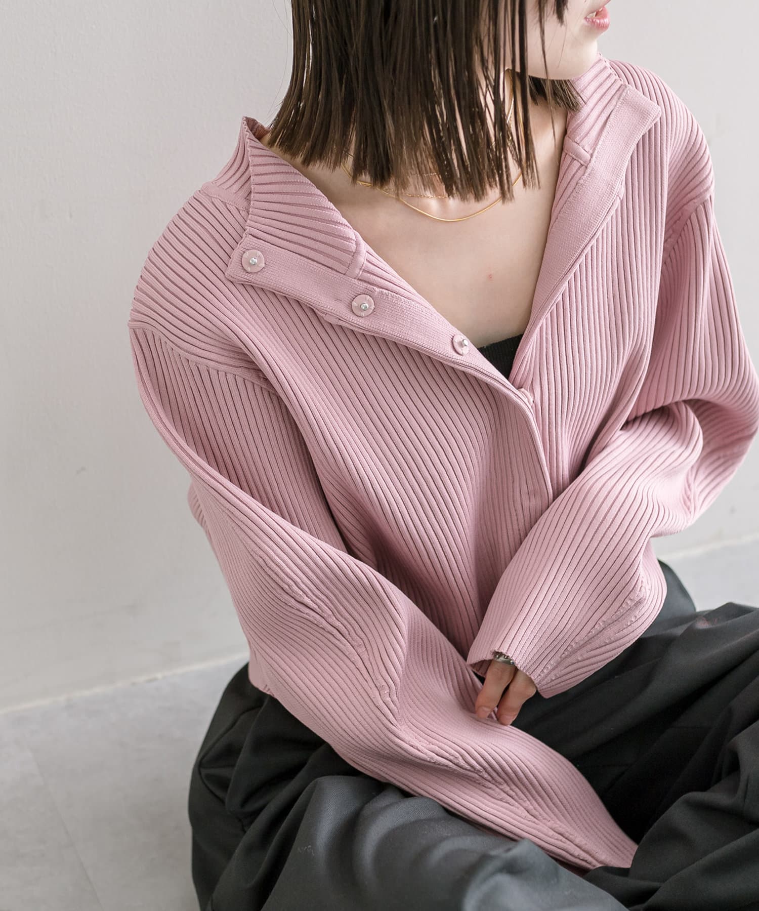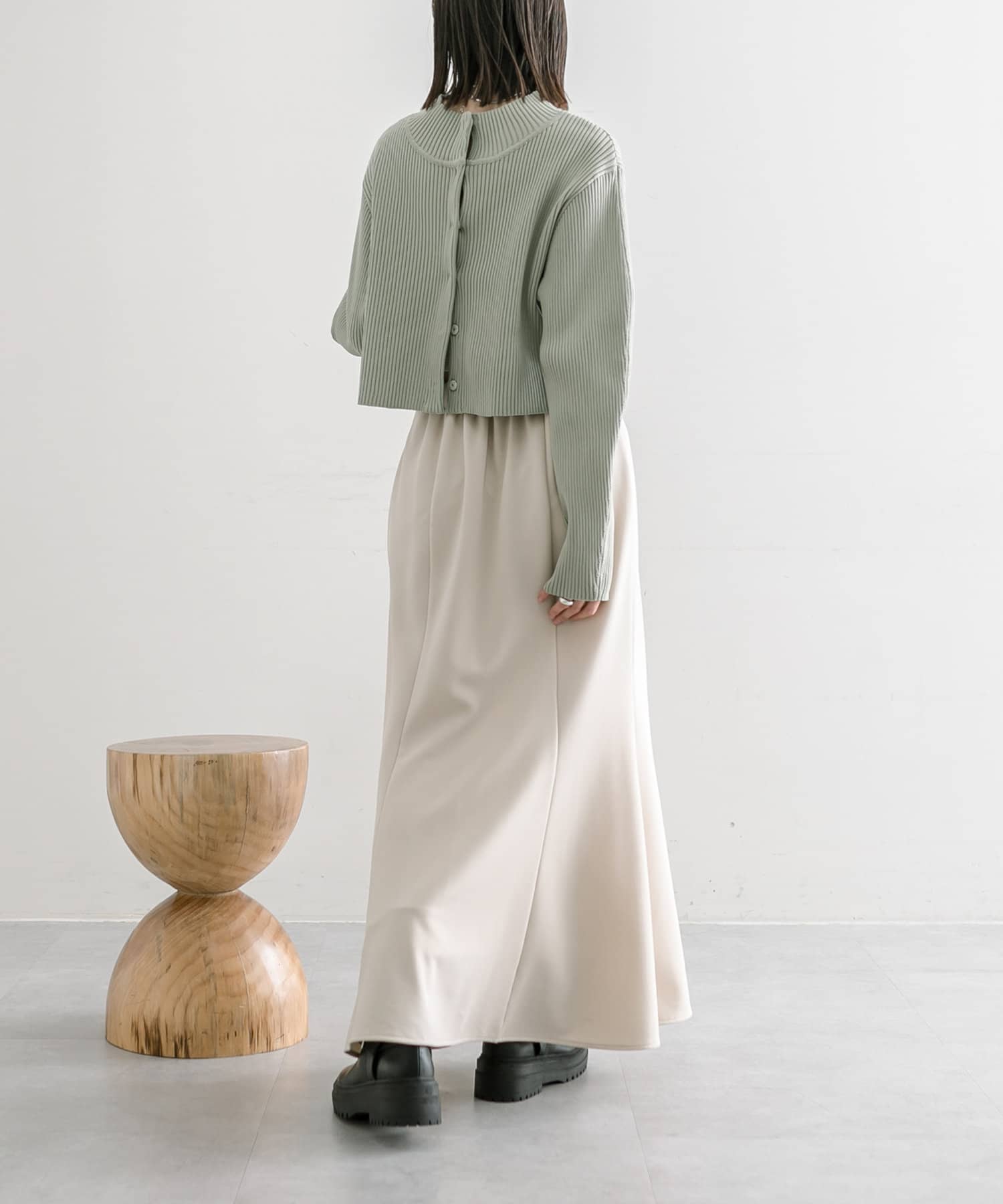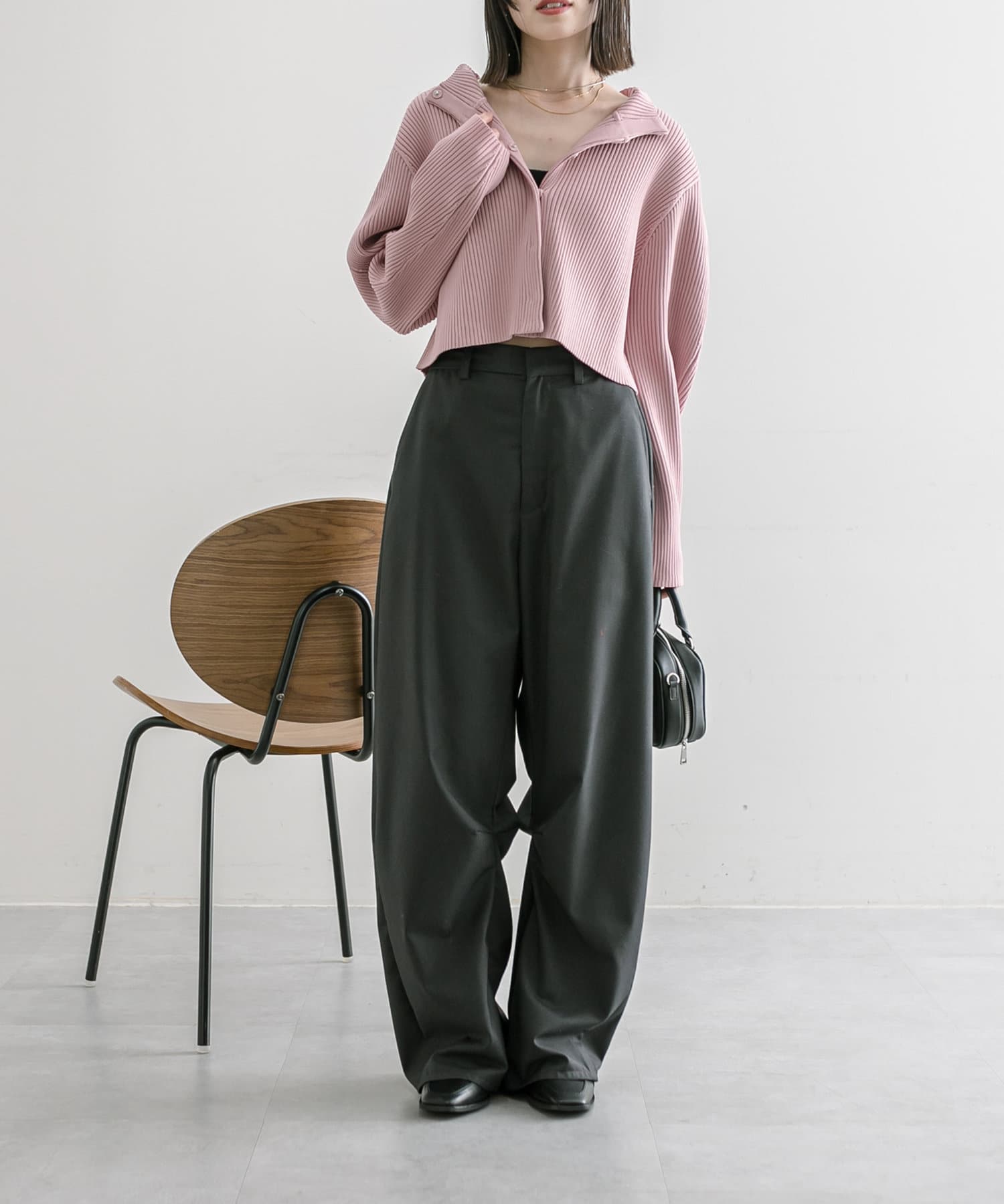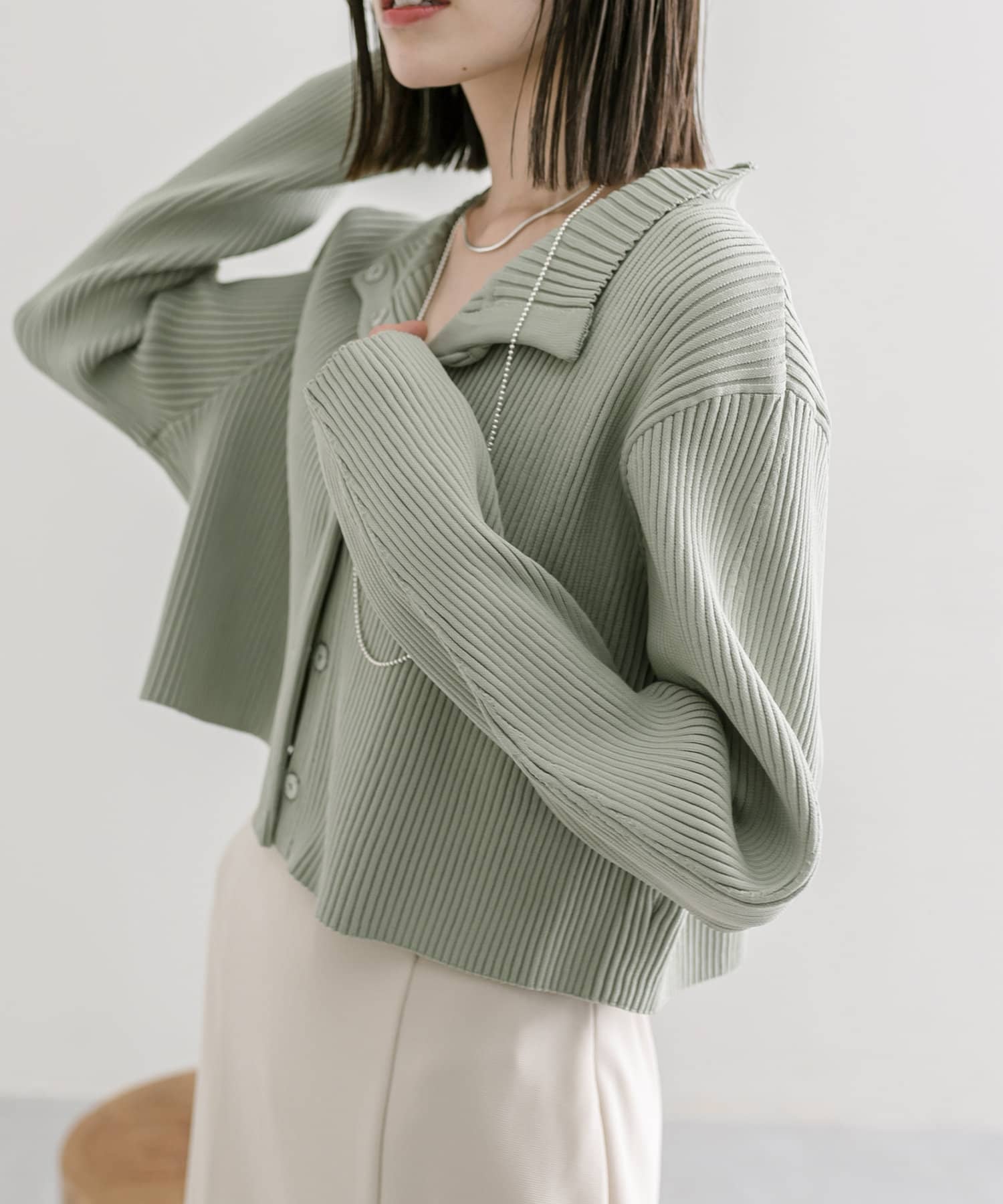 選べるカラバリ。ハイネックがワンポイントになるショートカーディガン。