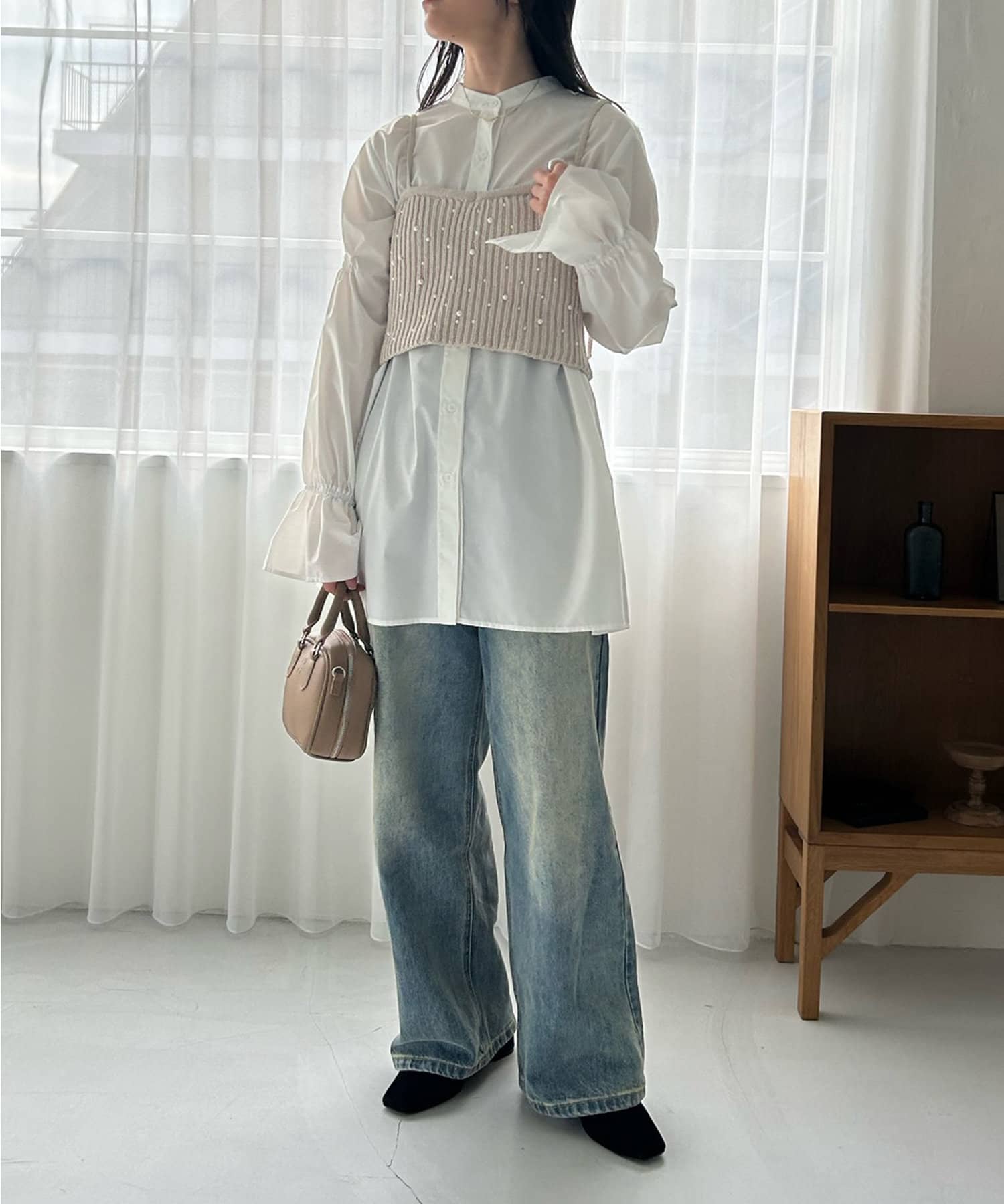 ・パールが華やかな印象に見せてくれるのでデニムやシンプルなスラックスとも相性◎