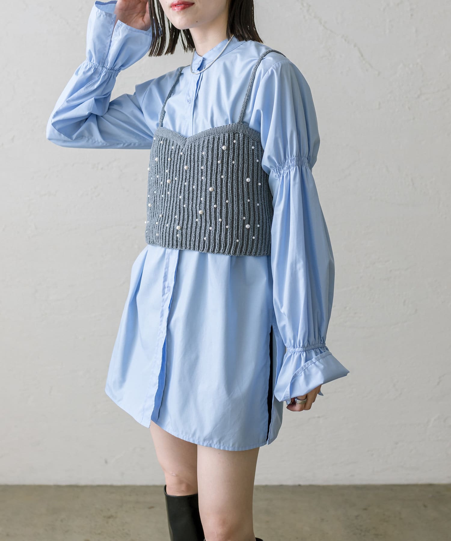 ・華奢な肩紐がインナーを邪魔しないため様々なアイテムと合わせていただけます。