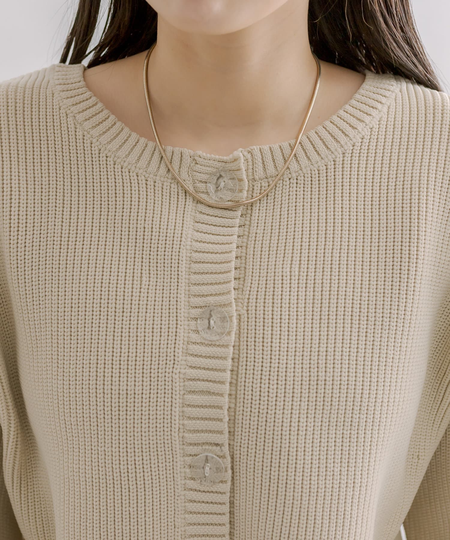 ・クリアの大きめなボタンがアクセントになるのでシンプルなアクセがおすすめ。