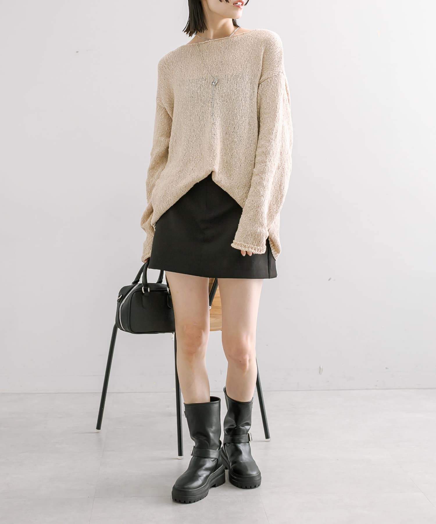・ざっくり編みのニットで大人っぽい雰囲気で着ていただけます。
