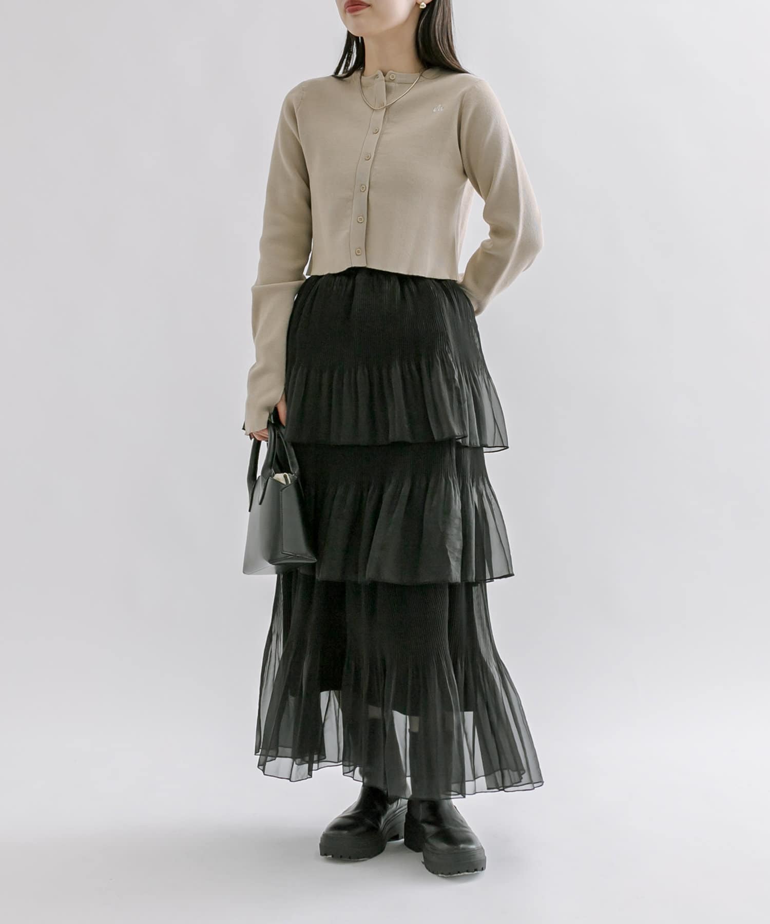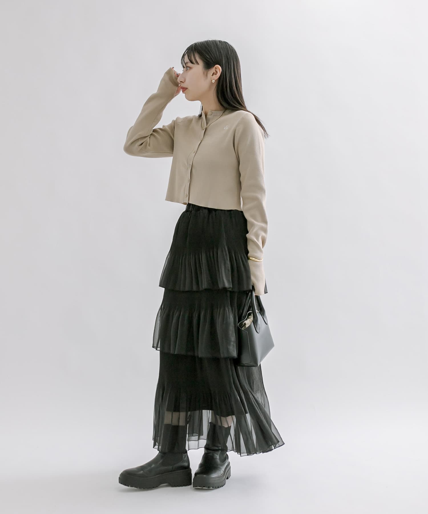 ・ボリューム感のあるスカートでも女性らしい印象に。