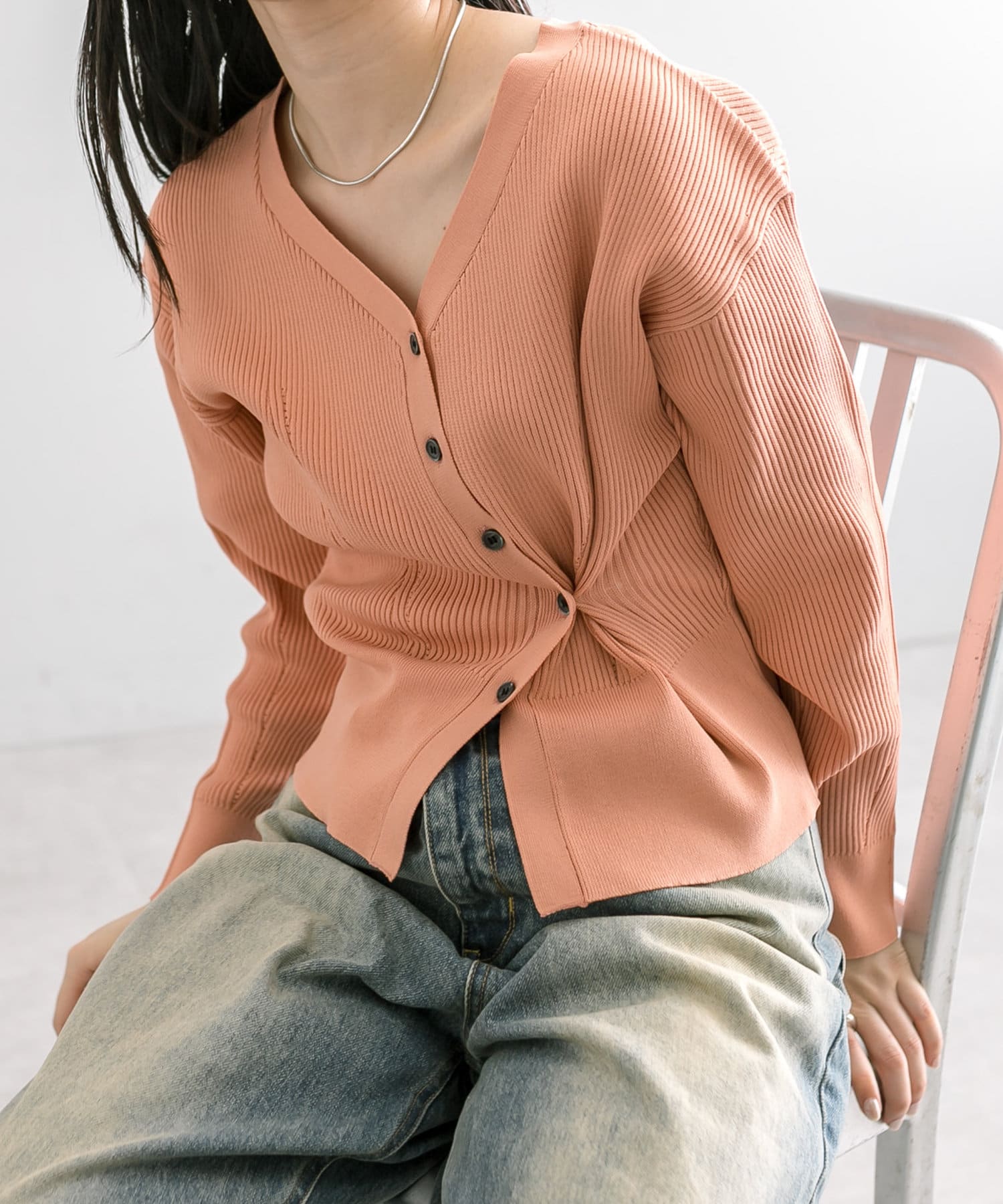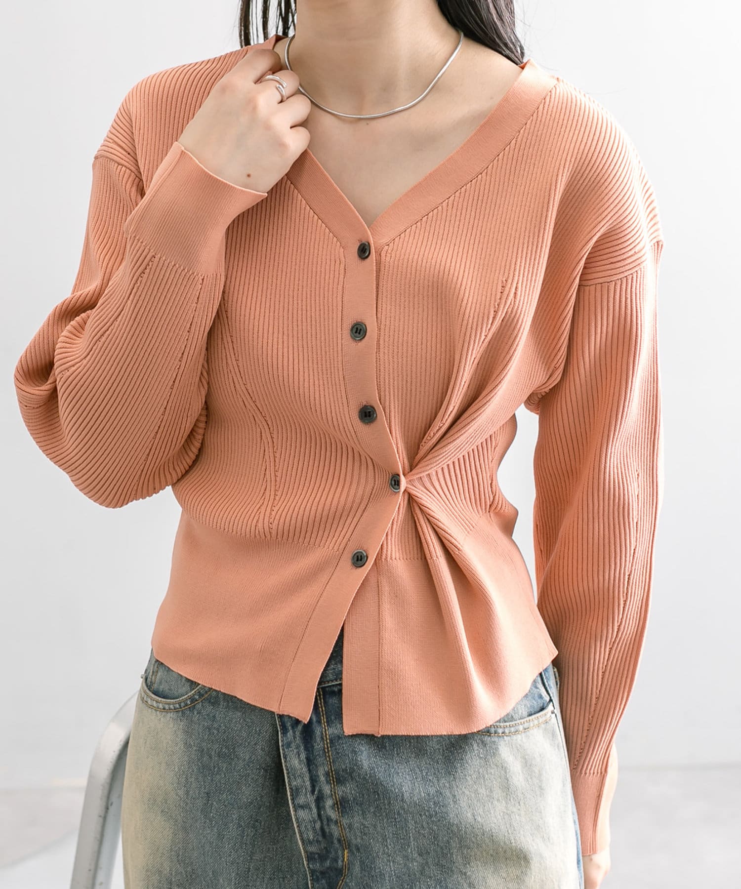 ・SS第2段で発売したレイヤードボタンカーディガンが、生地が薄くなり春仕様になって再登場しました!