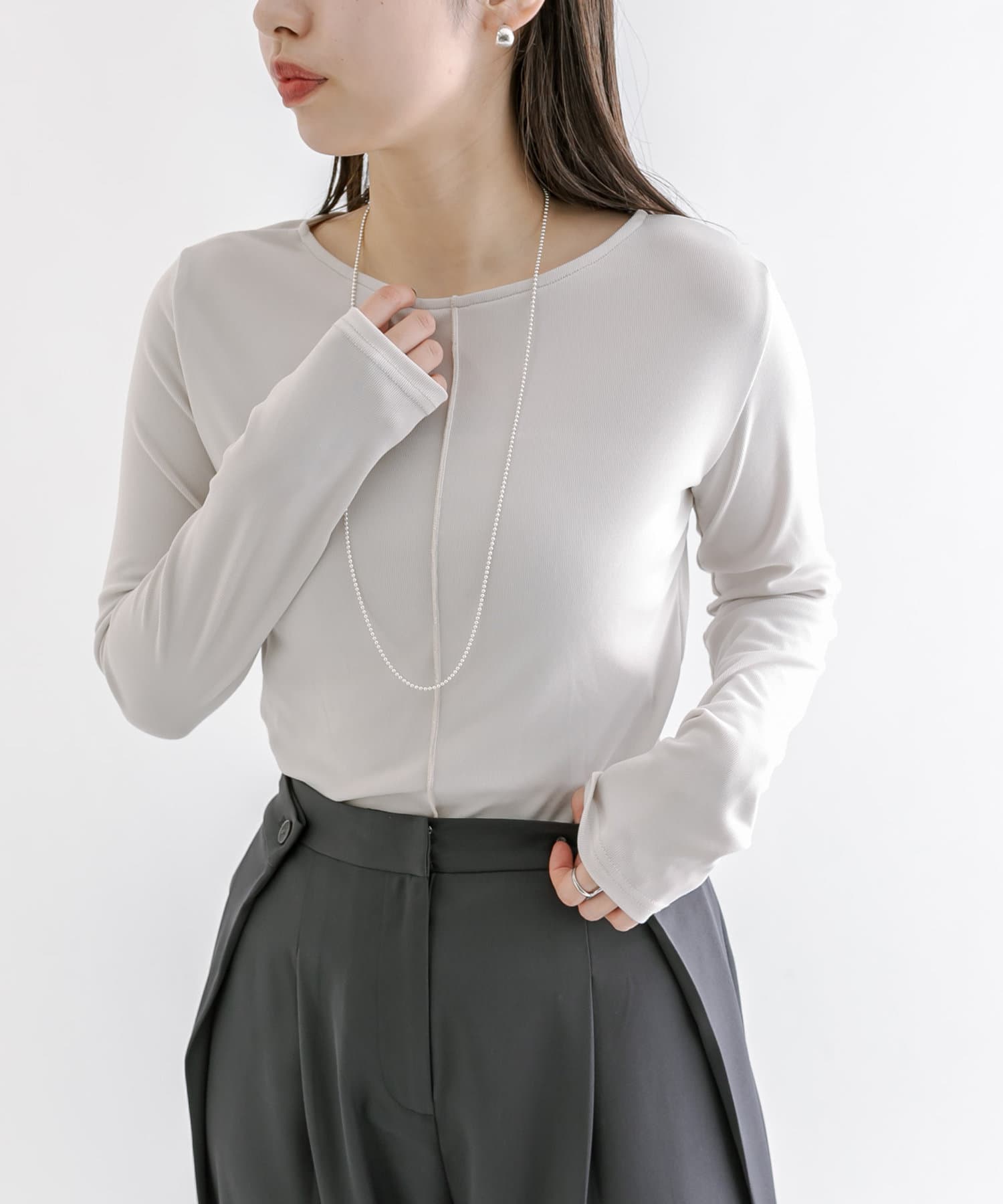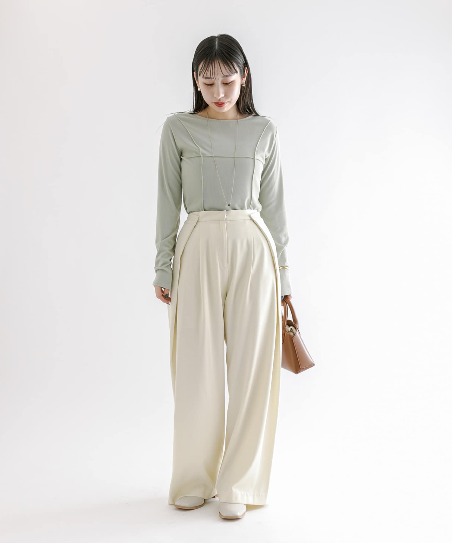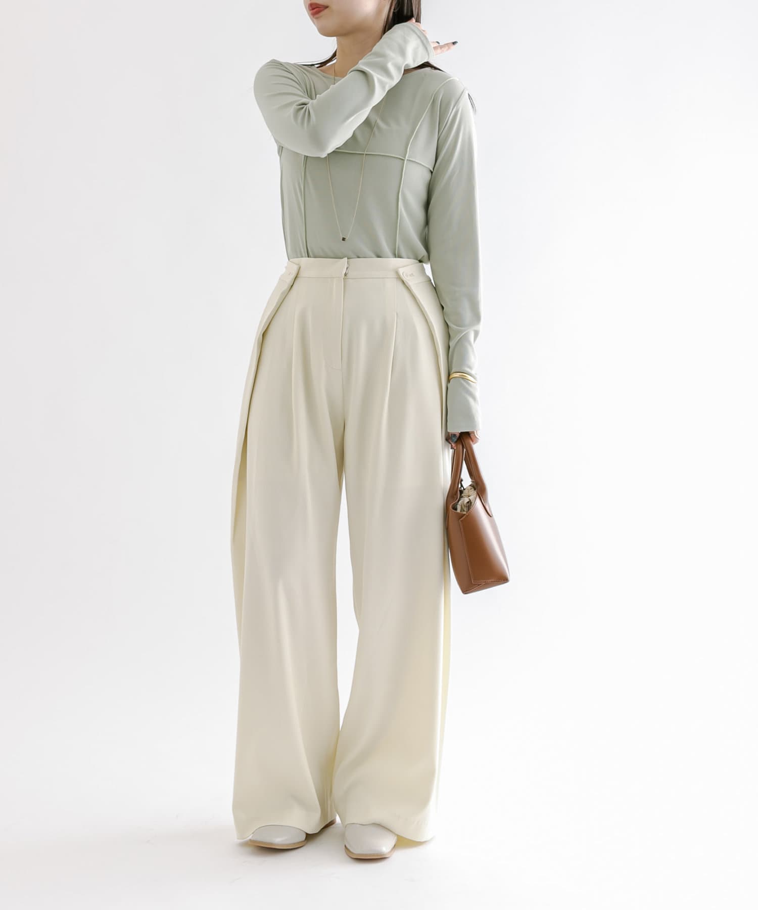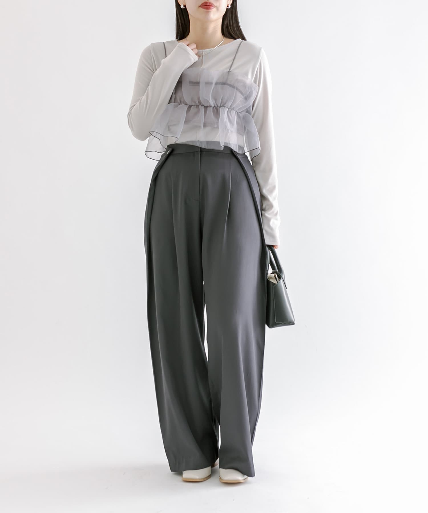 ・スラックスやマーメイドスカートなどボトムを選ばないのが嬉しいポイント◎