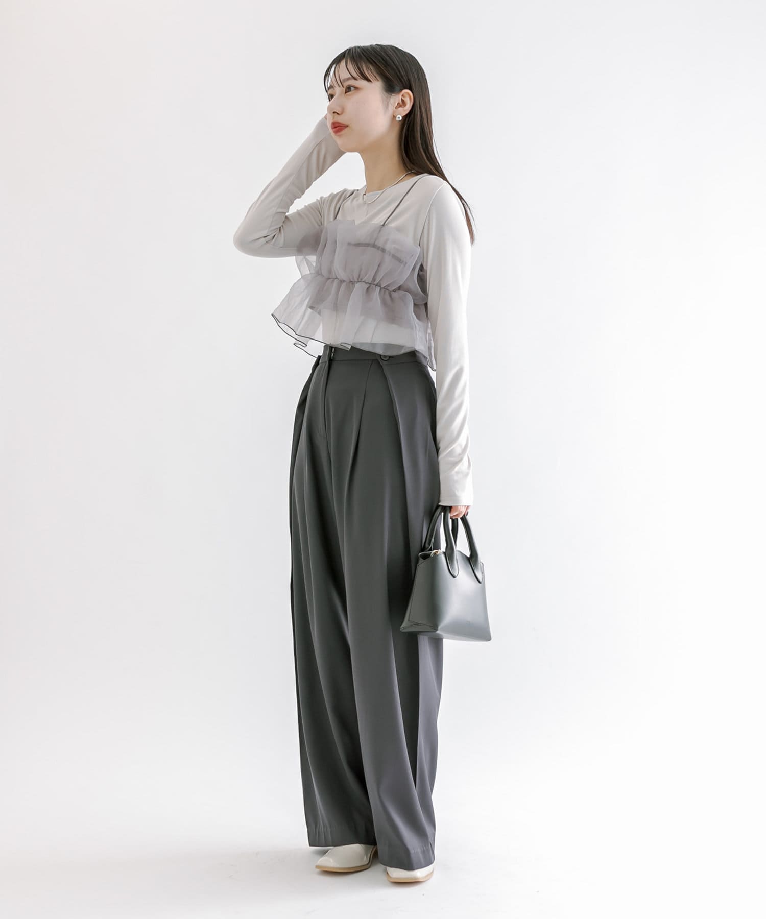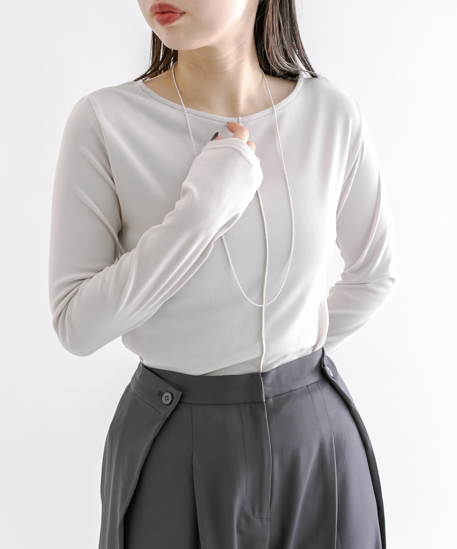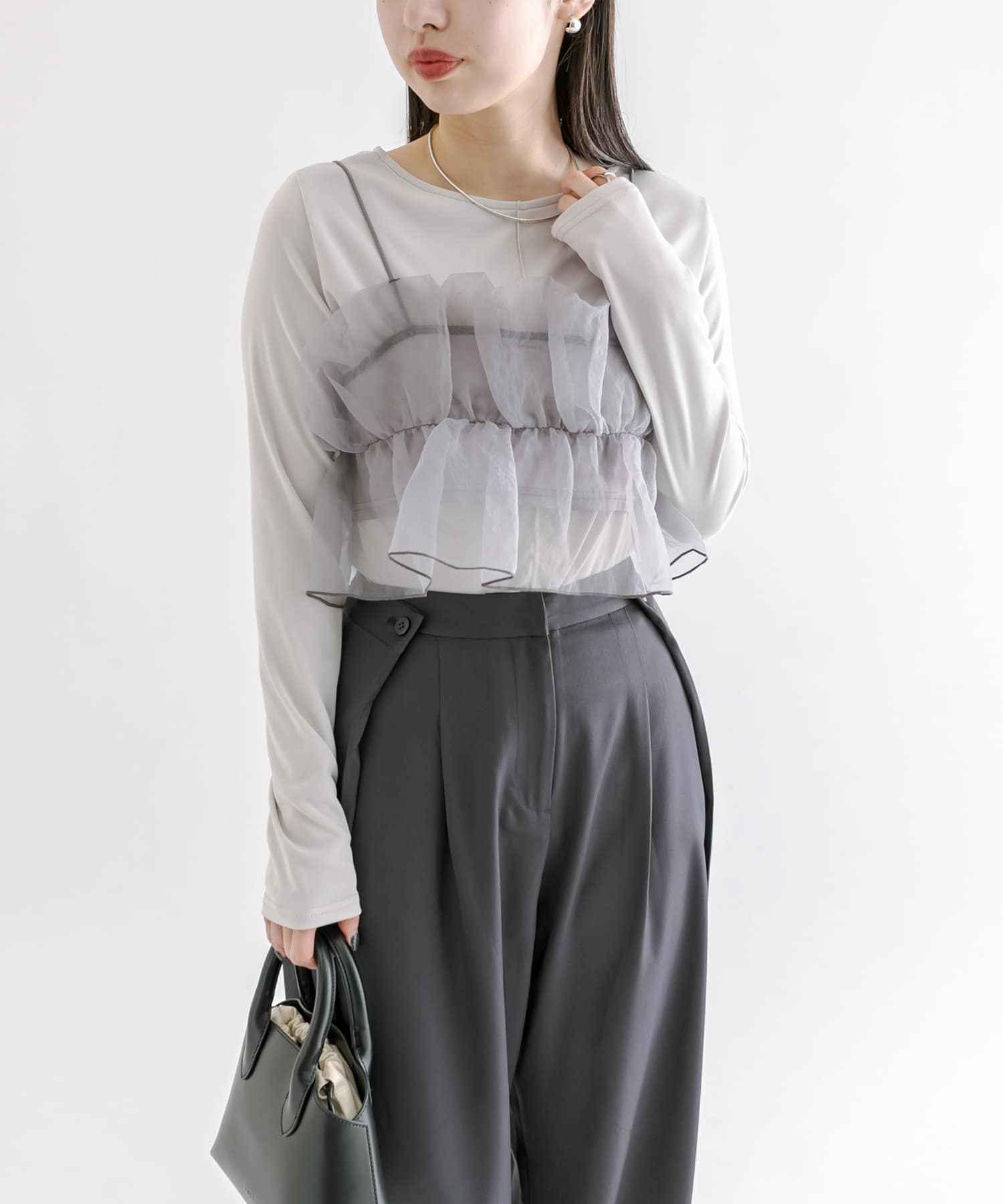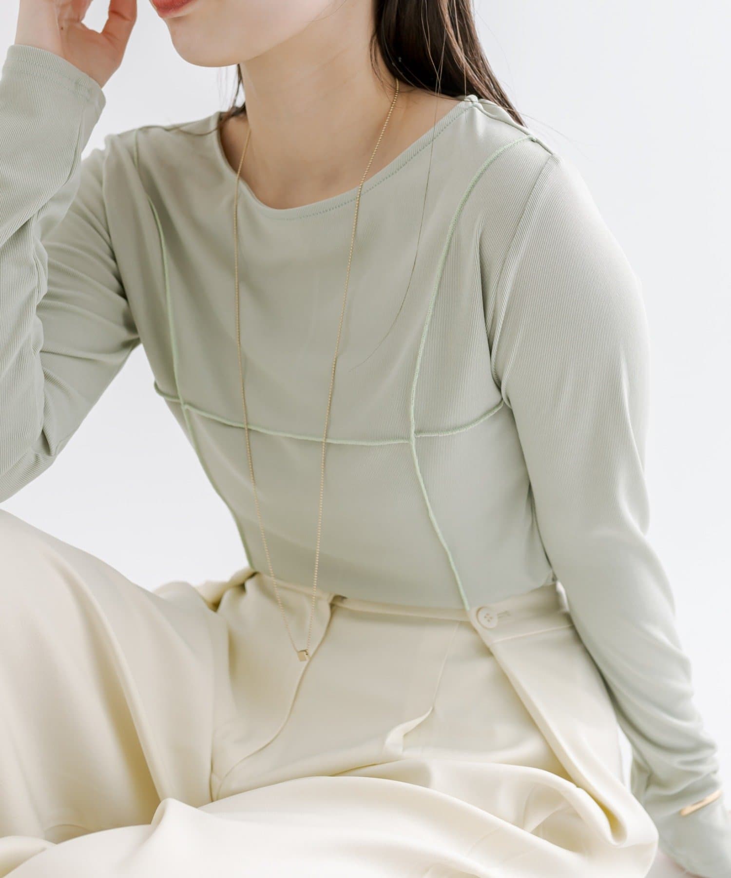 ・スラックスやマーメイドスカートなどボトムを選ばないのが嬉しいポイント◎