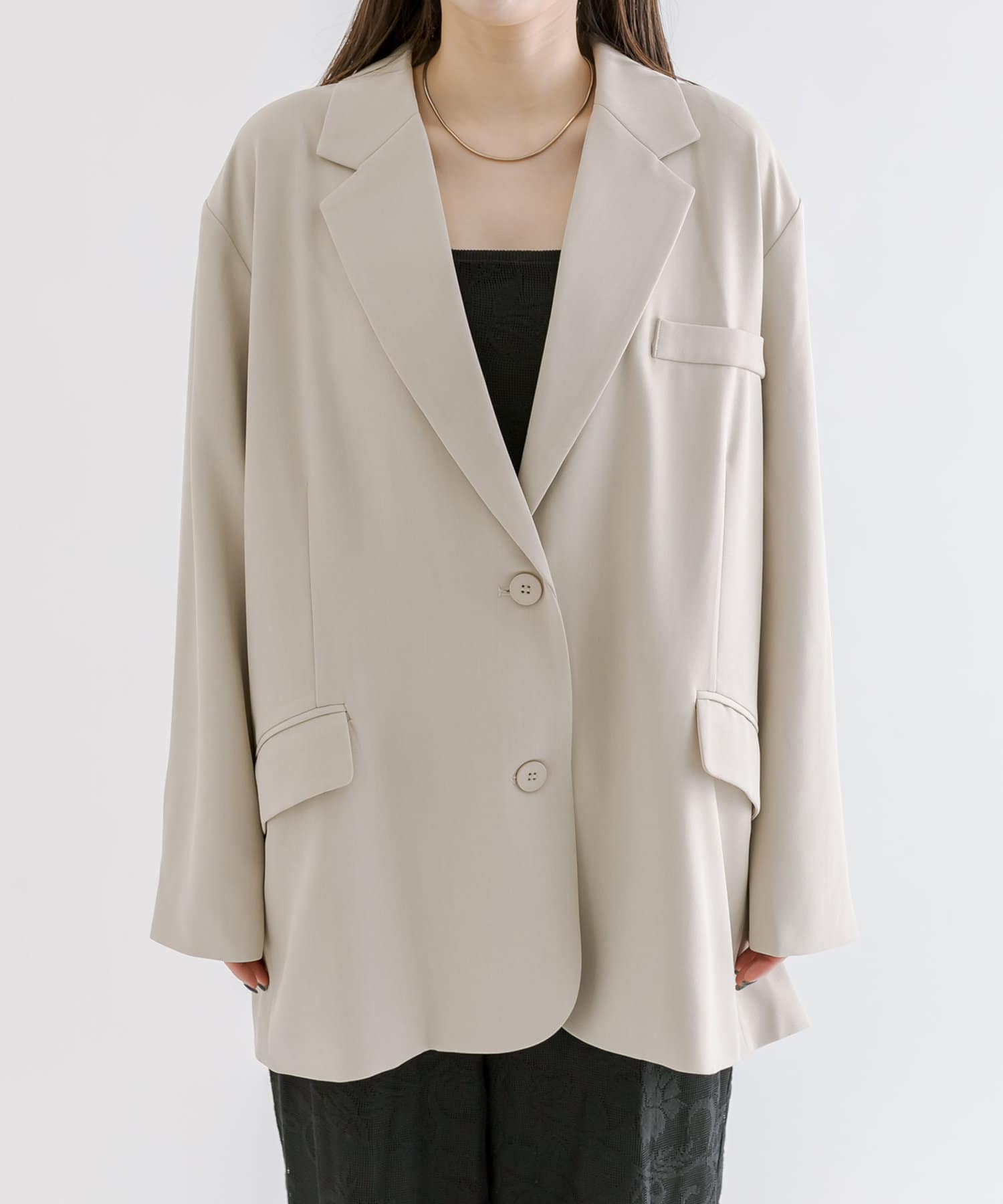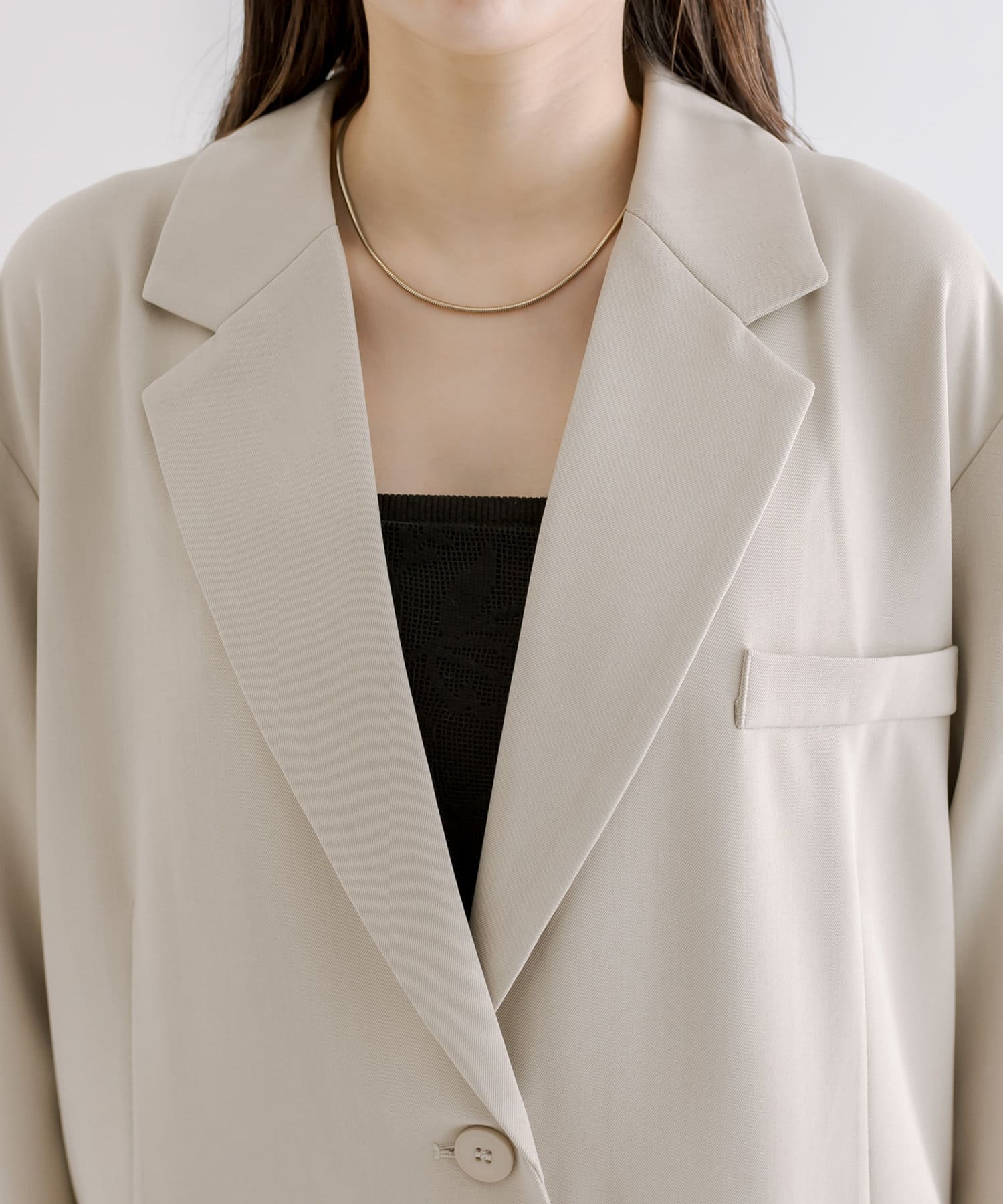 肩幅が広いタイプなので、ビッグジャケットで肩パットしっかり入ってるタイプだとすごい肩が強調されてゴツく見えるんですが、これはストンっと落ちてくれるので逆にすごく華奢に見えます!買ってよかったです。