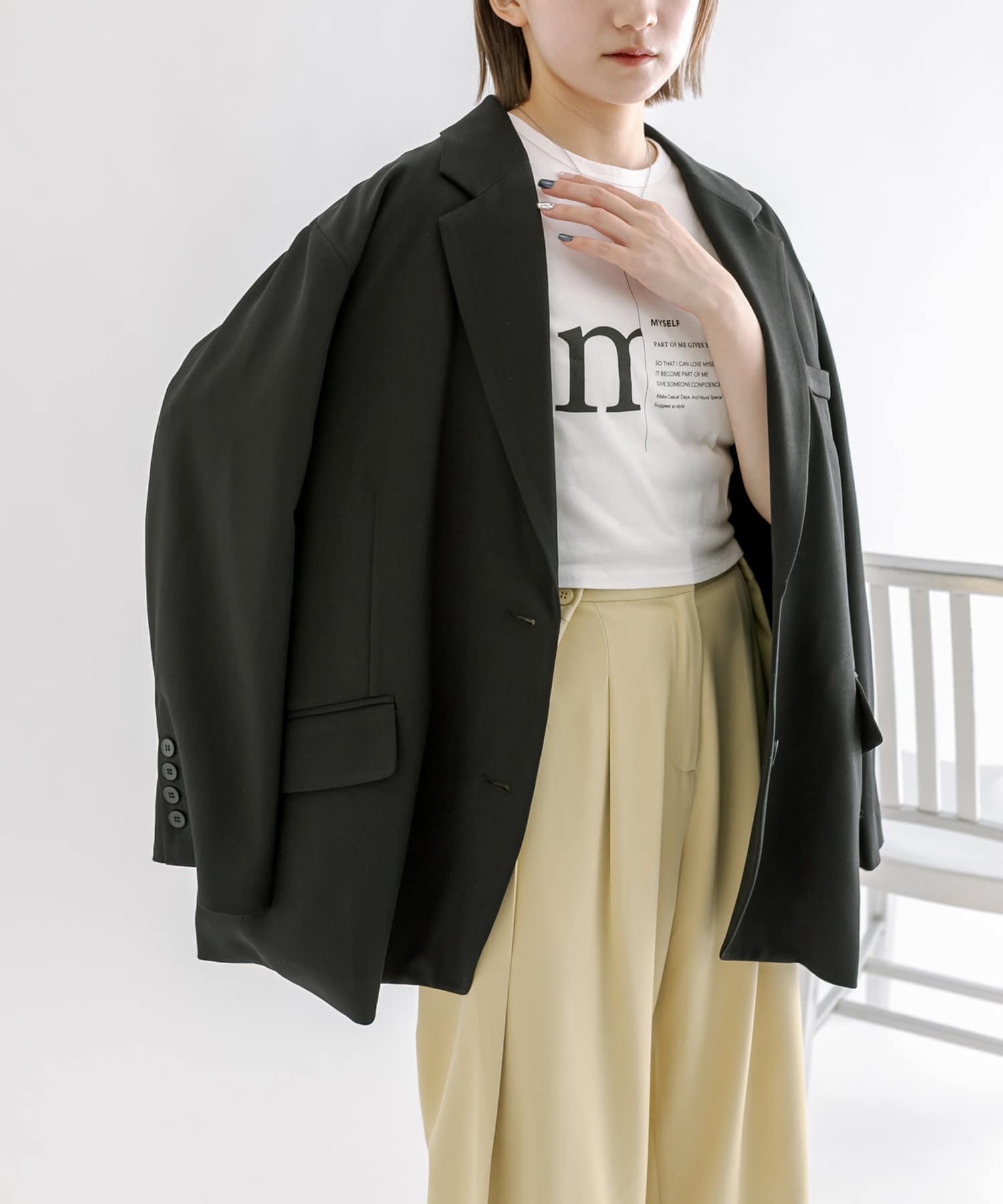 ・ややオーバーサイズでばさっと羽織れるサイズ感。