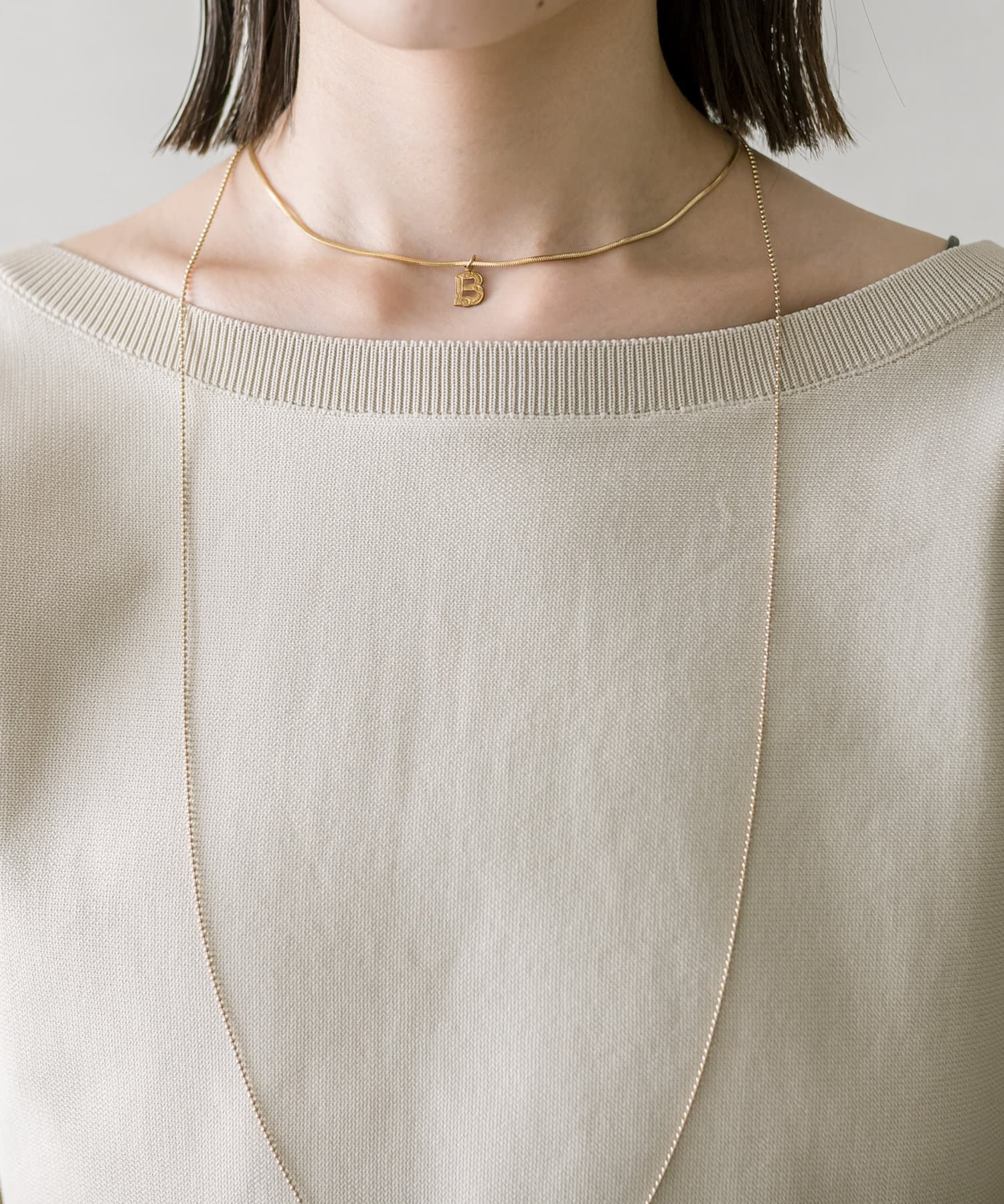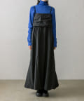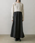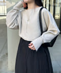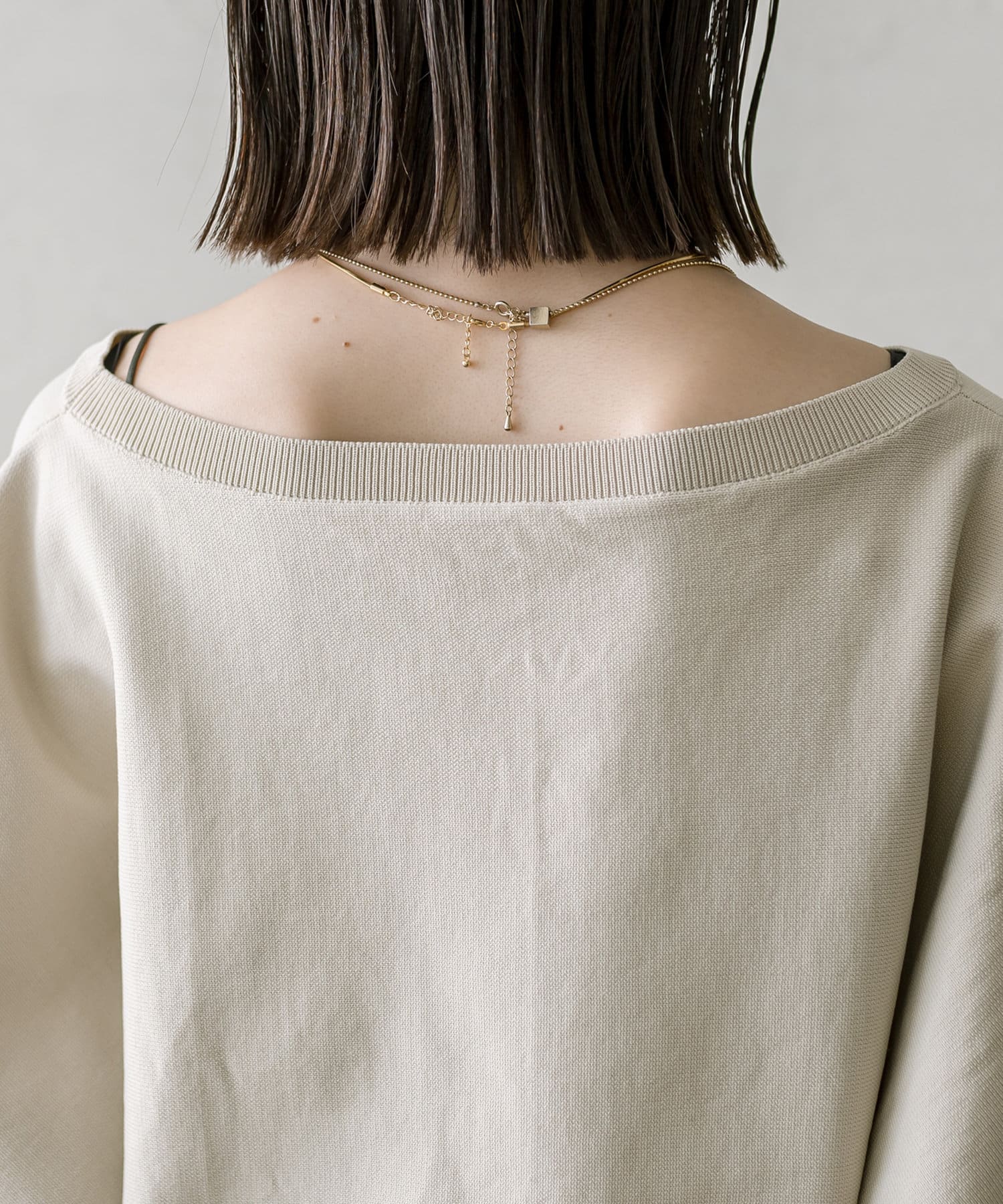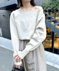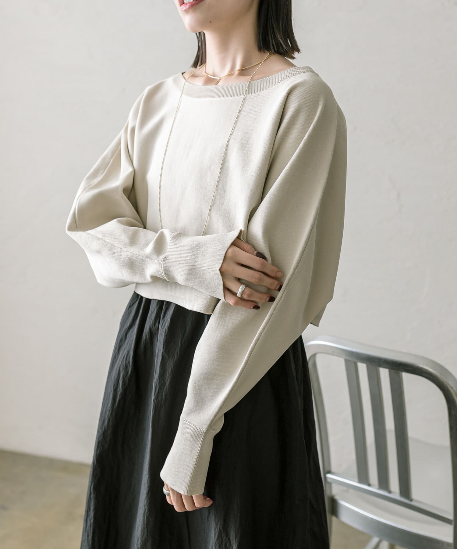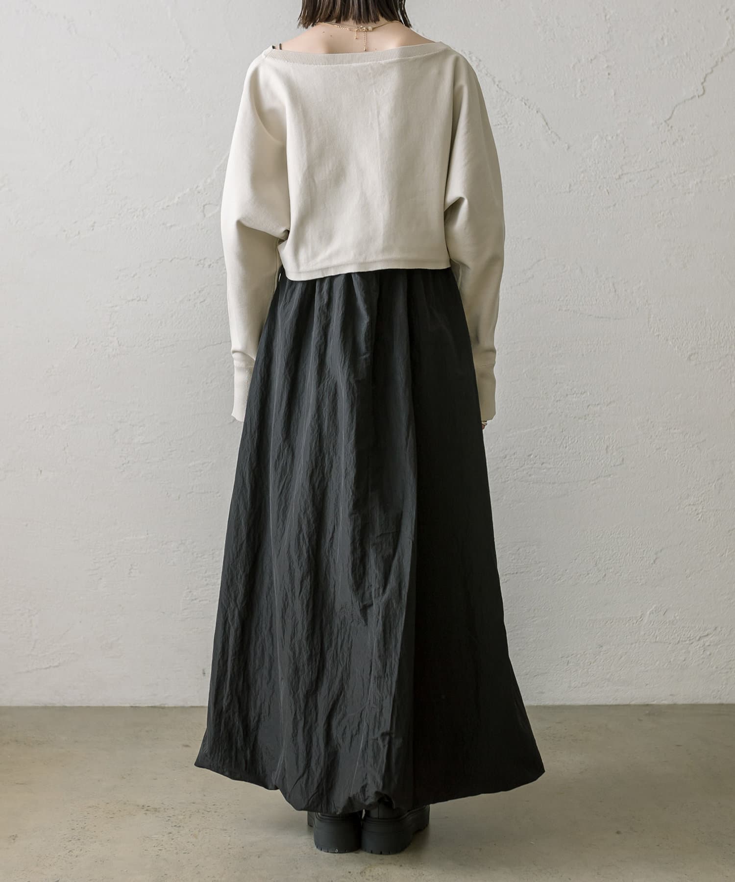 ・ニットは首回りが広めに開いており、ボリューム感のあるワンピースとバランス良く決まります。
