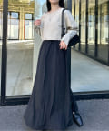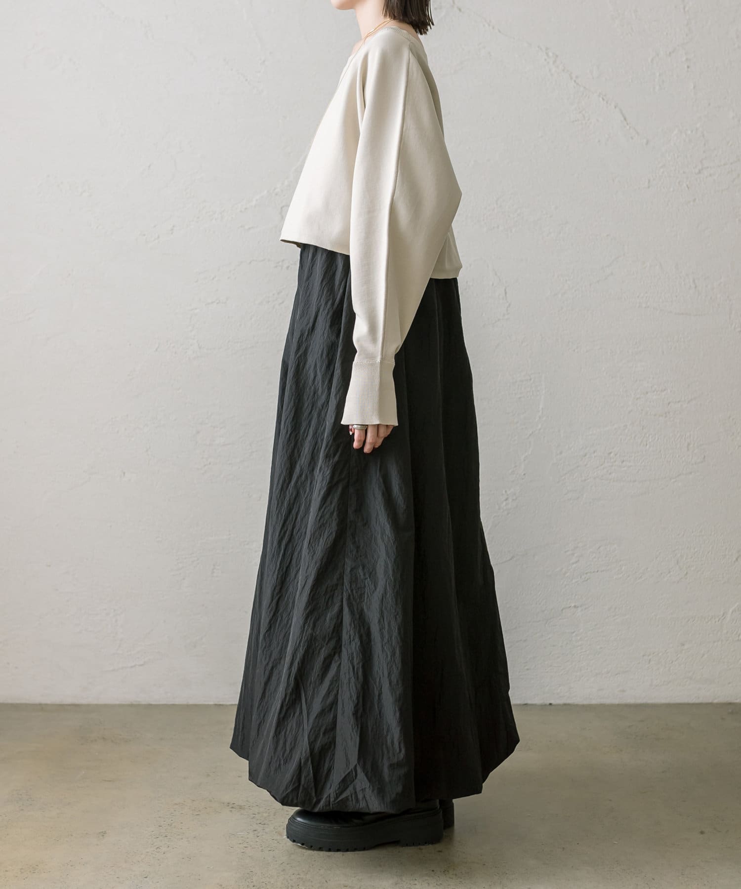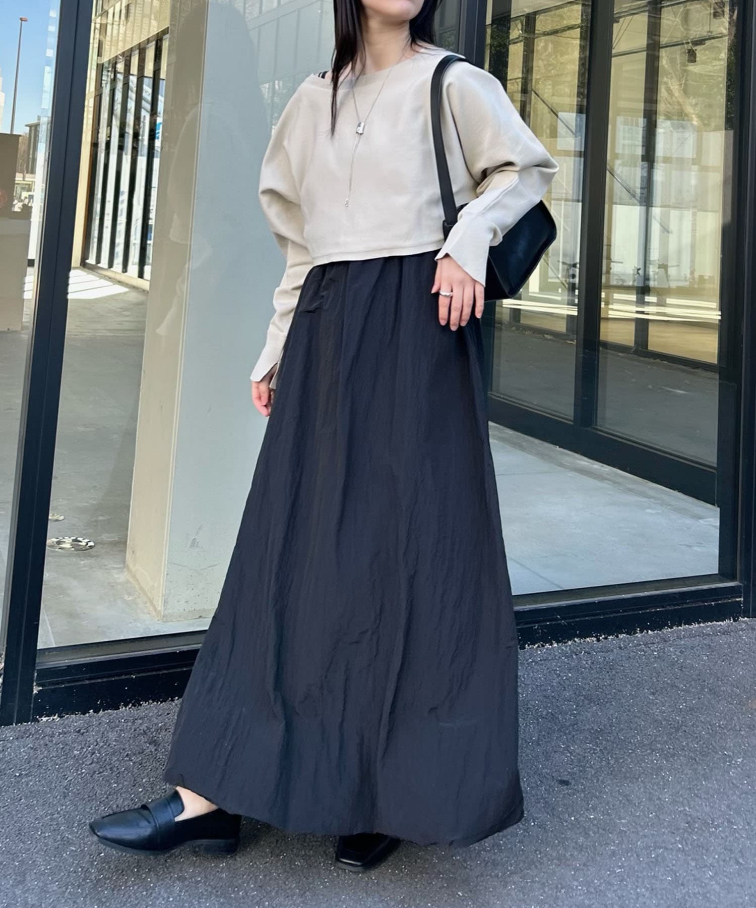 ・やや薄手で重ねてもすっきり見えるニットとのセットアイテム◎