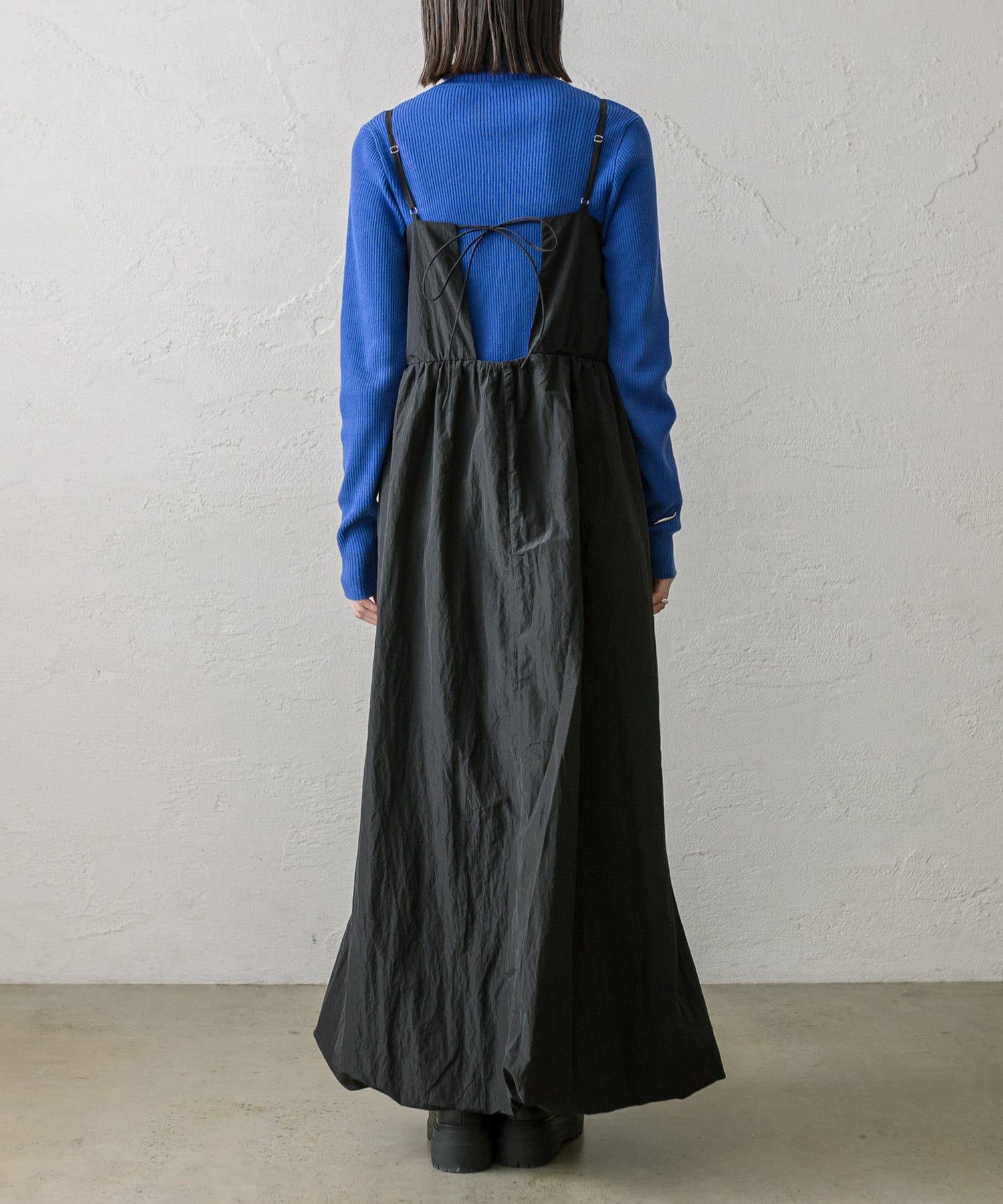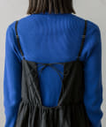 ・キャミワンピースはバックが開いたデザインで後ろ姿まで華やかな印象に。