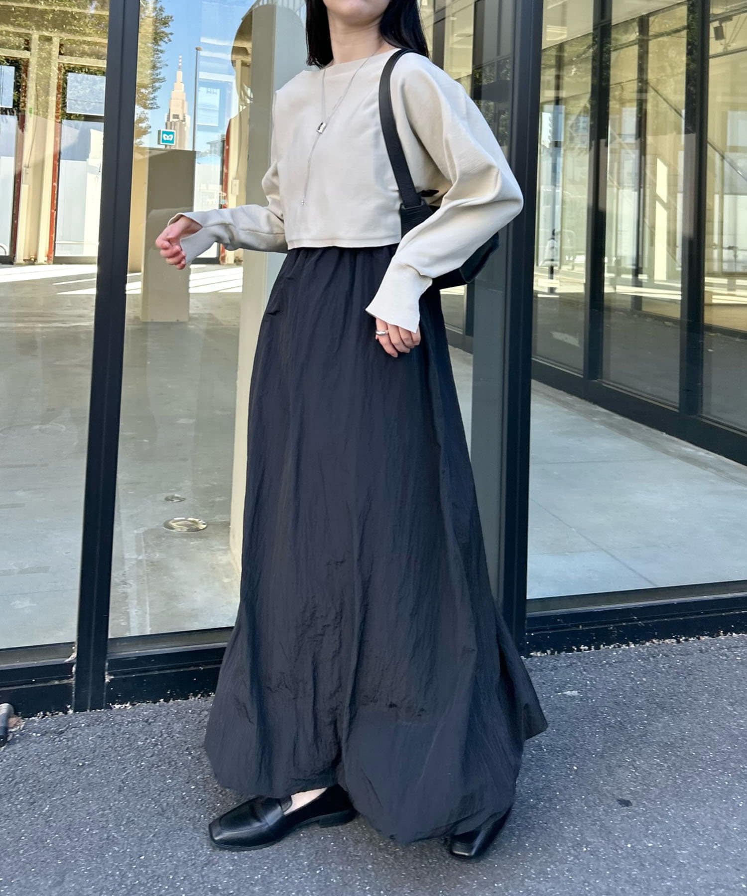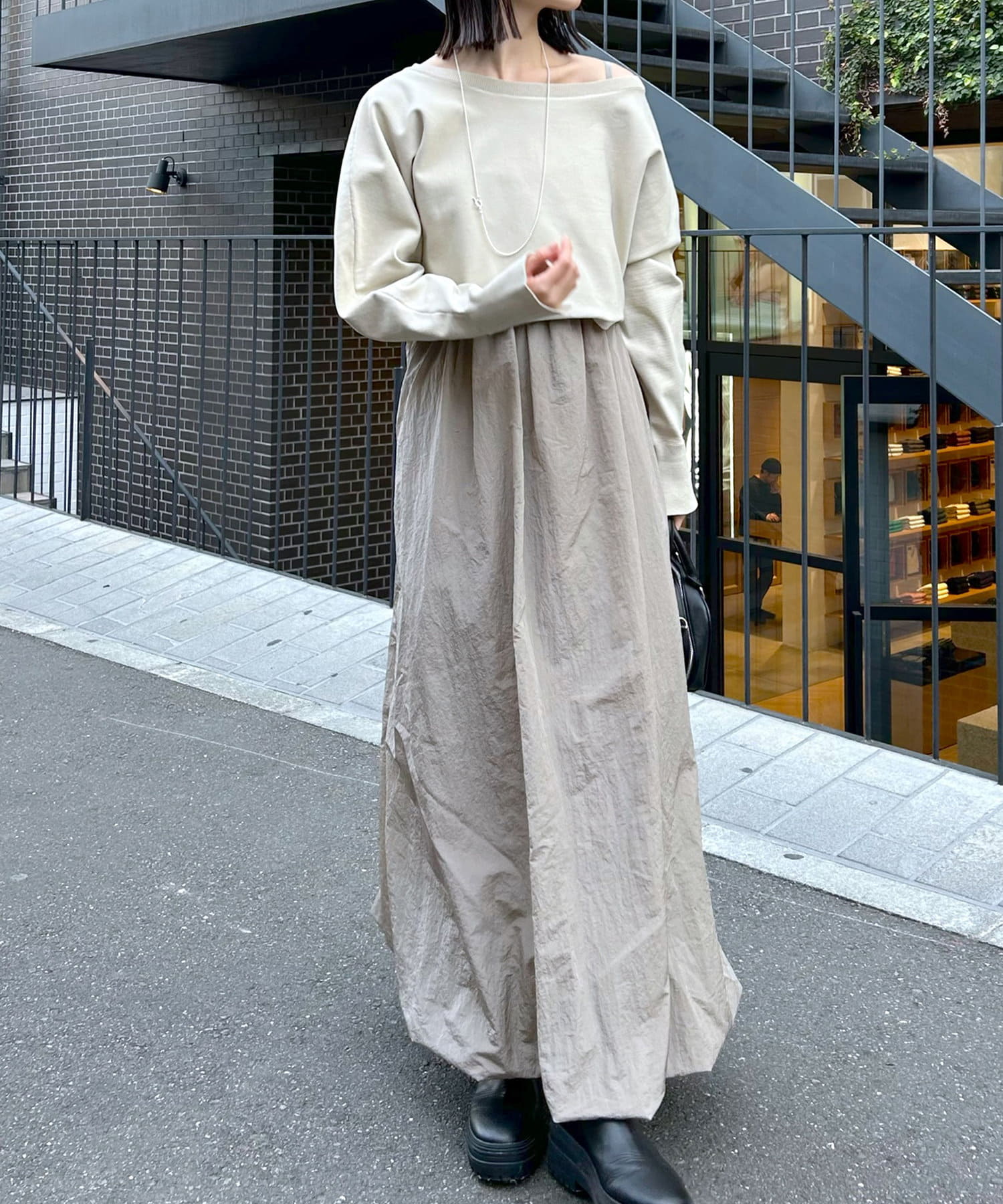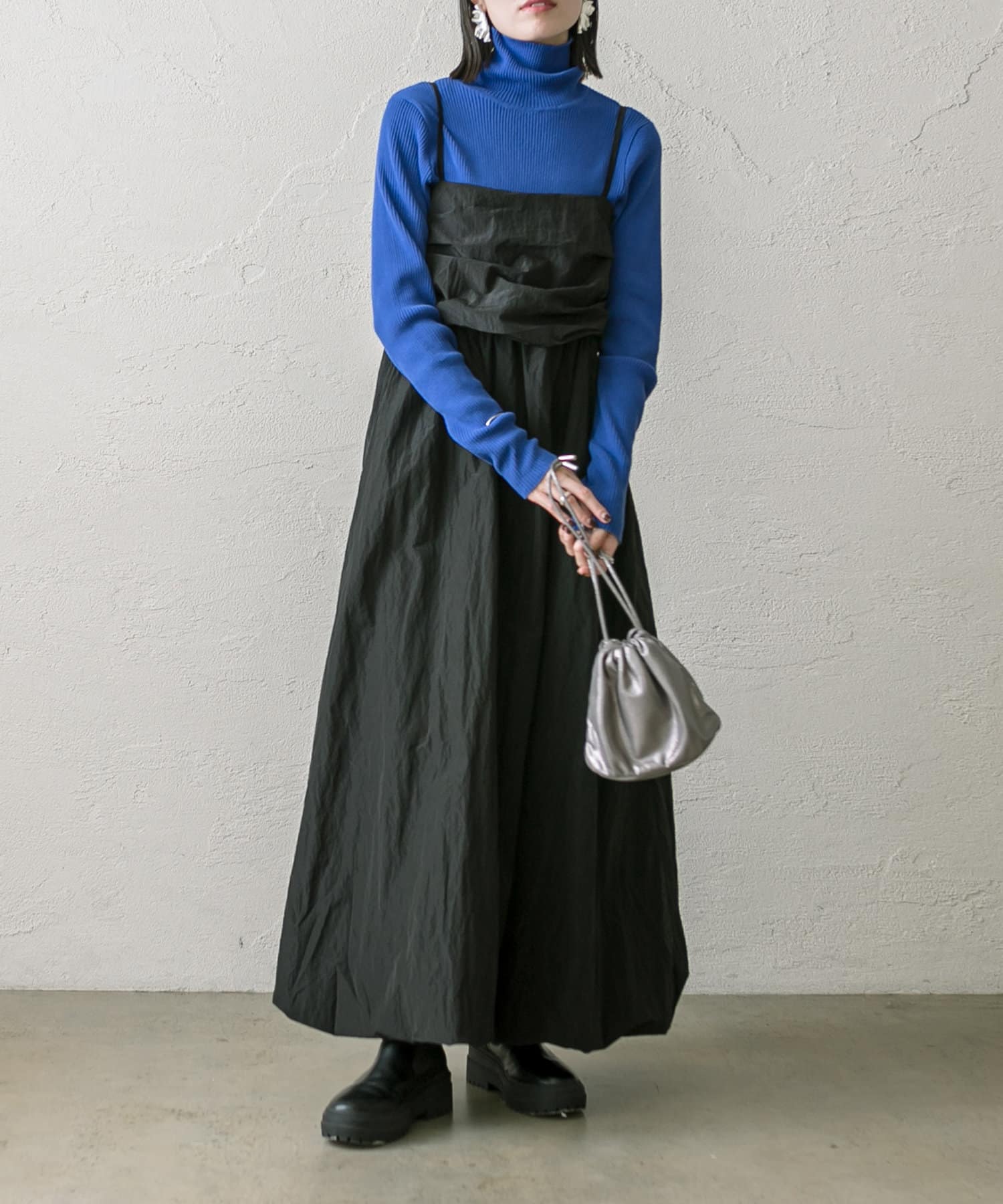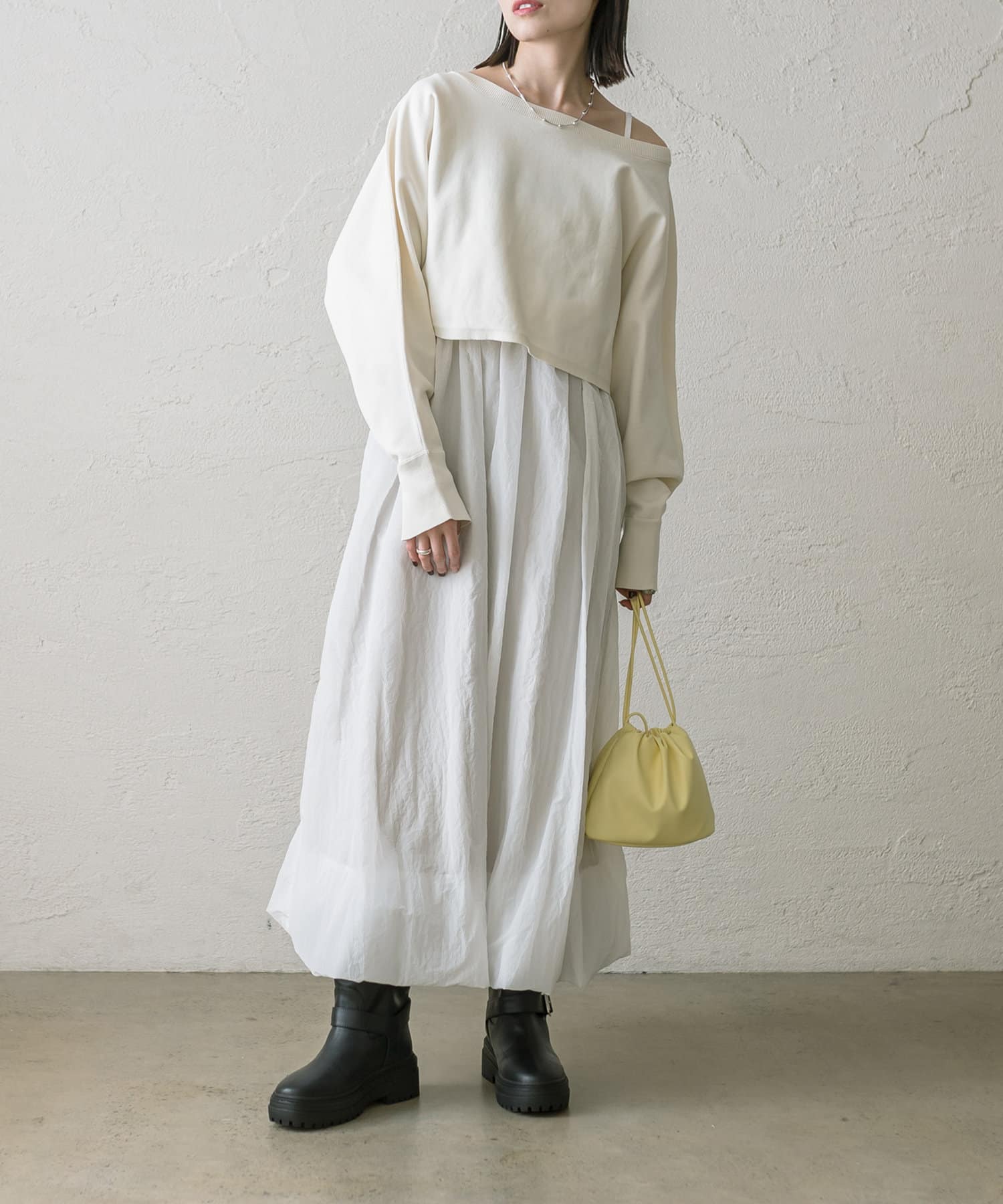 ・薄手のインナーをレイヤードさせてワンピースのデザインをより楽しんでいただくのもおすすめ。