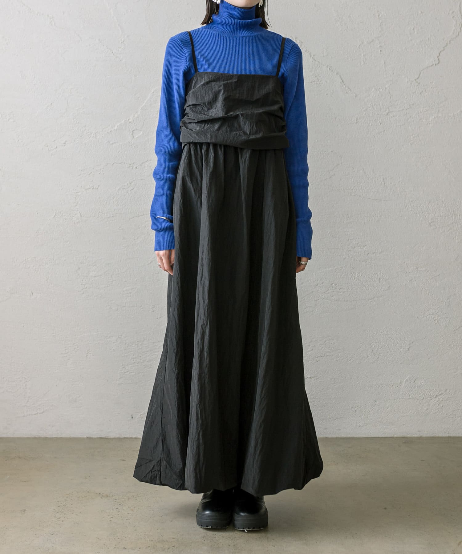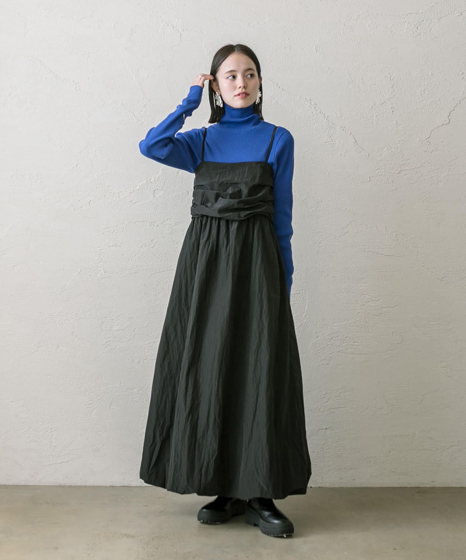 ・胸元のタックデザインとバルーンシルエットで一枚で決まるワンピース。